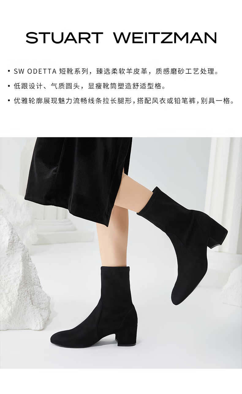 STUART WEITZMAN/SW ODETTA 秋冬经典粗方跟短靴女鞋靴子圆头瘦瘦靴奢侈