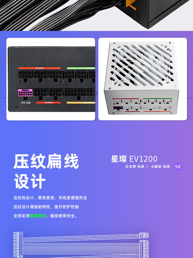 爱国者(aigo)星璨EV 1200W白金牌 黑 ATX3台式机箱电源 全A级日系电容/PPLP&80PLUS认证/一键超频/稳压5090