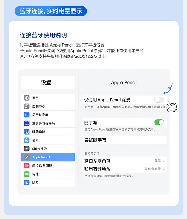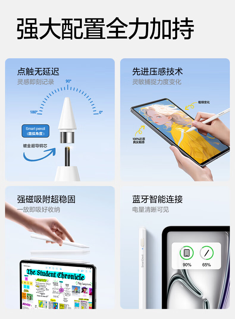 闪魔适用iPad电容笔触控笔【磁吸蓝牙高配】支持iPadAir5/Pro/Mini苹果平板触控手写笔