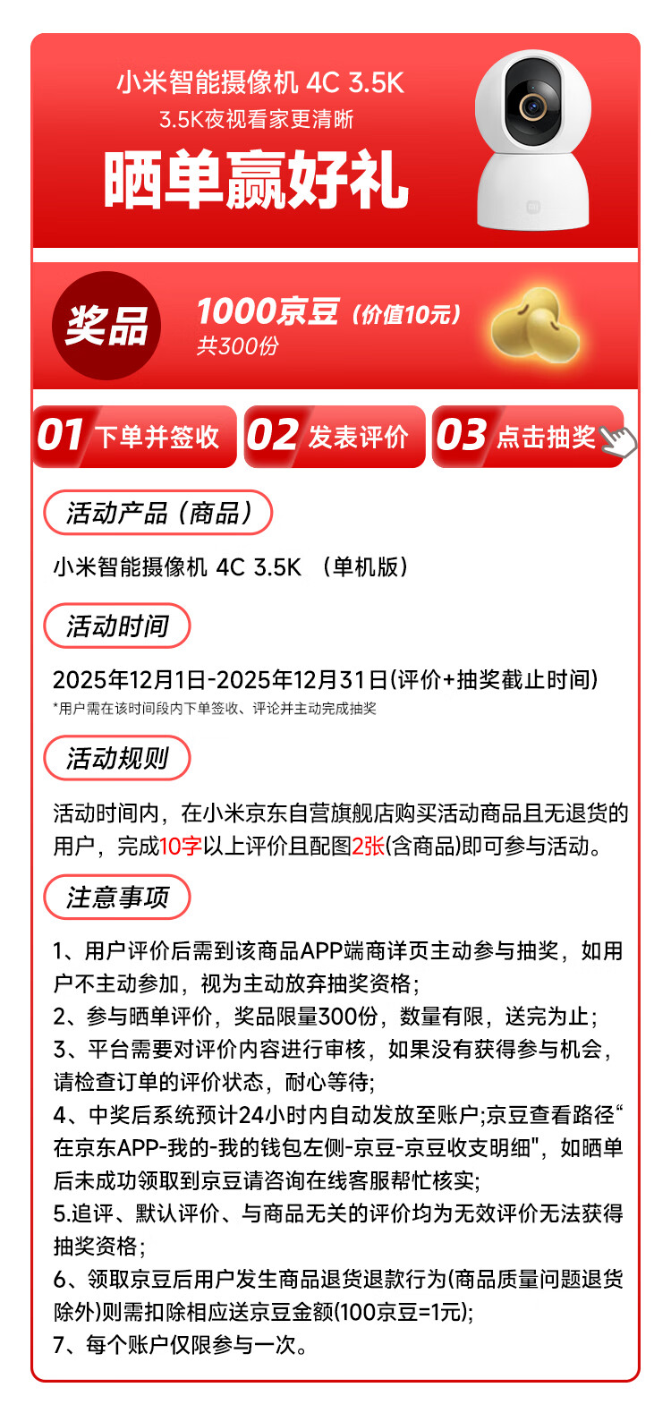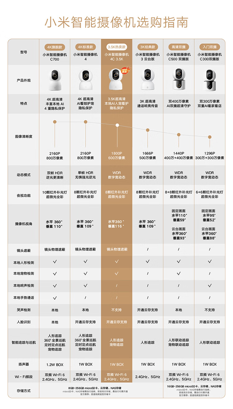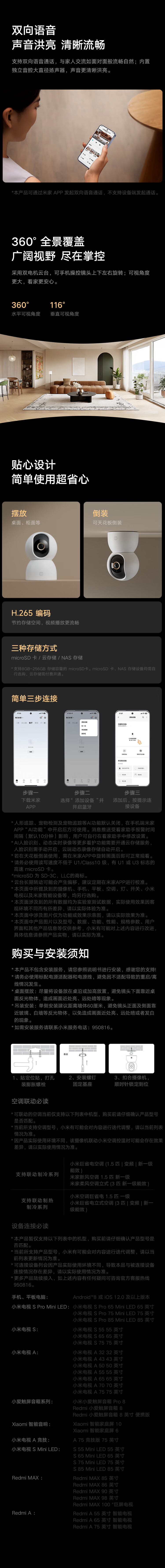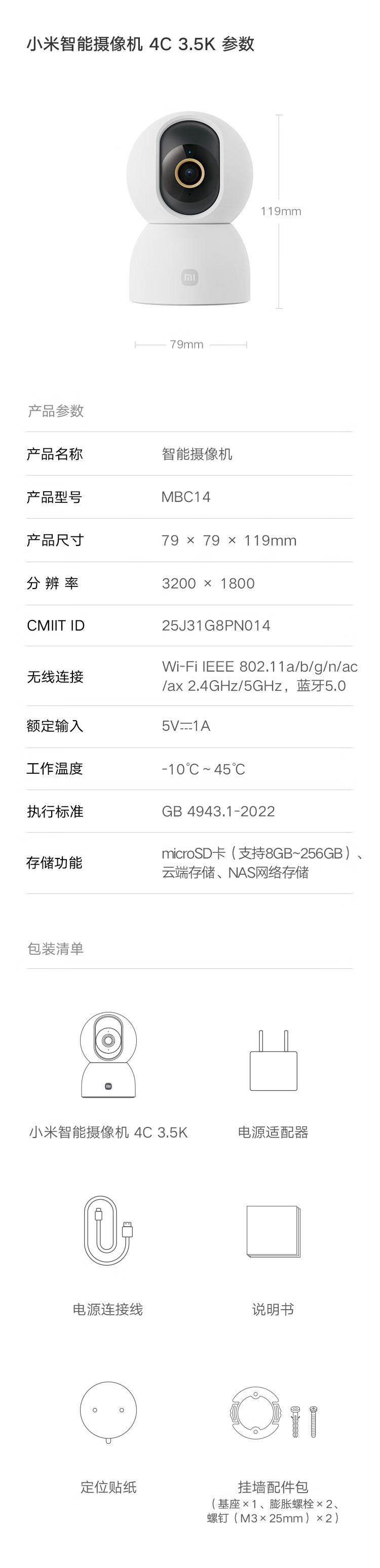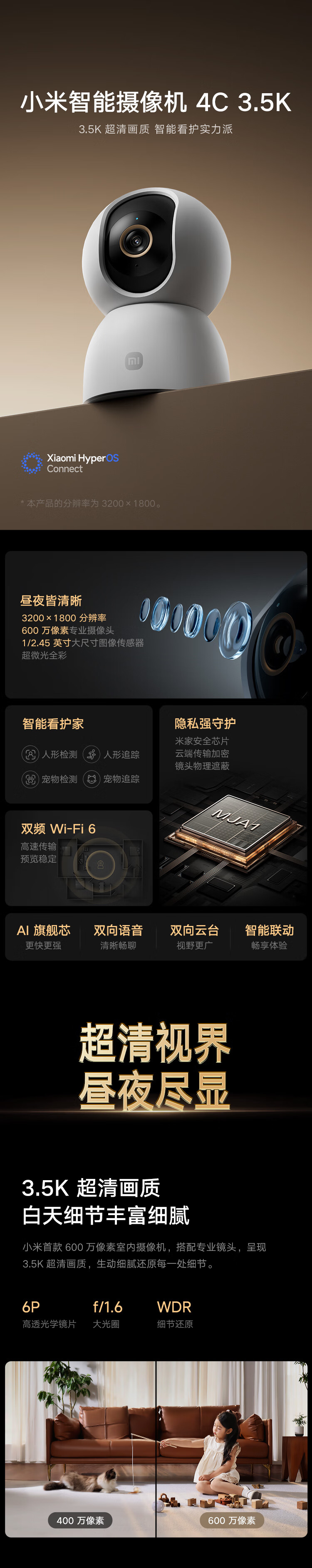 小米智能摄像机4C3.5K家用摄像头600万像素超清室内监控360度无死角带夜视手机远程婴儿宠物家庭监控器