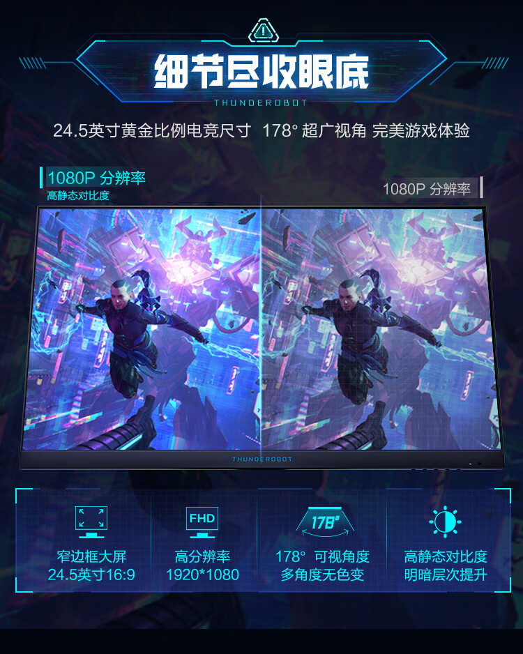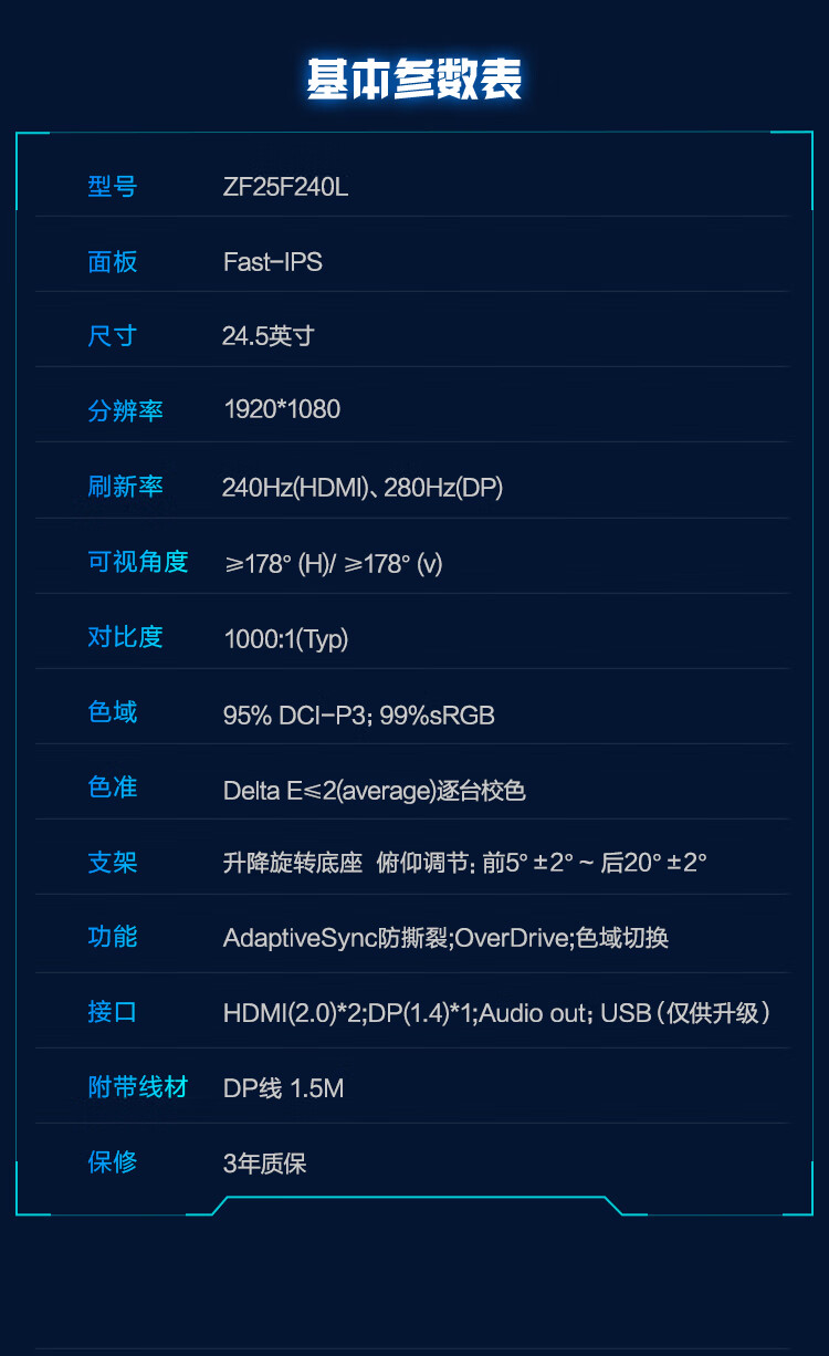 雷神黑武士24.5英寸 280Hz超频 Fast IPS硬件低蓝光 HDR400nit 升降旋转电竞电脑显示器ZF25F240L