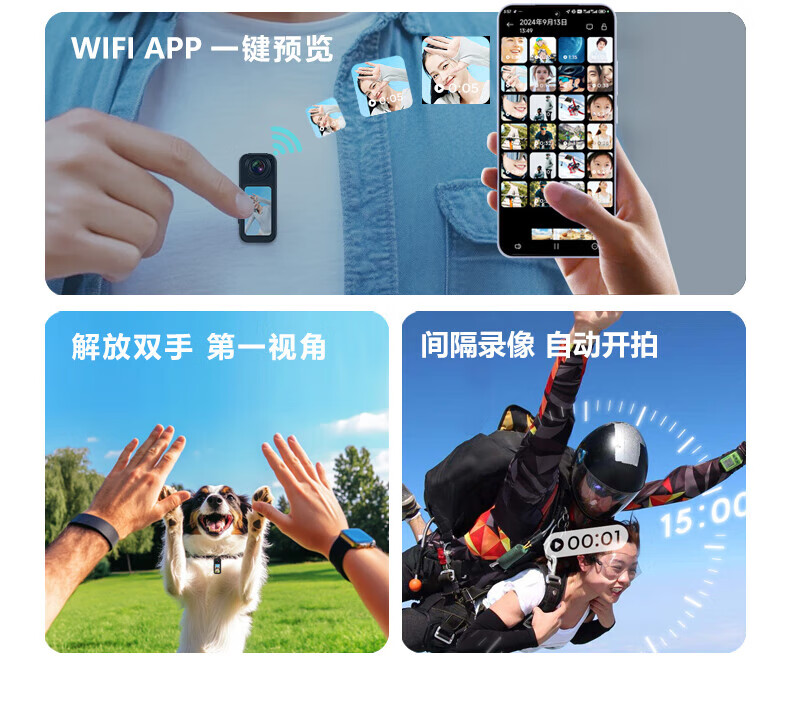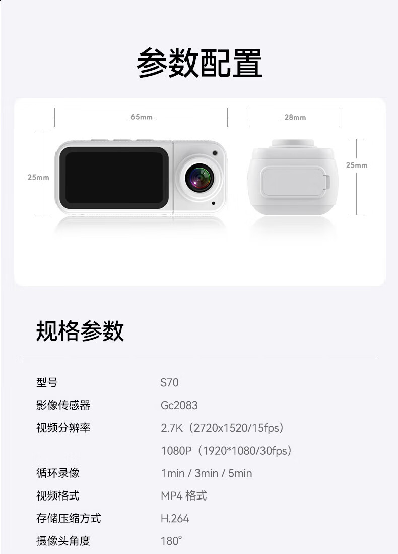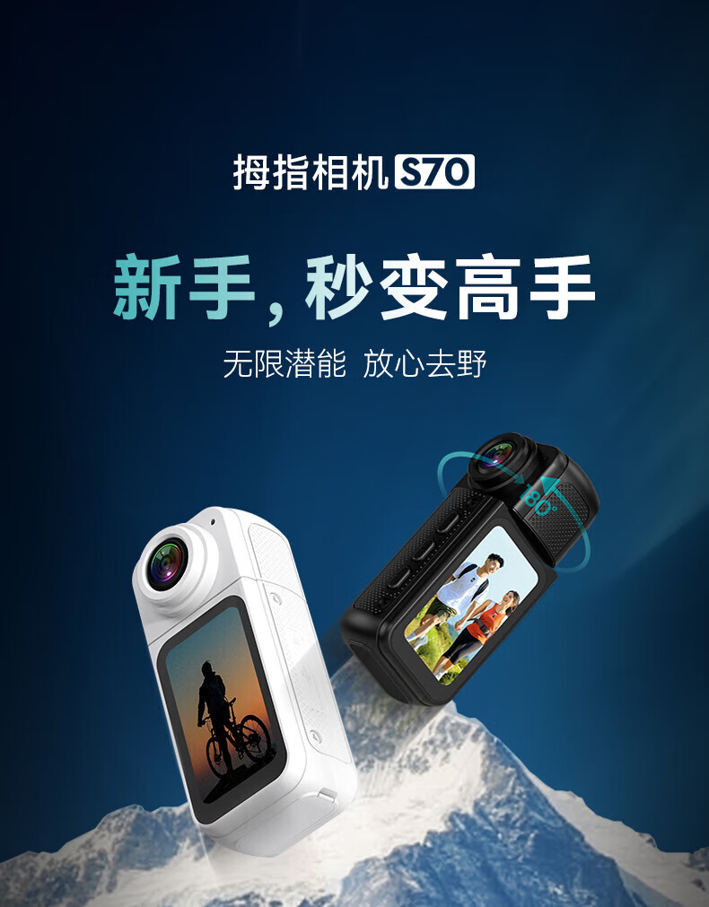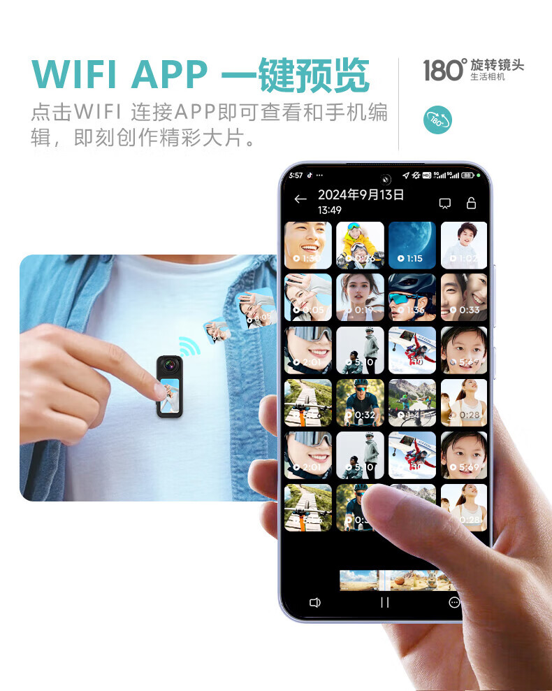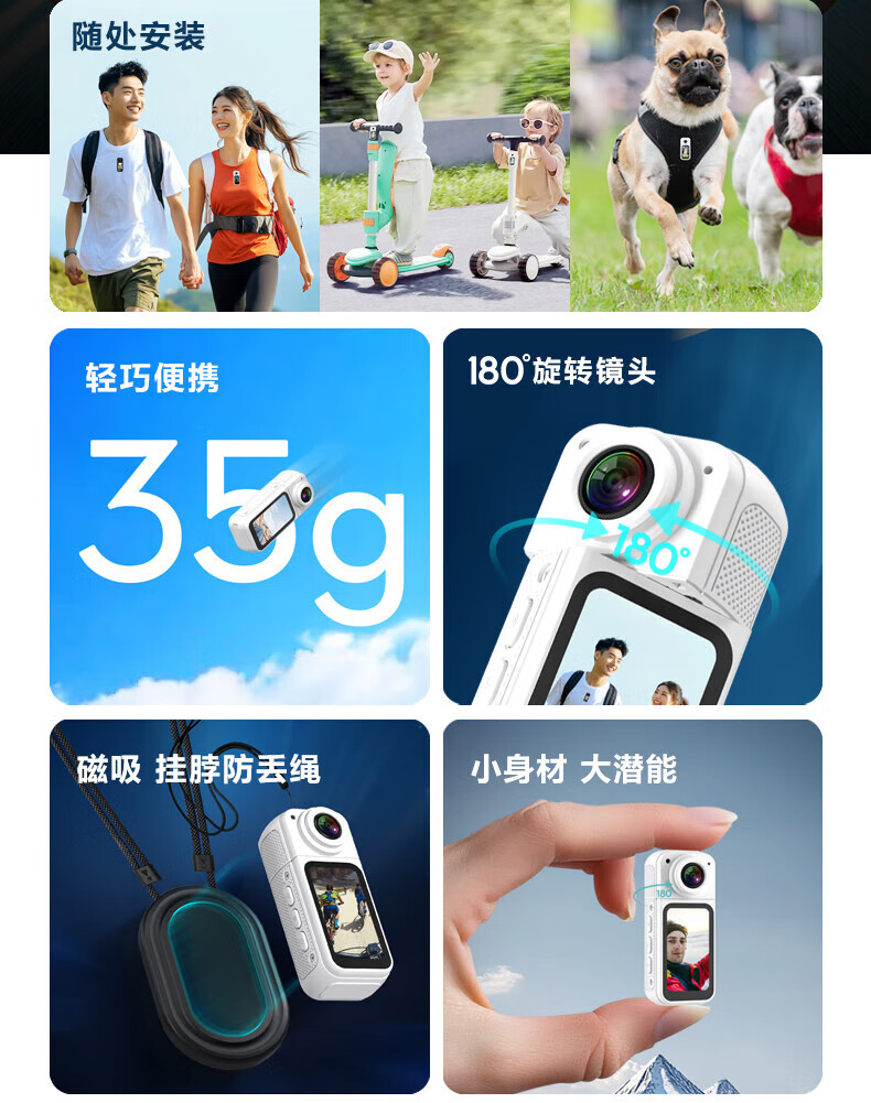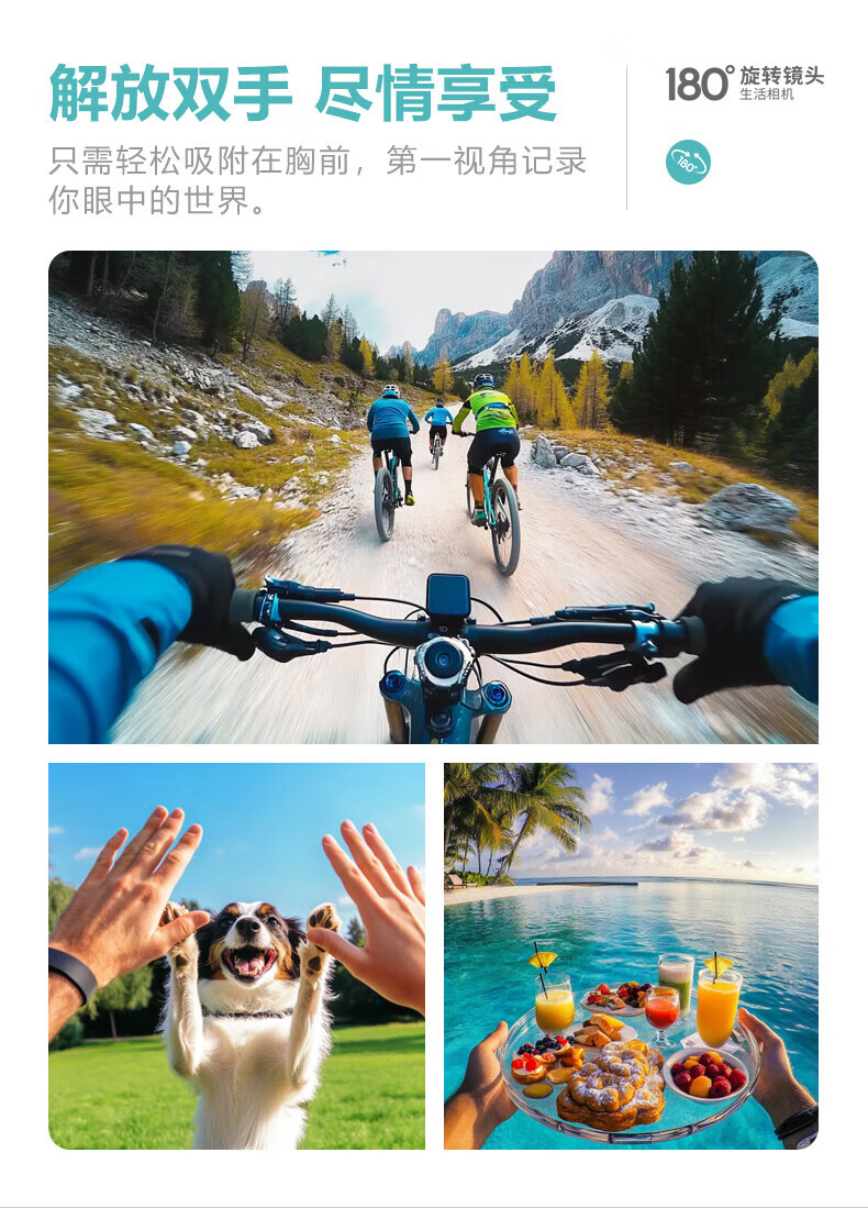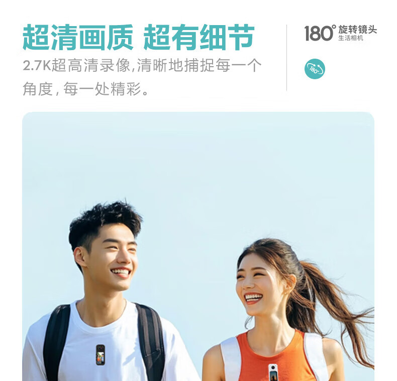 天际流【拇指运动相机榜NO.1】胸口摄像机2.7K高清数码相机vlog记录仪小型户外便携摄影机摄影录像神器 2.7K黑色高配+wifi传输+180°旋转 128G内存卡版