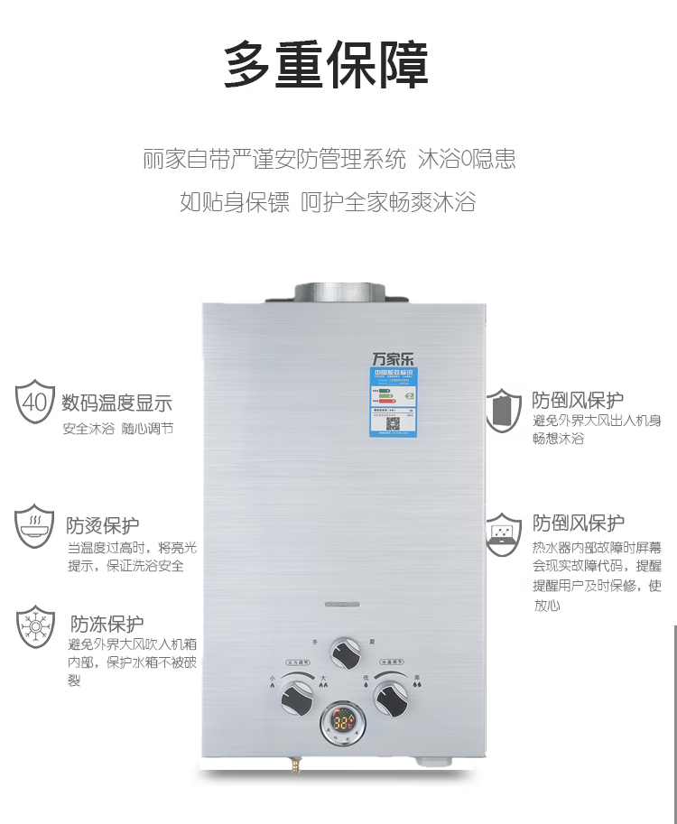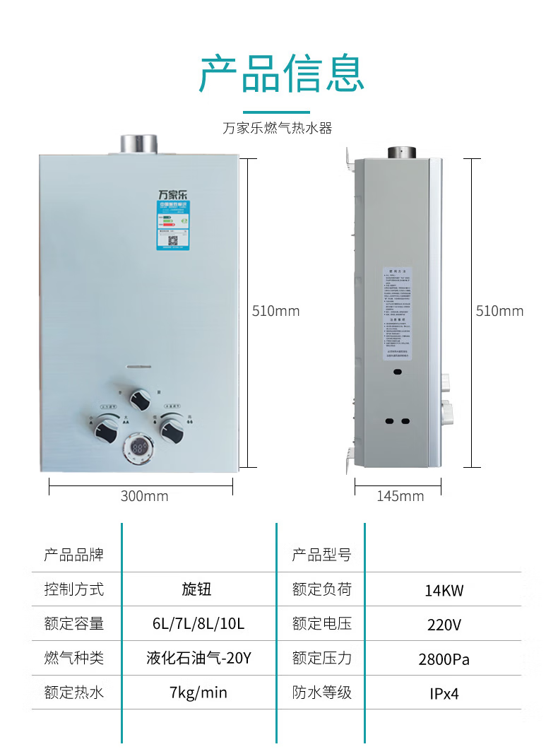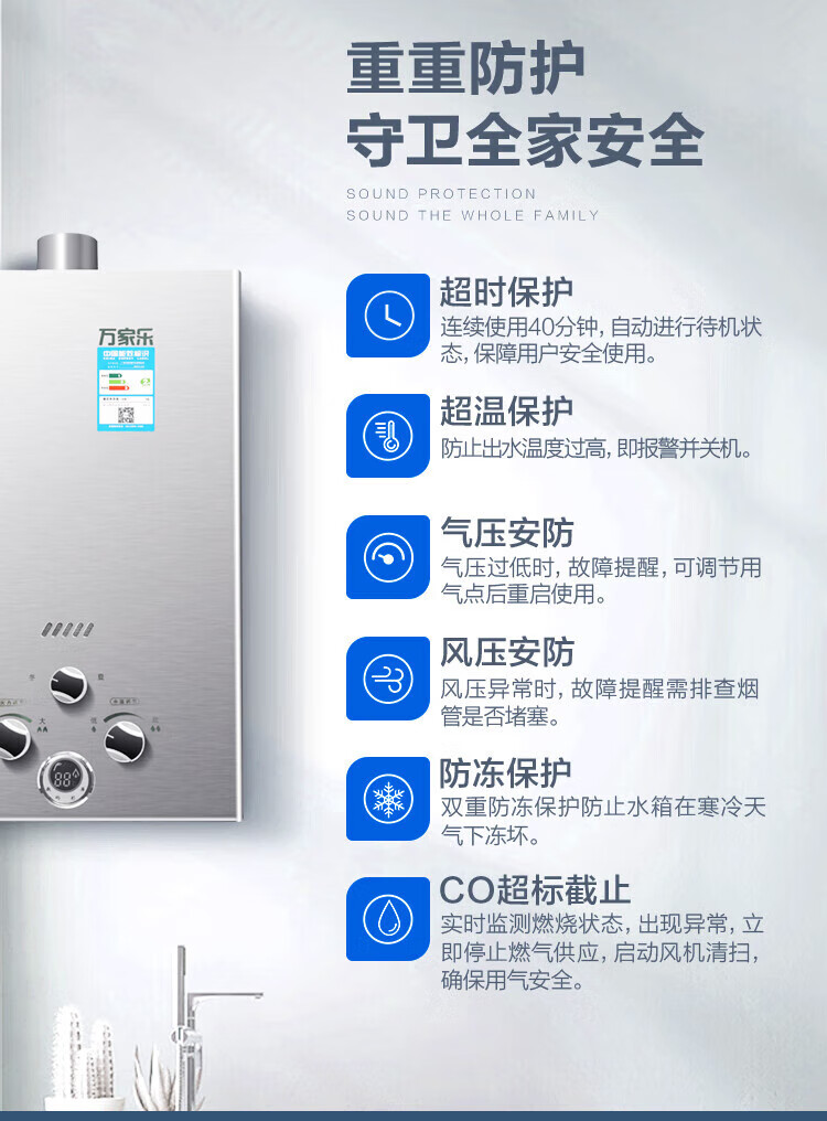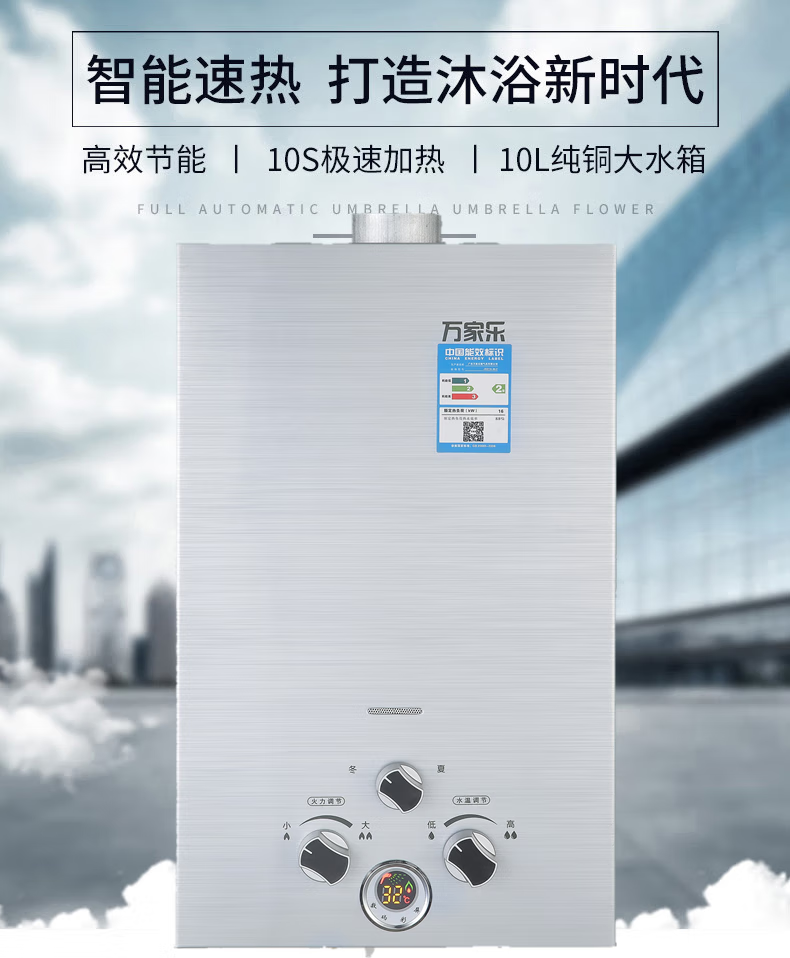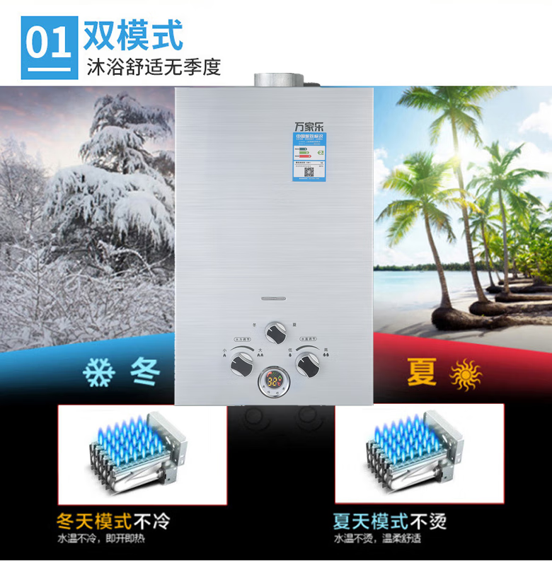 万家乐燃气热水器家用8L10升液化气煤气罐低水压即热式电池出租屋强排式 8L电池款+铜水箱/液化石油气