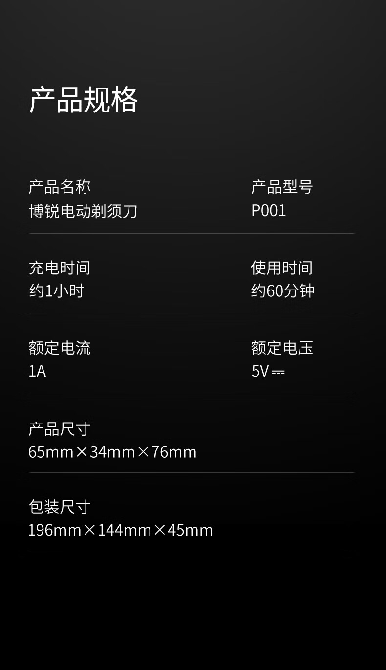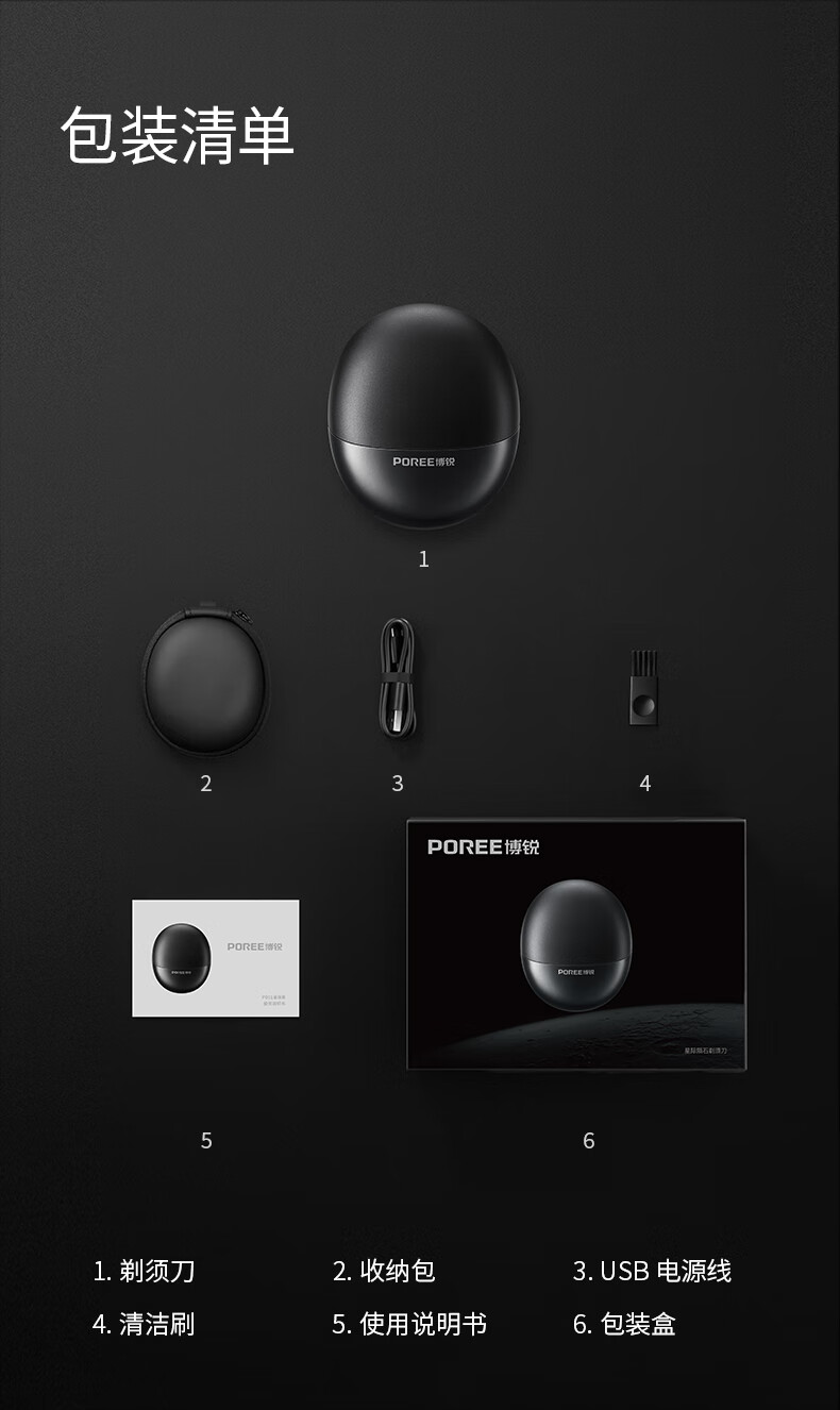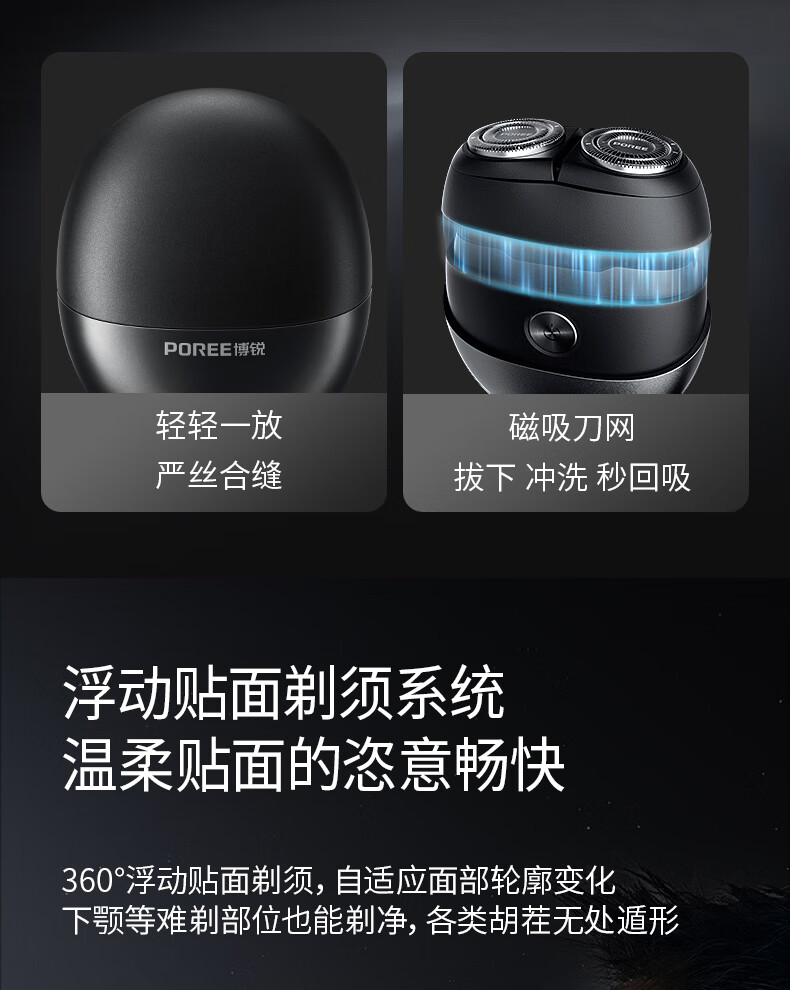 博锐(POREE)剃须刀电动全身水洗旋转式刮胡刀智能快充即插即用便携式须刨剃胡刀生日节日礼物送男友送父亲 【心动告白礼袋】智能便携P001