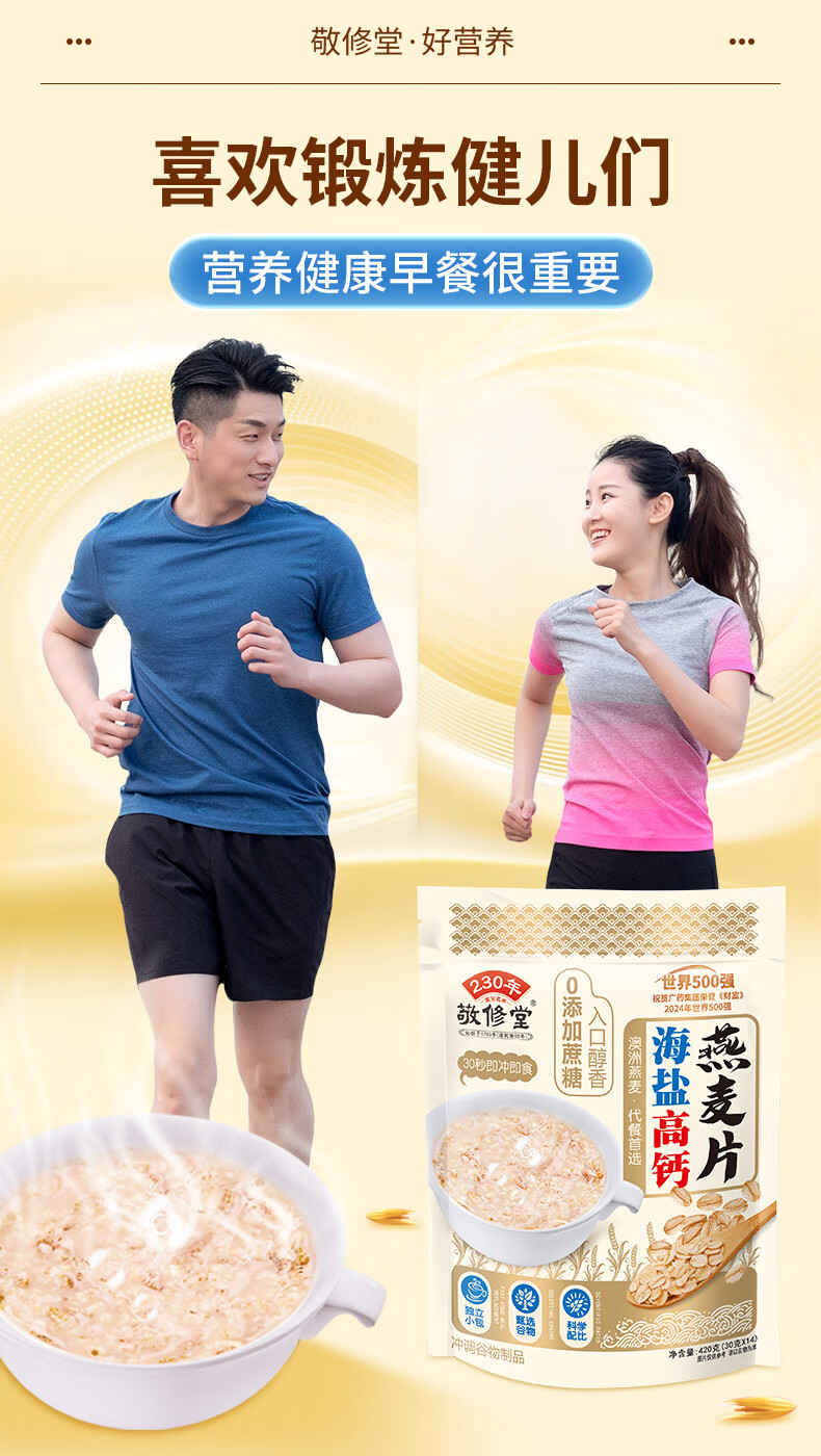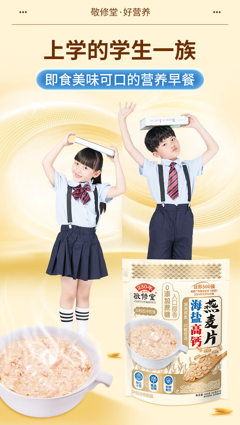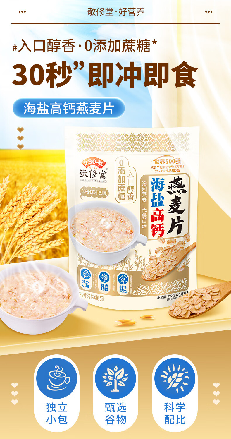 敬修堂海盐高钙燕麦片420g 营养早餐即食冲饮免煮冲泡0添加蔗糖