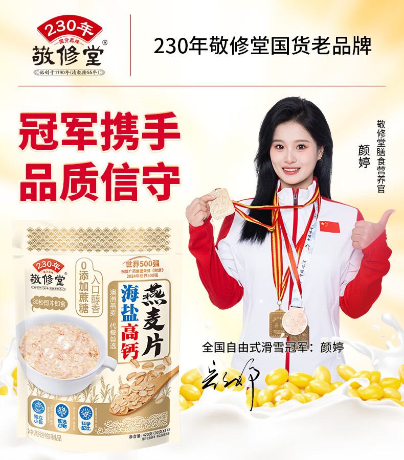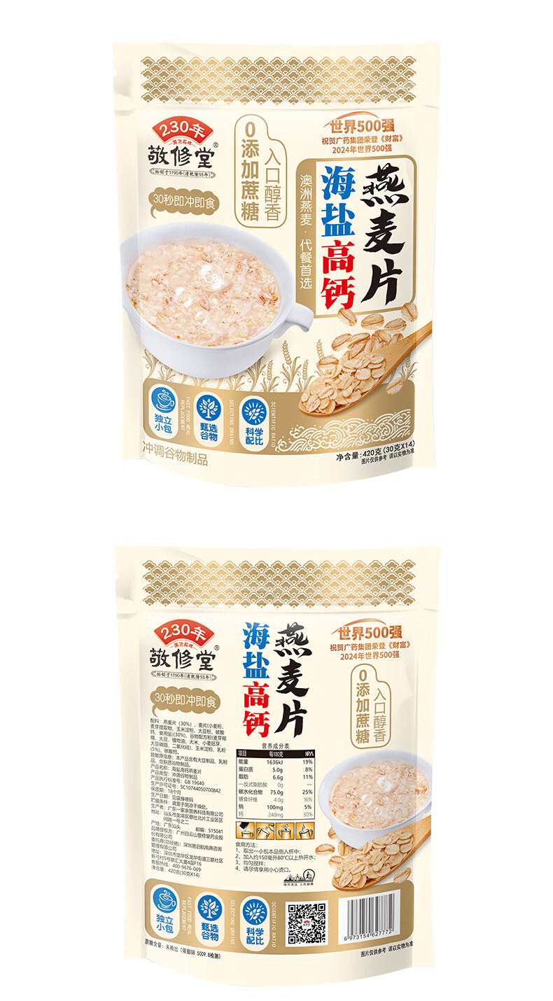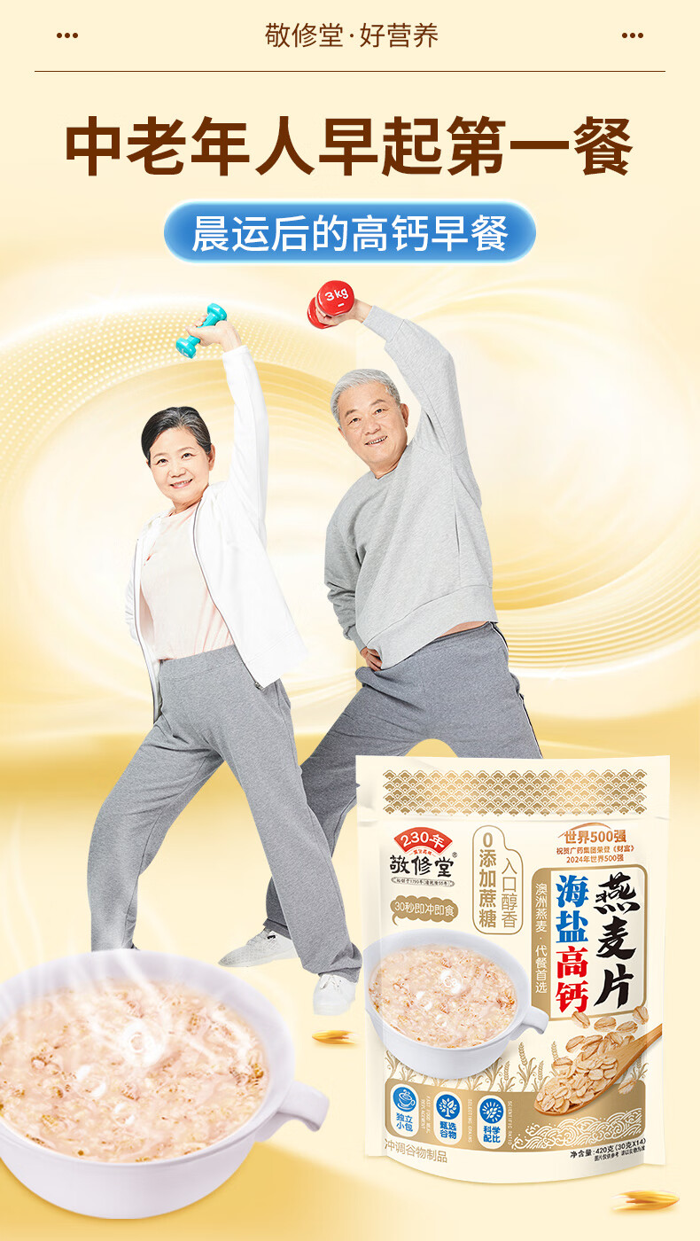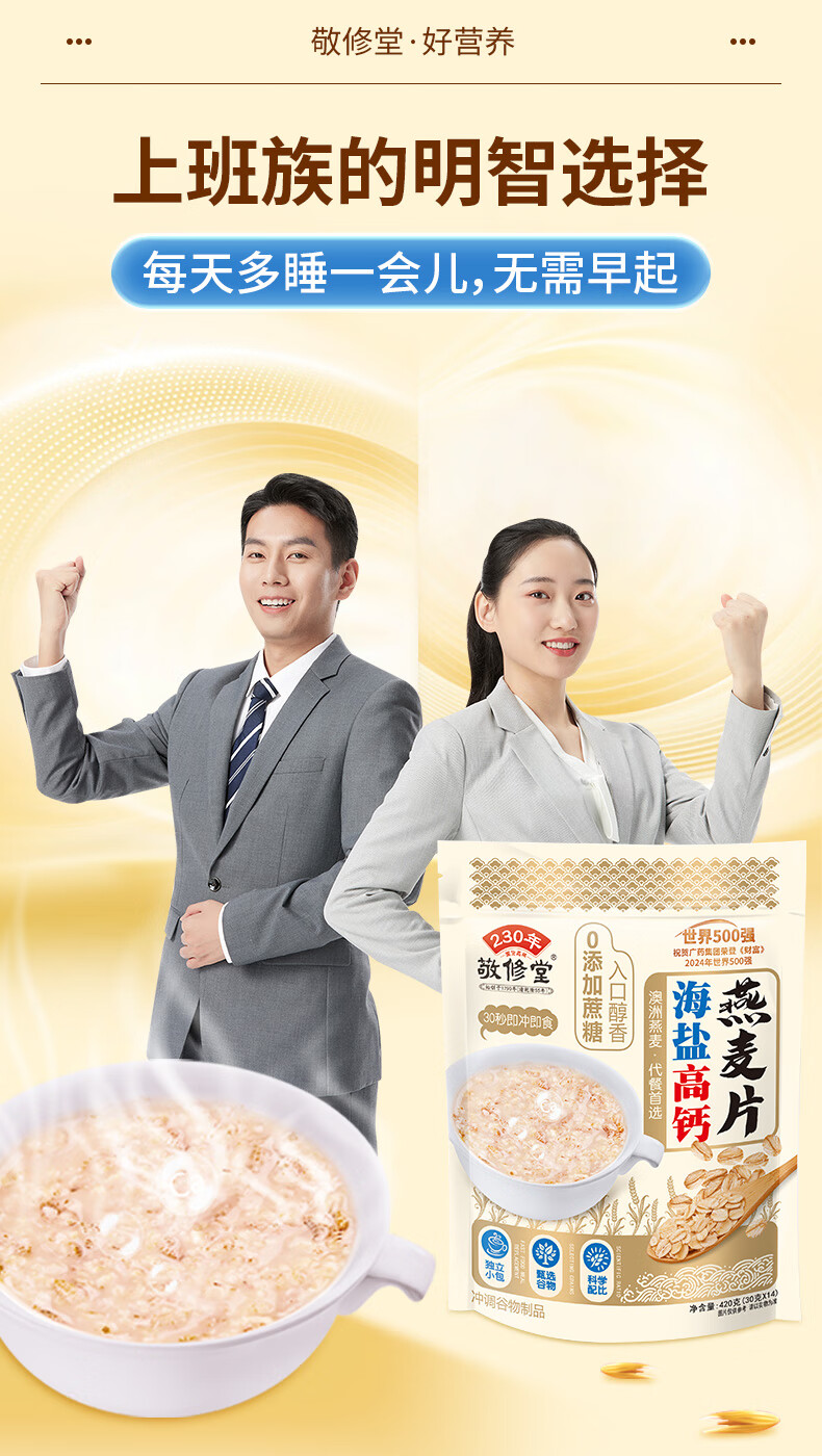 敬修堂海盐高钙燕麦片420g 营养早餐即食冲饮免煮冲泡0添加蔗糖