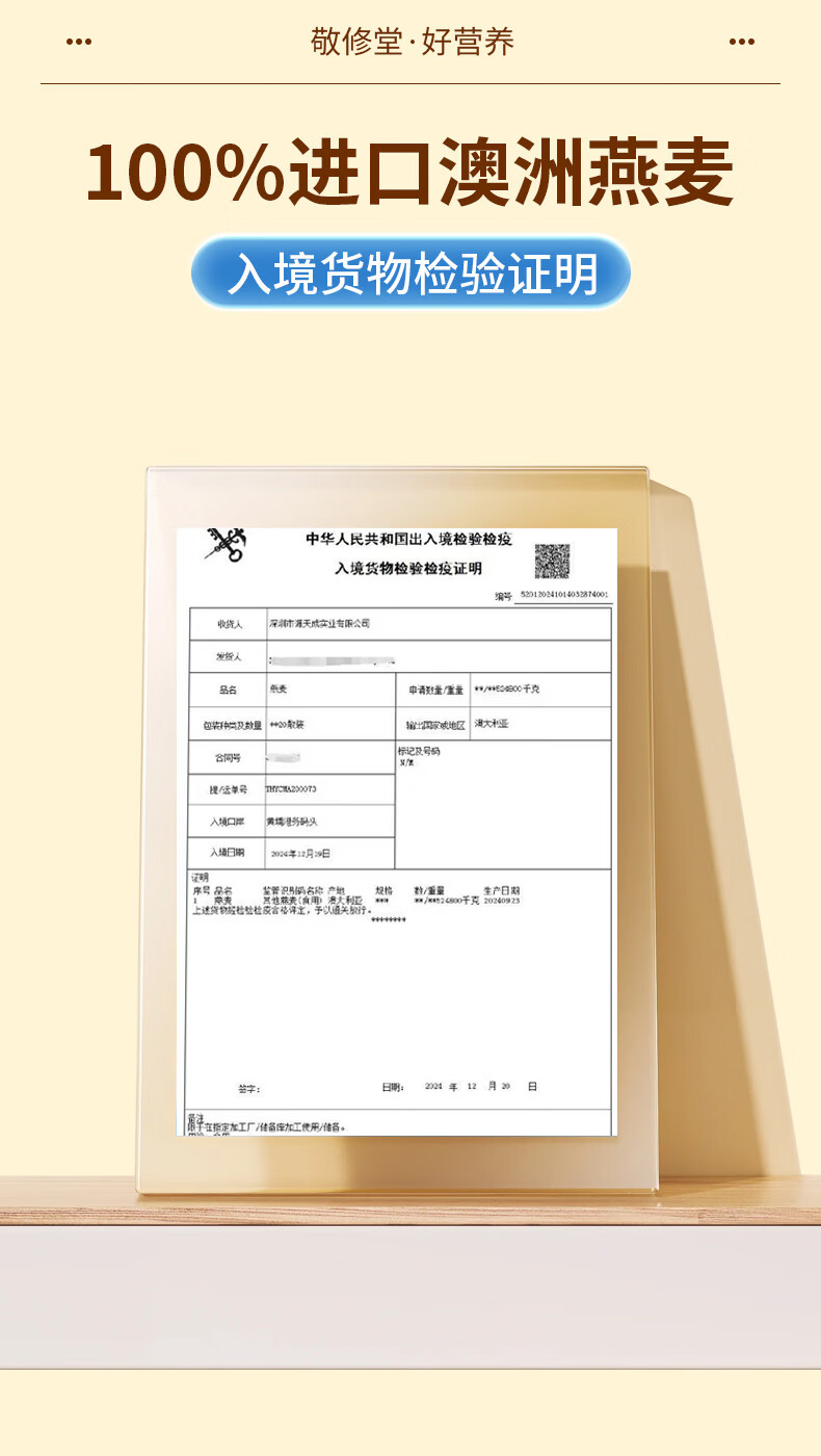 敬修堂红参阿胶燕麦片420g 营养代餐即食免煮冲泡独立小包 滋补好气色