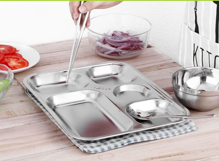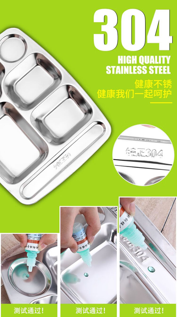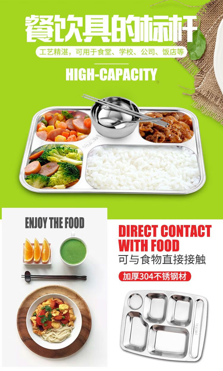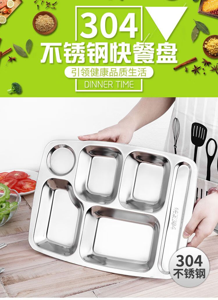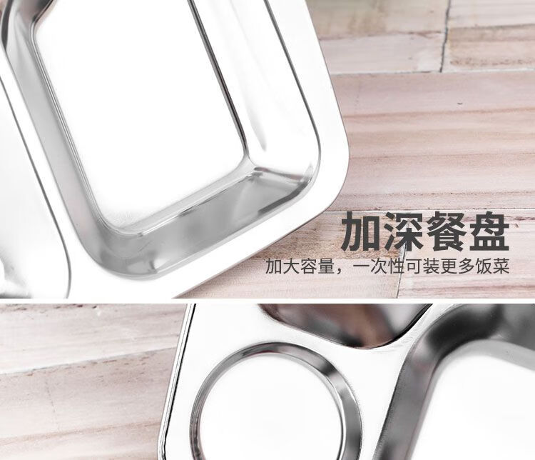 DEATKN【加厚不锈钢食堂快餐盘】分格餐盘儿童幼儿园学生成人快餐盘餐具 小三格加厚120g