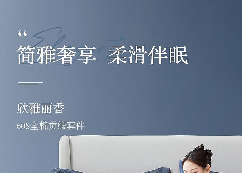 百丽丝出品四件套60S贡缎纯棉床上四件套床单被套纯棉套件 60S全棉贡缎套件(宁静蓝/抗菌) 床单款 (被套200*230cm)