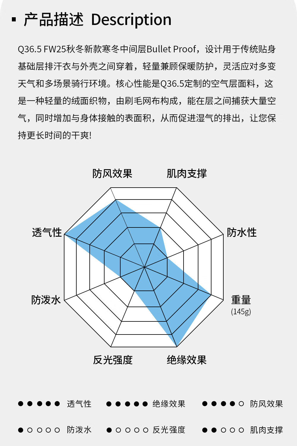 Q 36.5骑行打底衫冬季中间层内搭透气保暖层Bullet Proof 无袖 XL