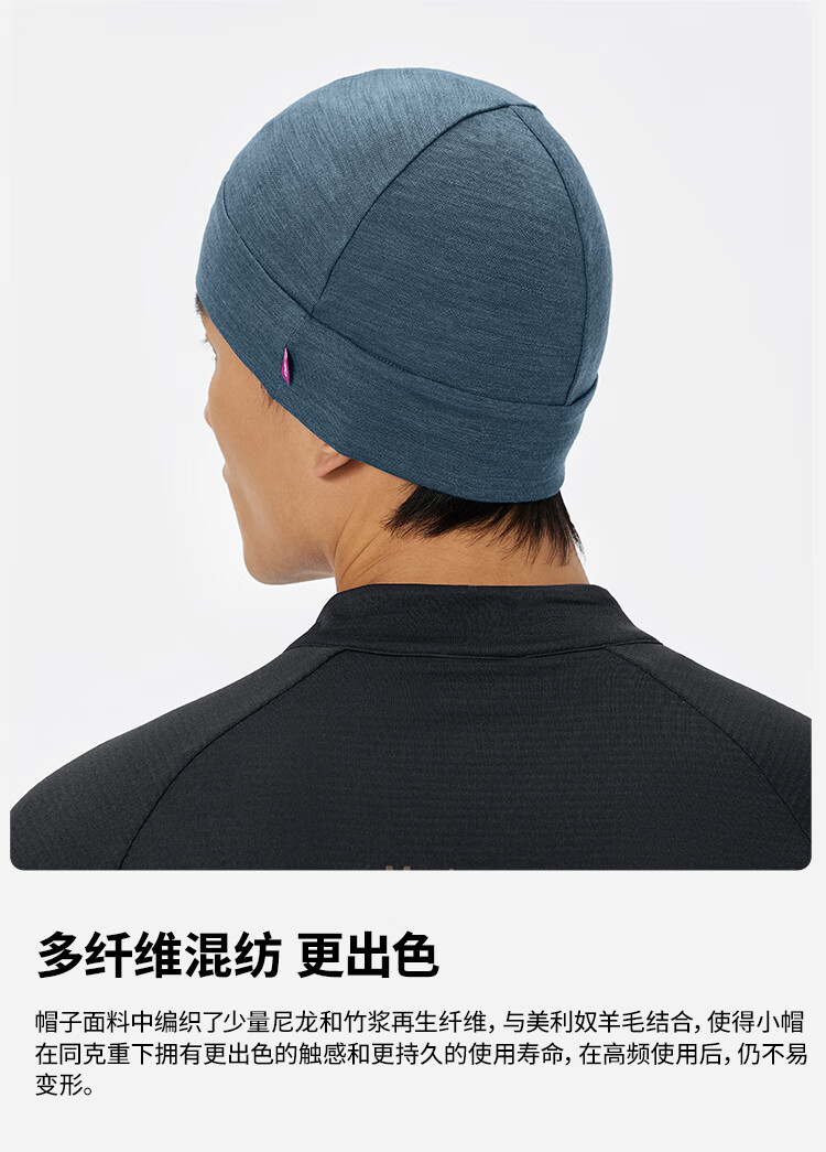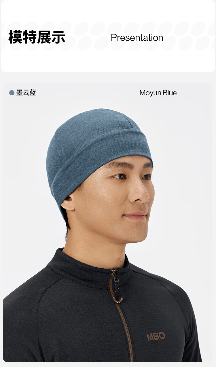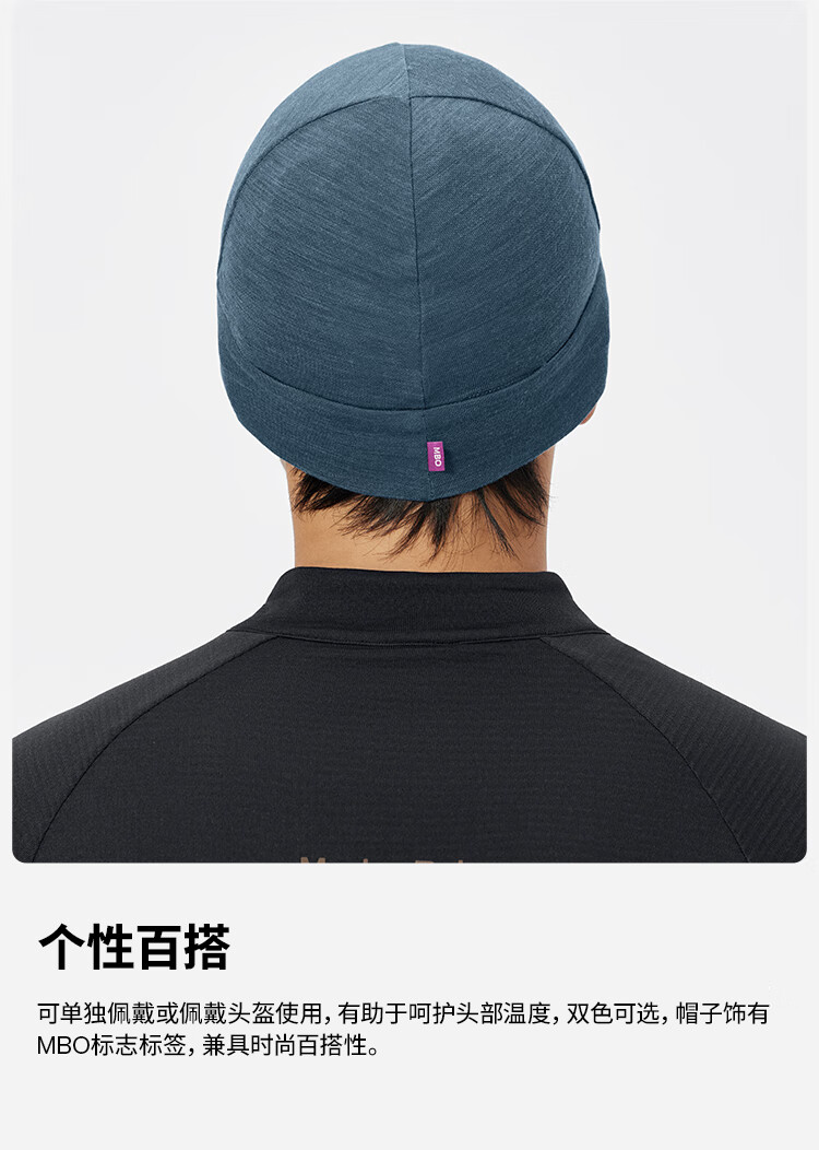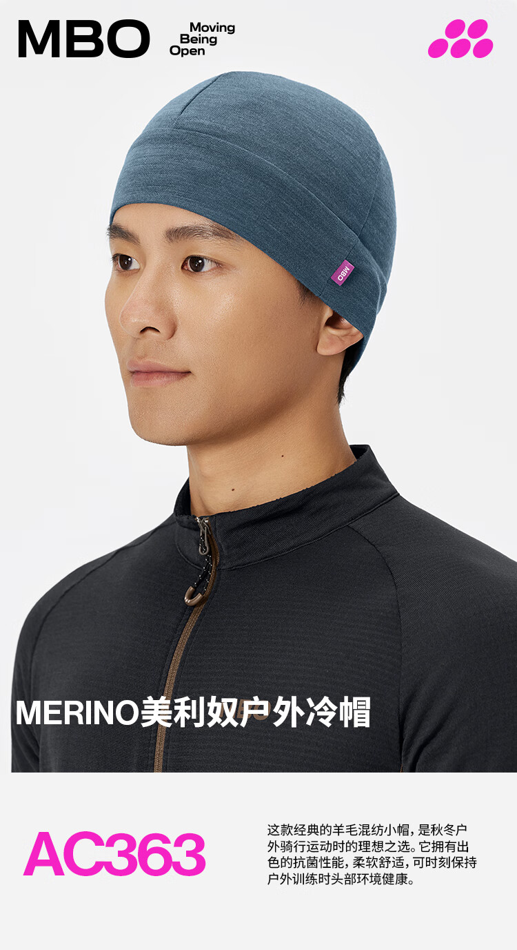 MBO Merino 秋冬男女通用小帽 美利奴羊毛骑行冷帽 AC363 墨云蓝 均码
