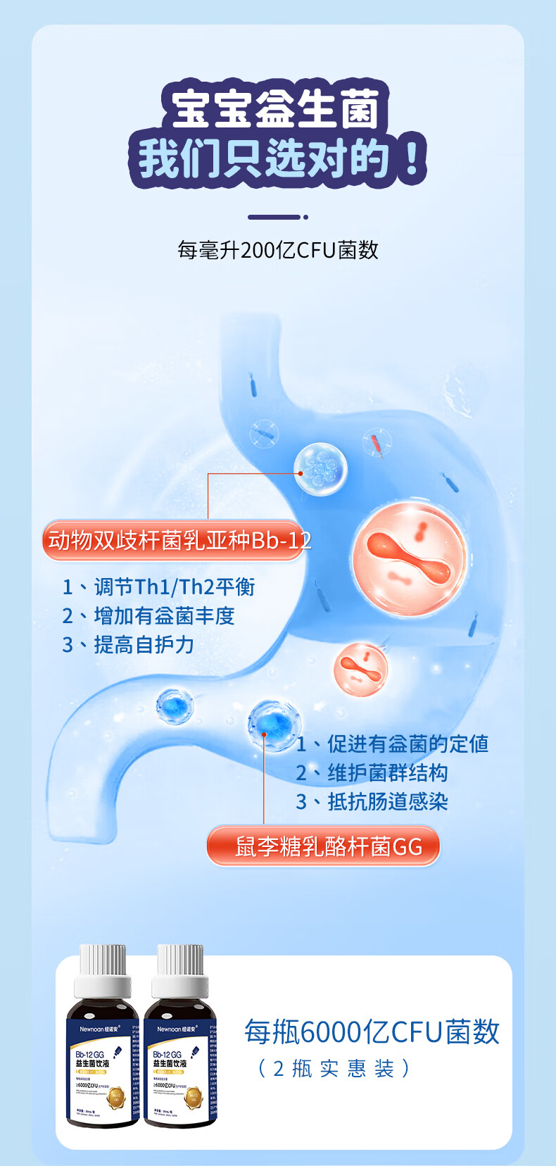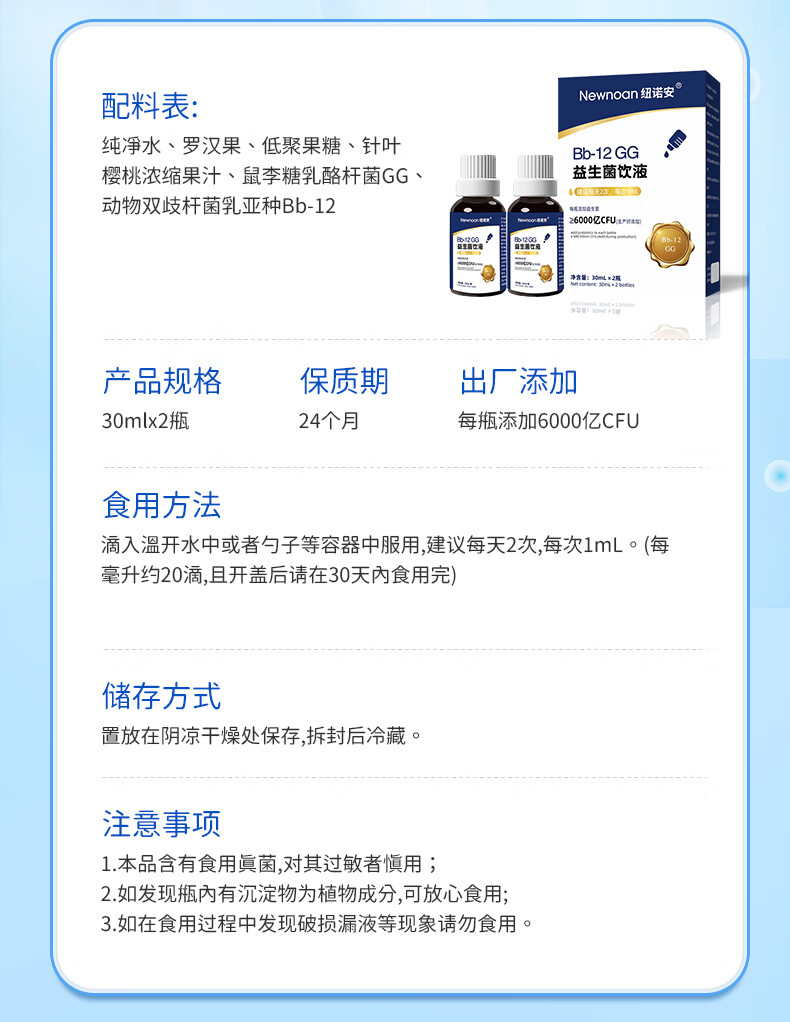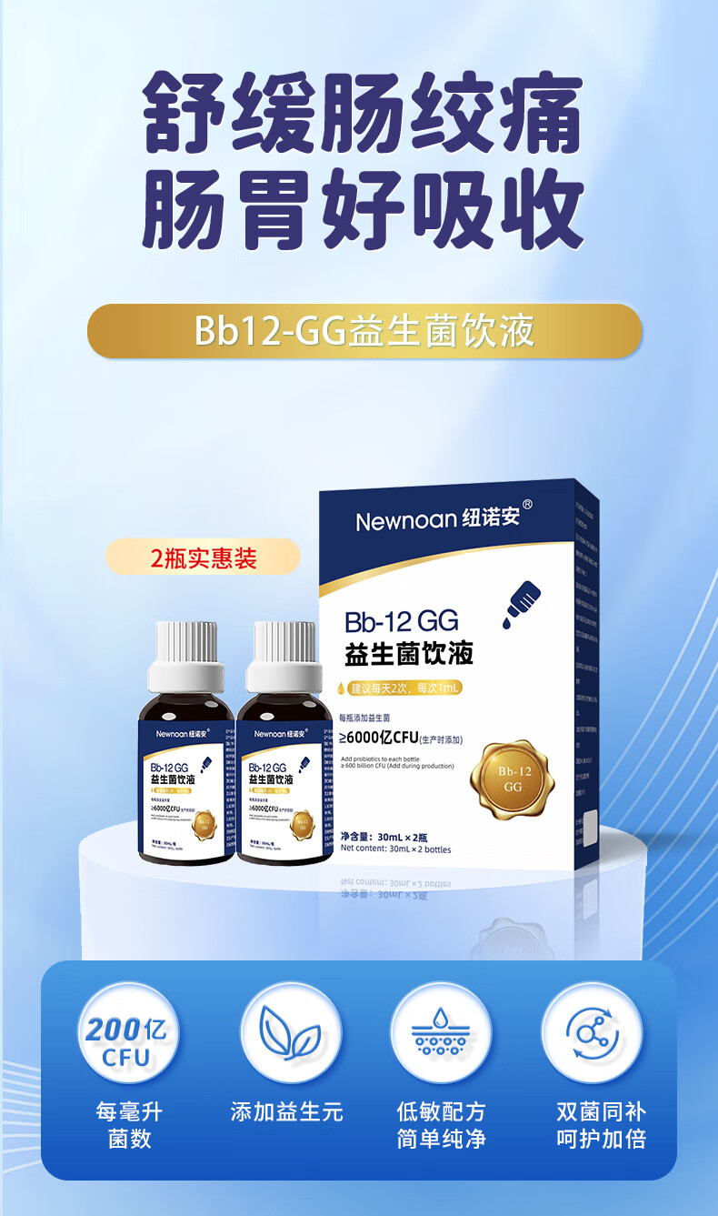 纽诺安 Bb12+GG益生菌滴剂鼠李糖乳杆菌婴幼儿可用儿童肠胃益生菌30mLx2