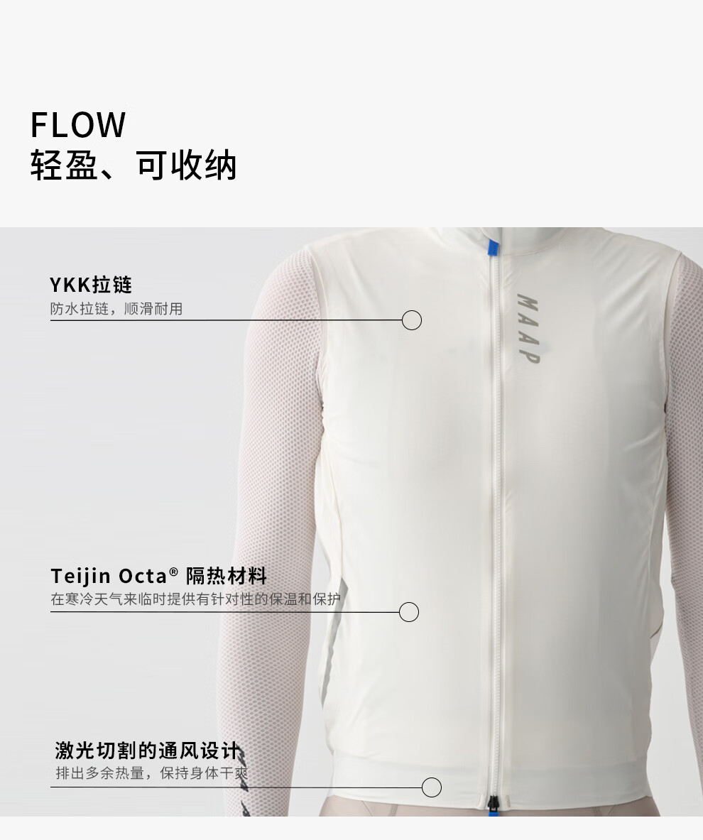 MAAP【新品】 男士 Flow Vest 防风骑行马甲 纯净白 纯净白 M