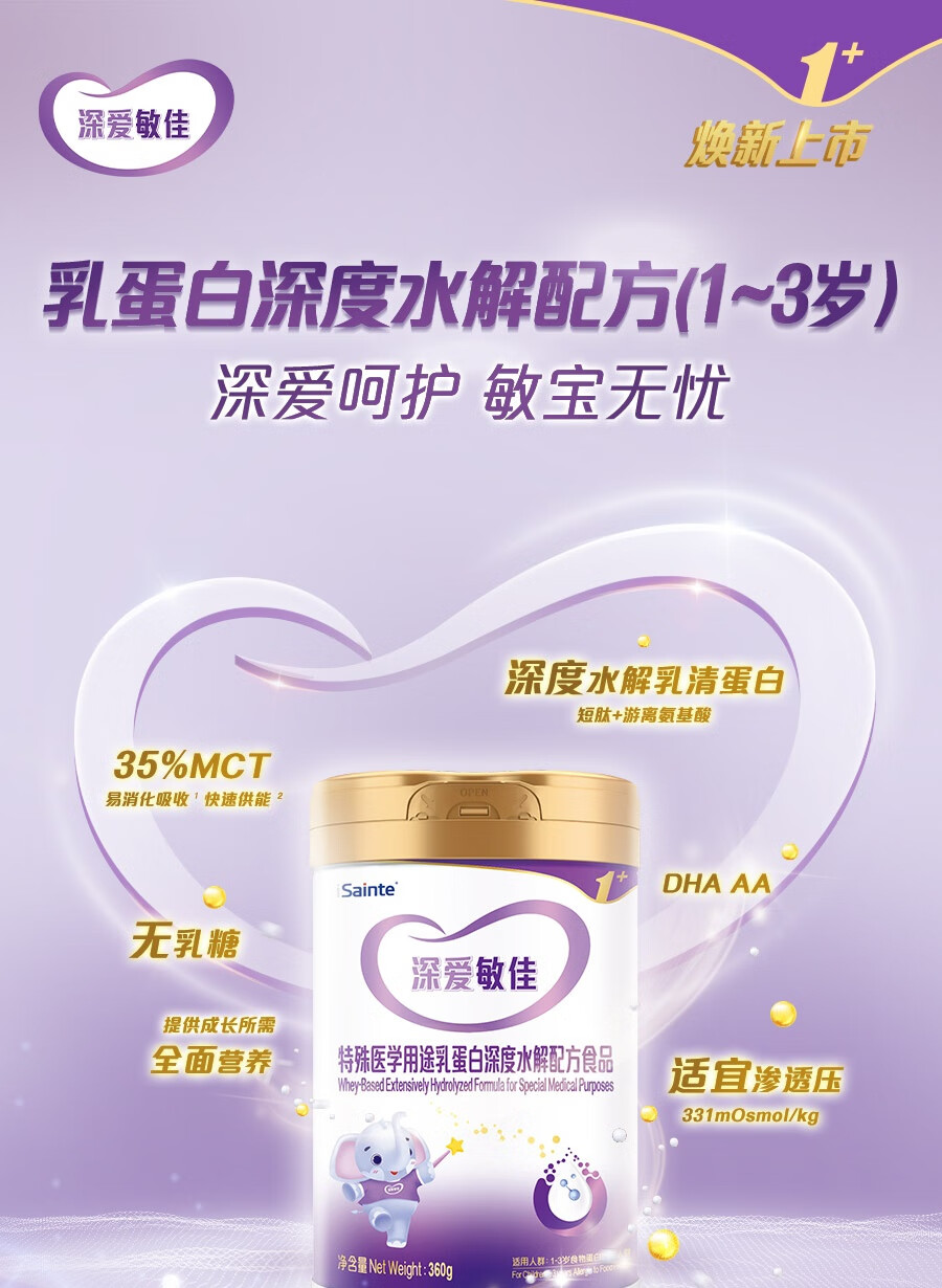 iSainte圣桐特医深爱敏佳360g 深度水解奶粉婴幼儿3段12-36月过敏宝宝