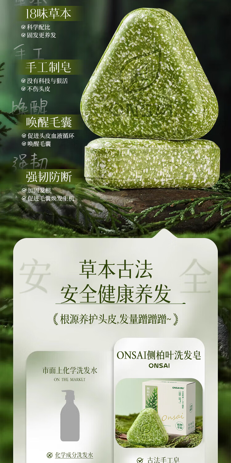 拥彩侧柏叶洗头洗发皂新疆乌斯玛何首乌固发防发控油蓬松香皂洗发水