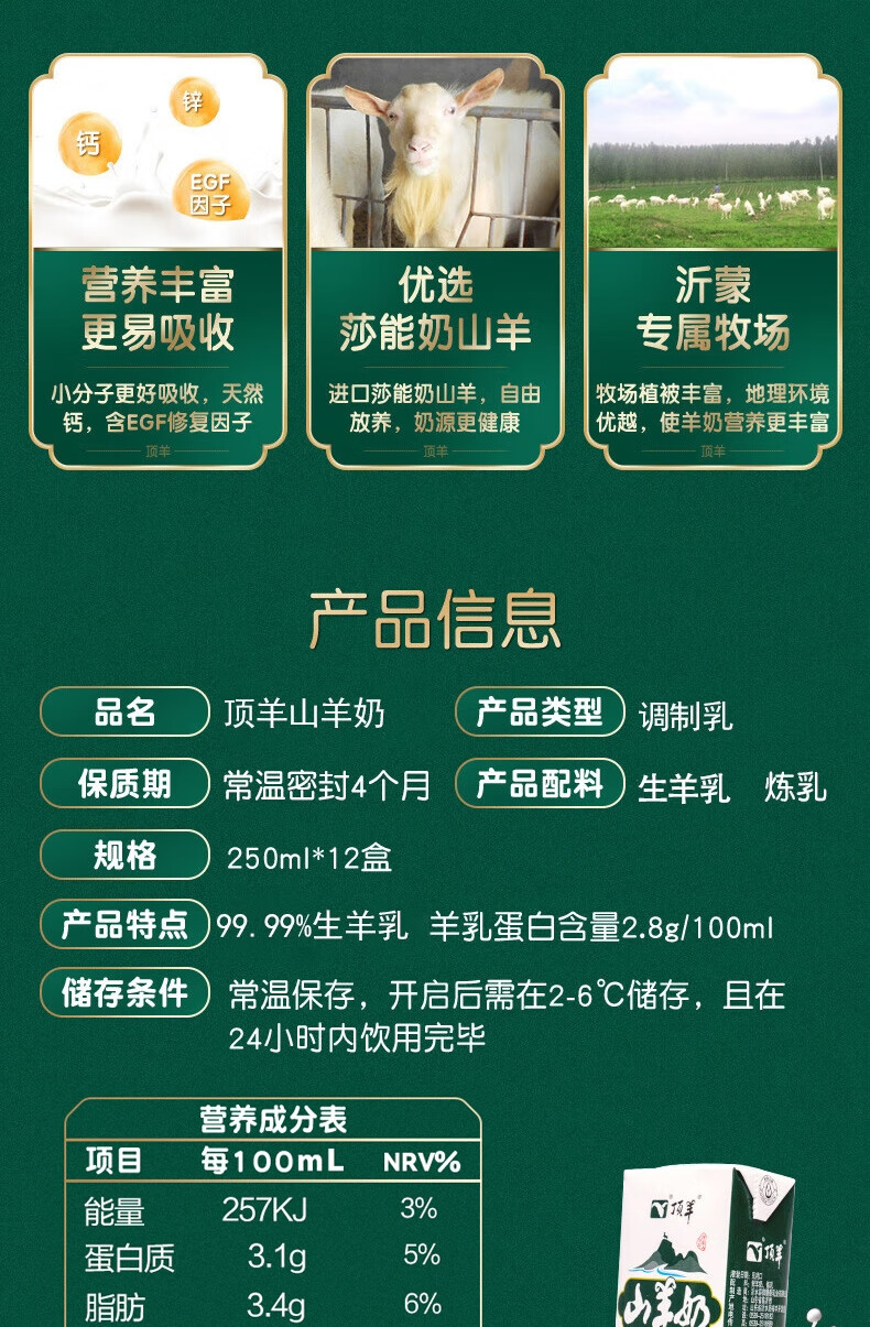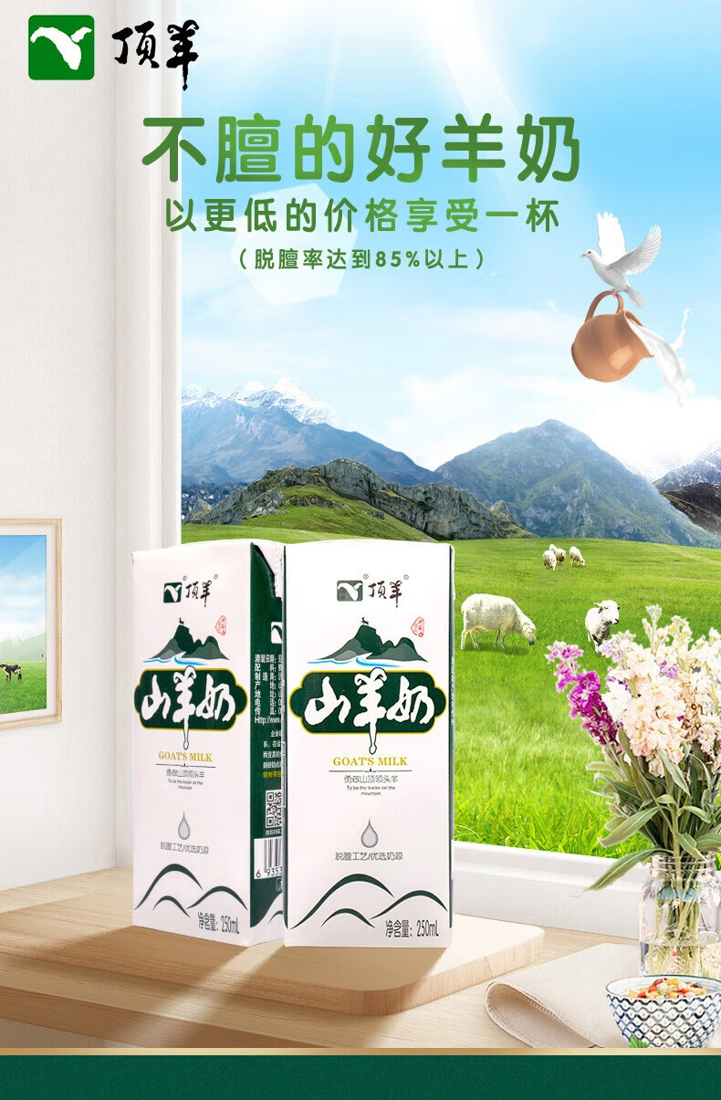 顶羊【新鲜日期】山羊奶250ml*12盒不同于牛奶早餐奶伴侣易吸收礼盒装