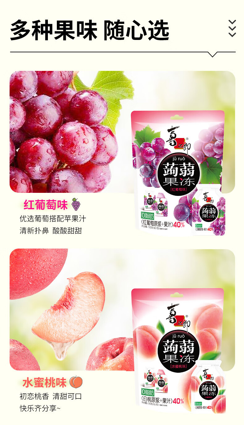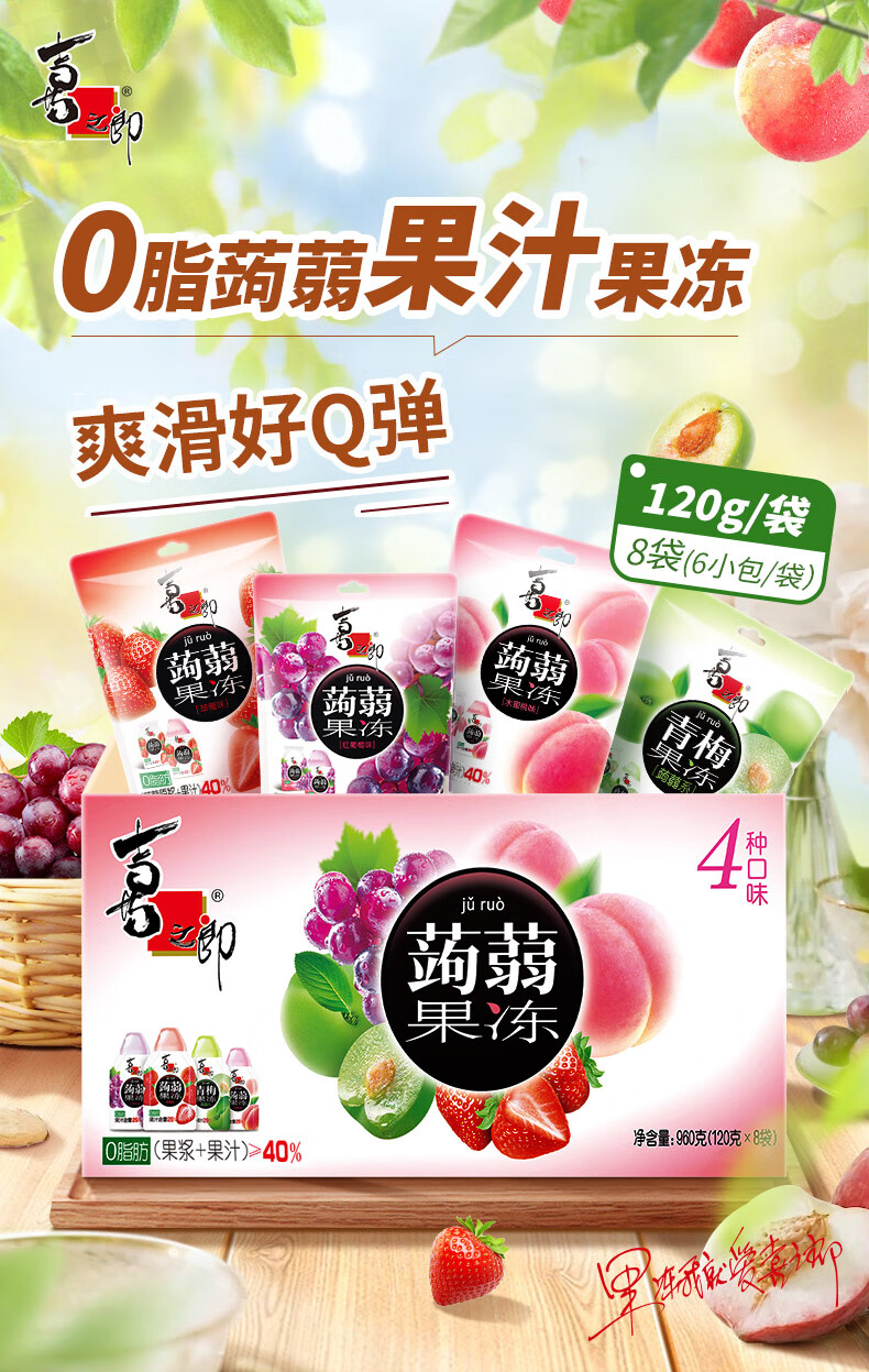 喜之郎蒟蒻果冻20gx48包960g40%果汁0脂肪 休闲儿童零食大礼包节日送礼