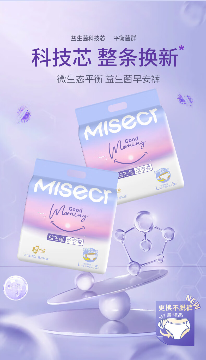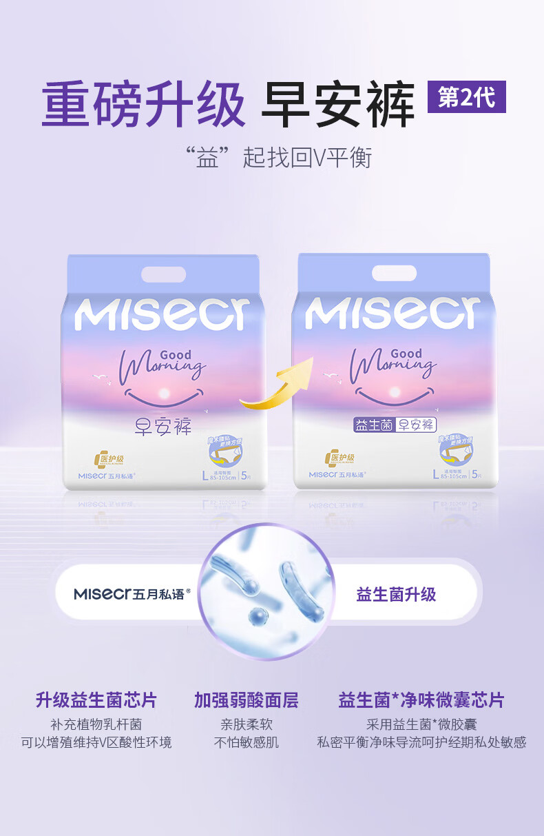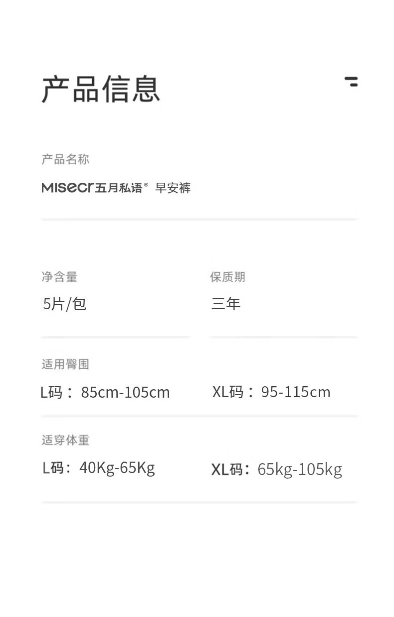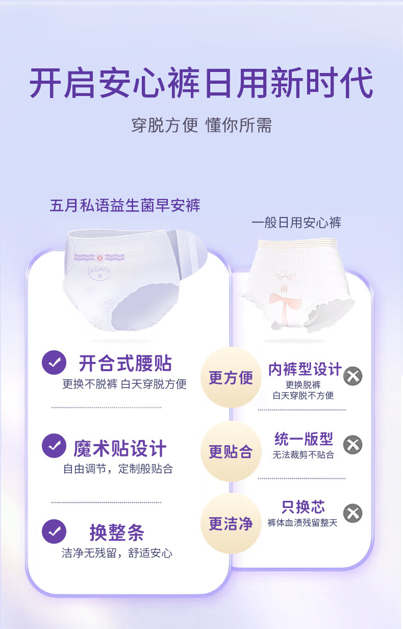 五月私语超薄魔术贴早安裤 安睡裤可粘贴两侧 日用安心裤女经期内裤医护级 XL 30条 130-210斤