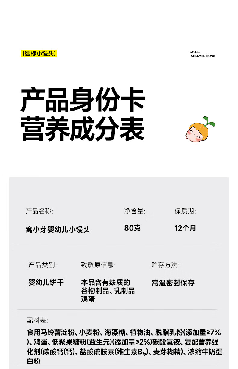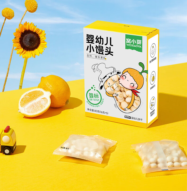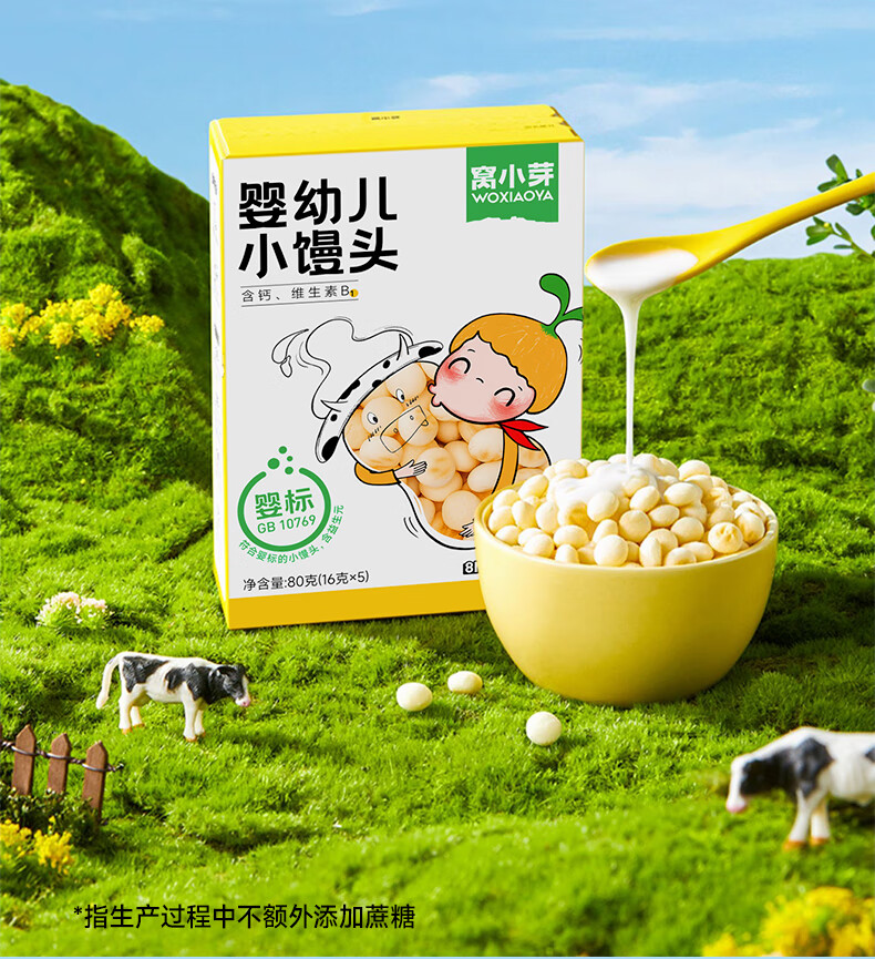 窝小芽 小馒头婴儿奶香味宝宝零食儿童婴幼儿饼干奶豆无添加蔗糖80g