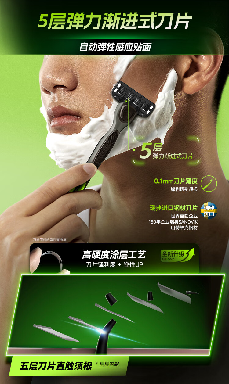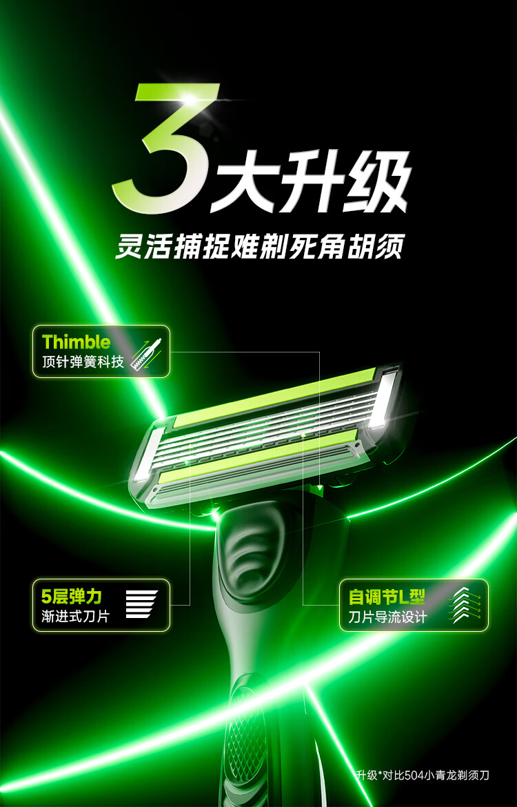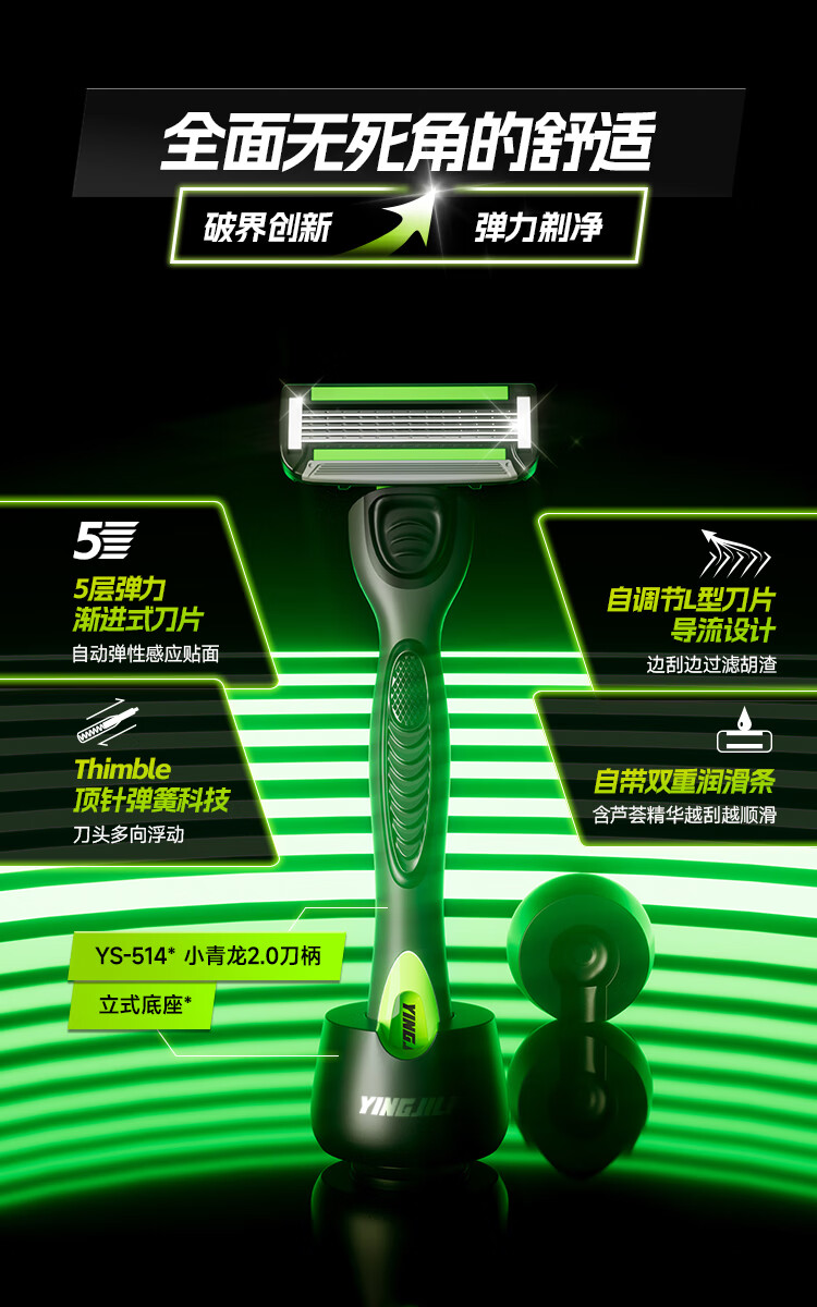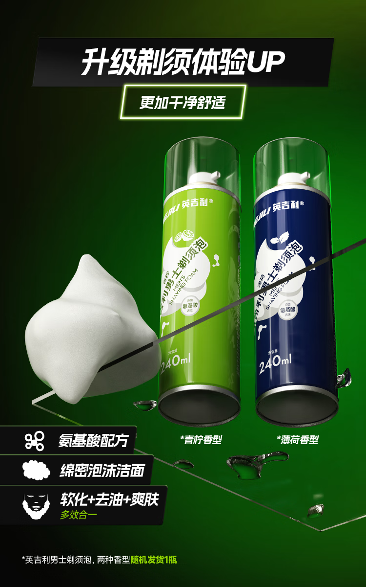 英吉利手动剃须刀头5层刮胡刀男士胡须刀小青龙2代刀片8枚装含氨基酸240ml泡沫