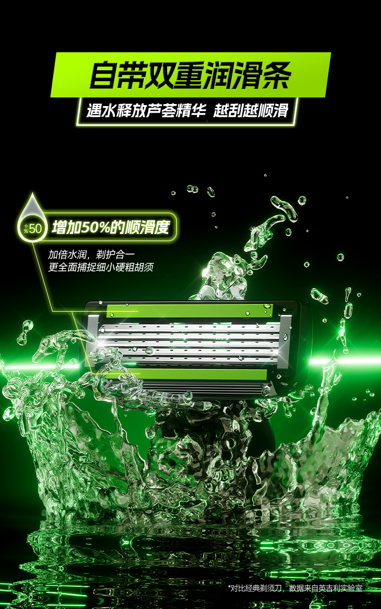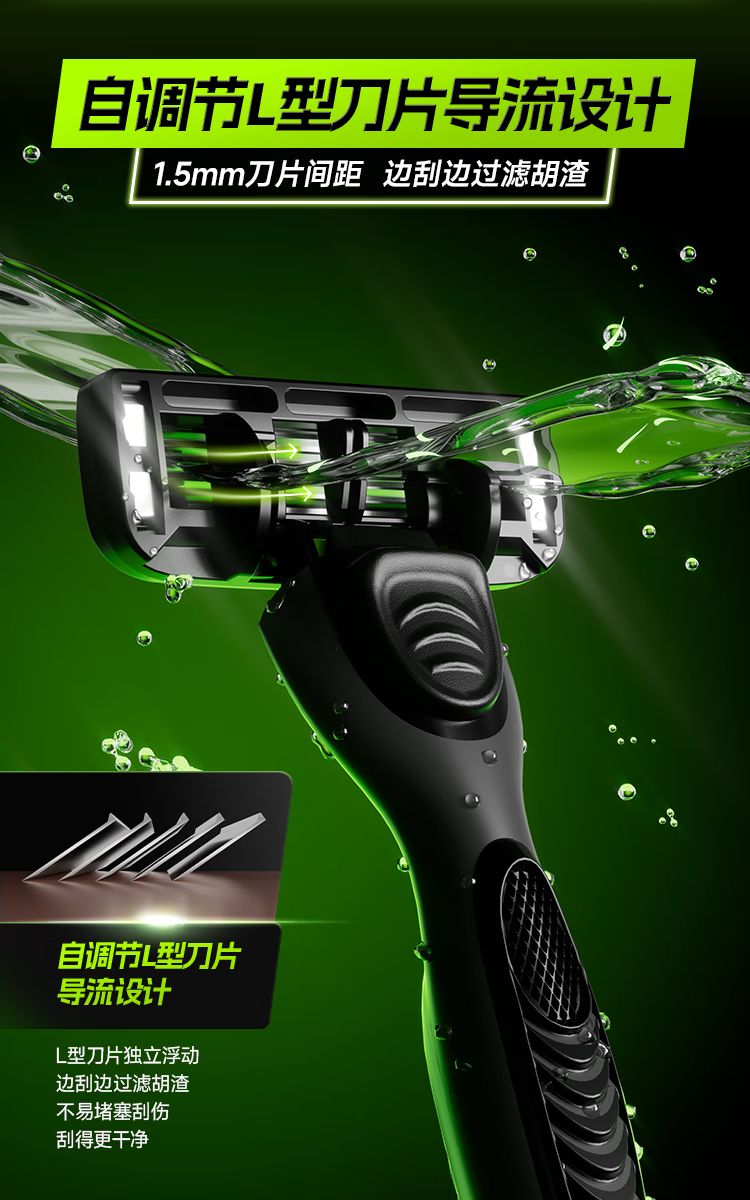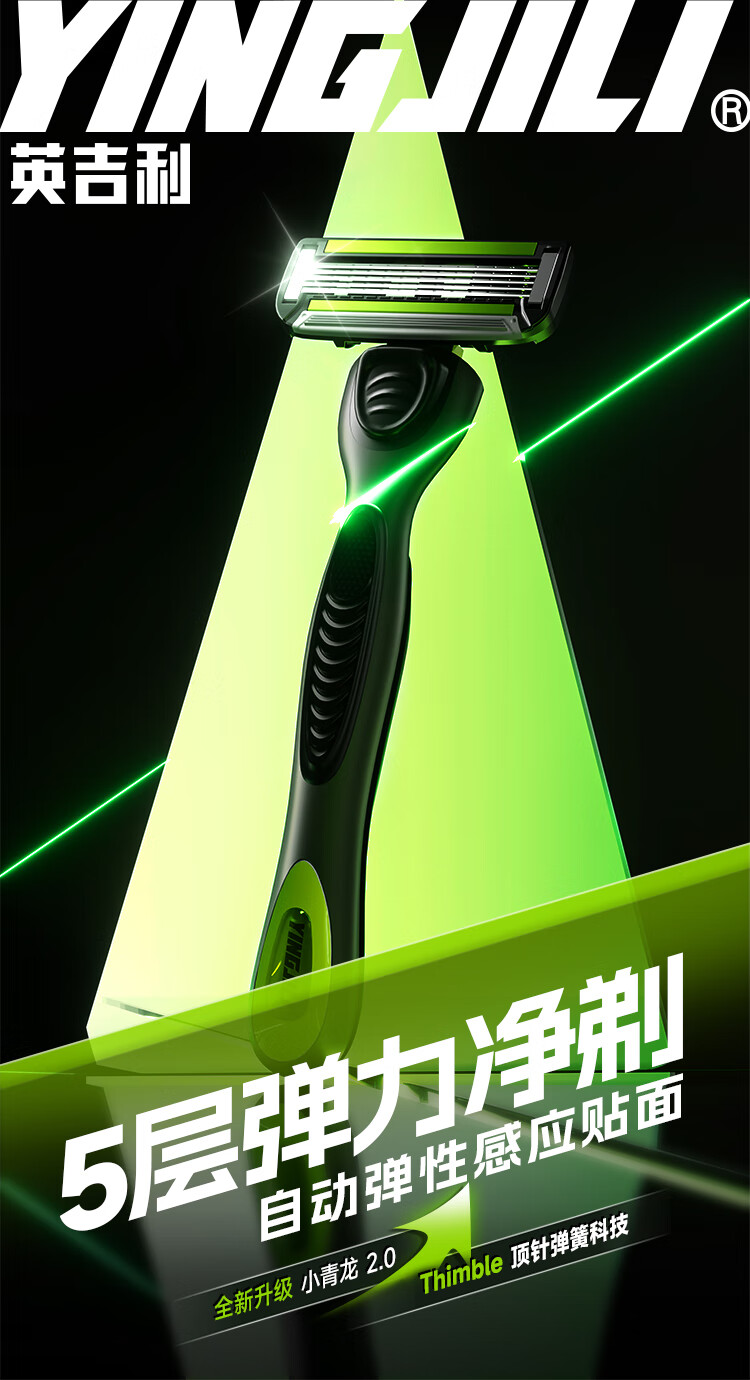 英吉利手动剃须刀头5层刮胡刀男士胡须刀小青龙2代刀片8枚装含氨基酸240ml泡沫