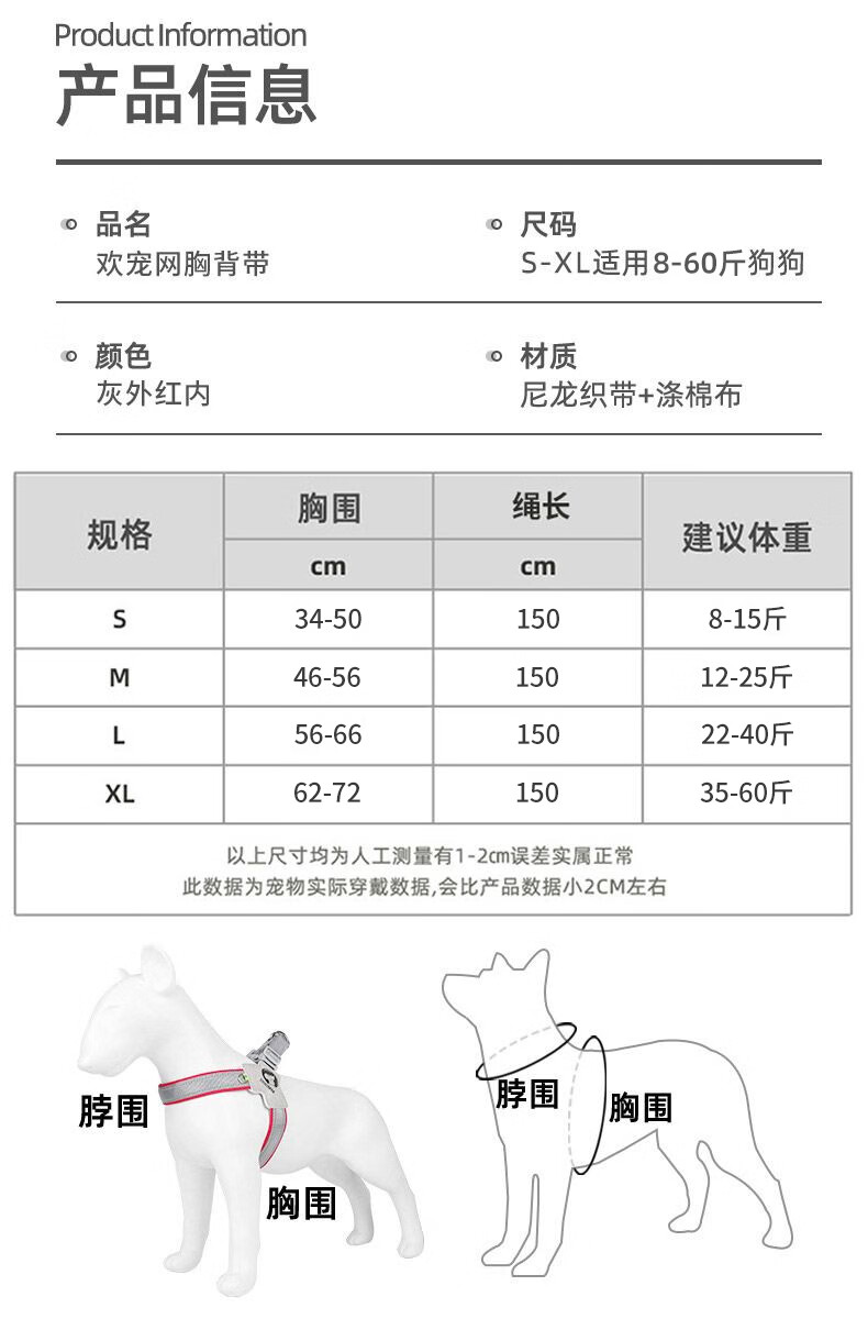 欢宠网狗绳狗狗牵引绳狗胸背带遛狗牵狗绳狗链子背带宠物大型中型犬大狗