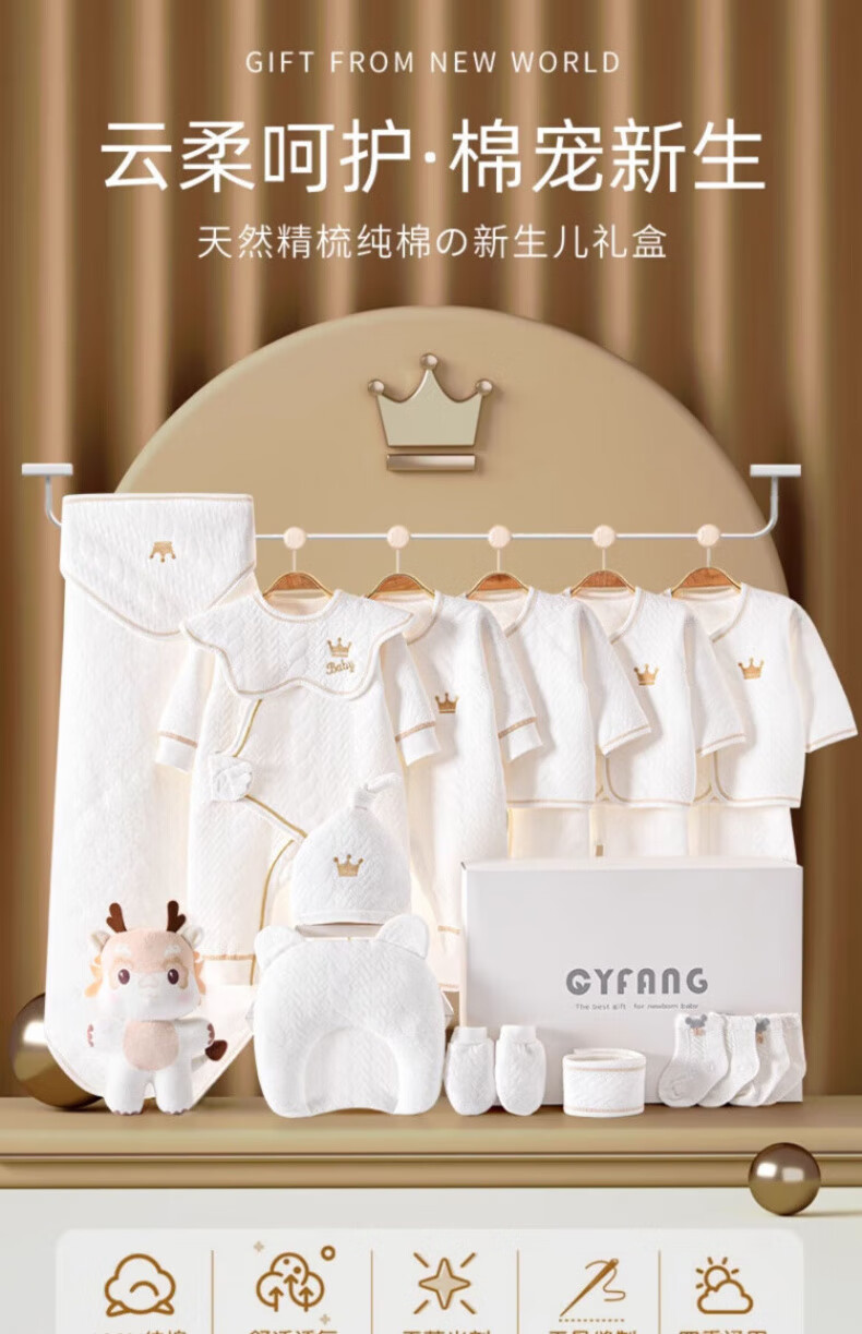DEATKN德国全纯棉婴儿套装礼盒新生儿衣服用品套盒 四季26件蛇舞_红色 59cm 【适合0-3个月】礼盒装_新生礼