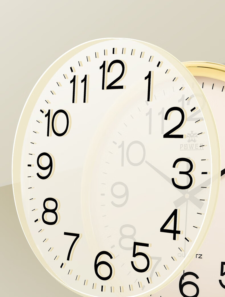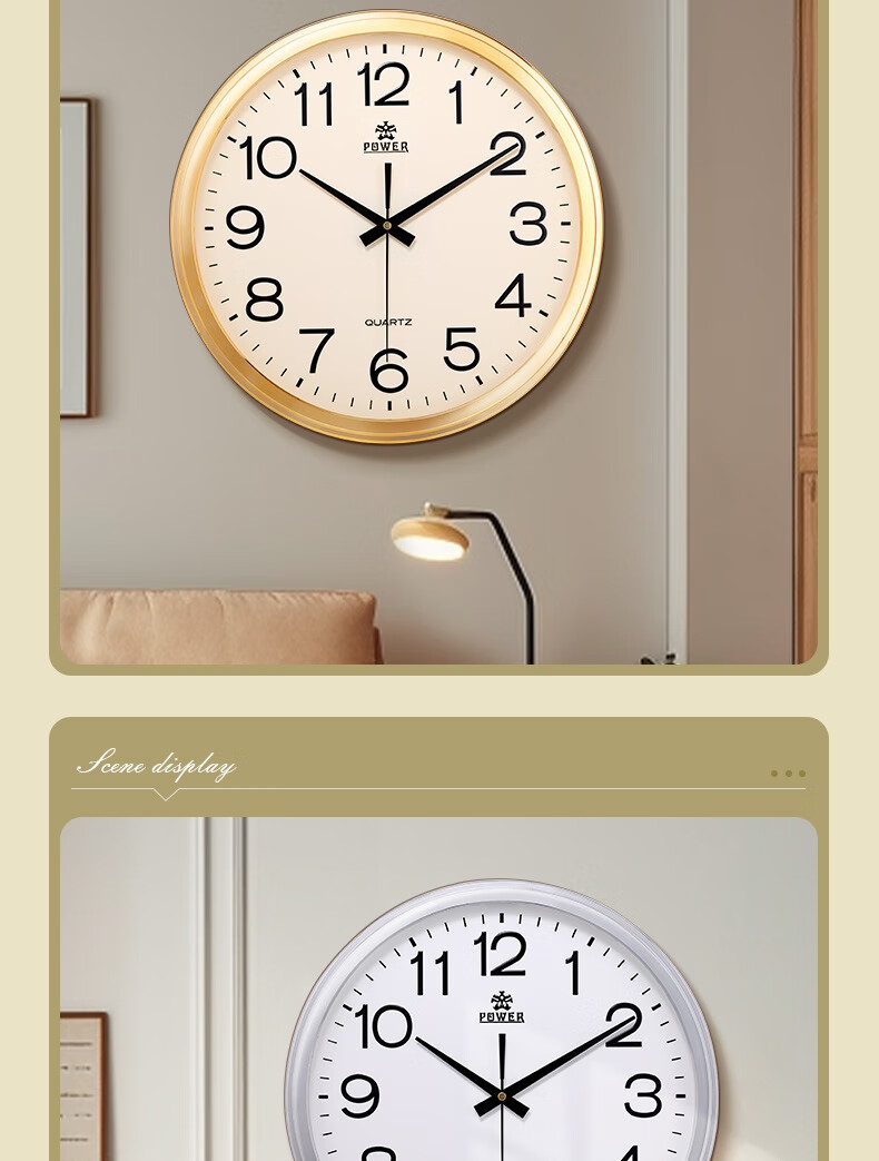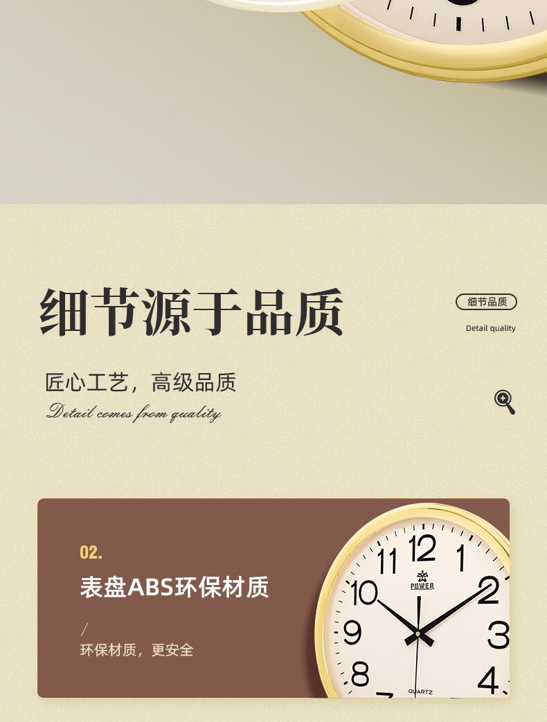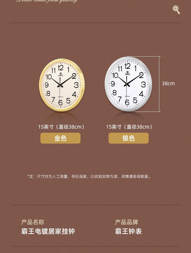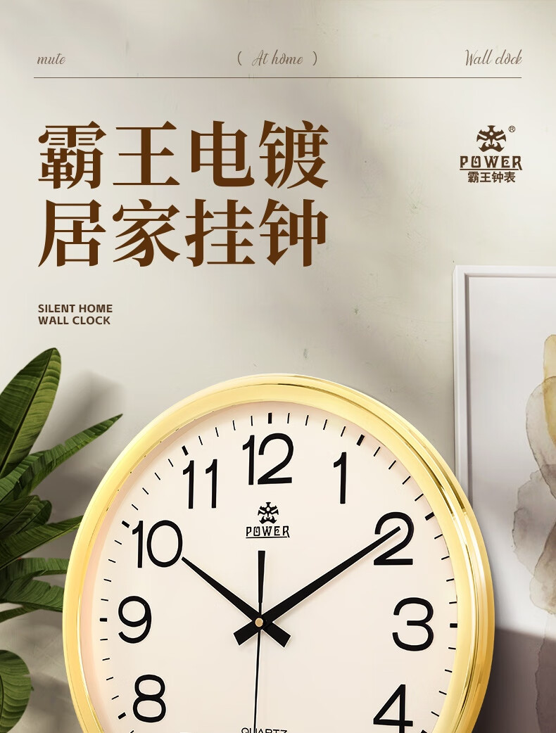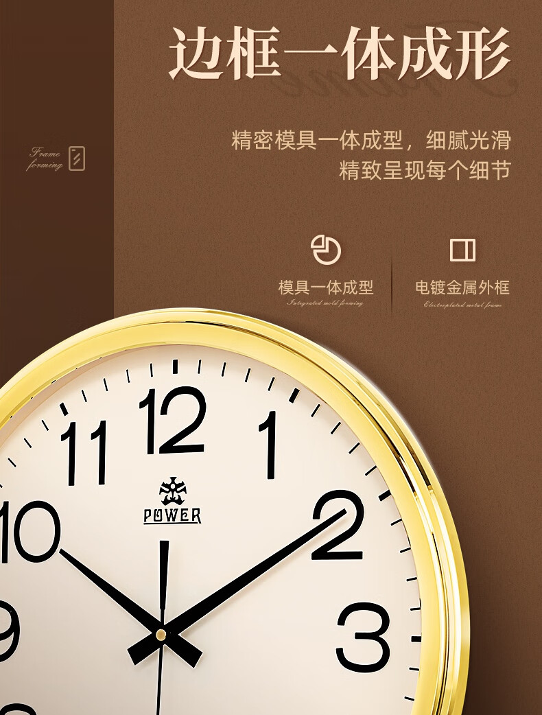 POWER钟表 客厅挂钟家用简约创意石英钟时尚挂墙电镀15英寸金8253AKS