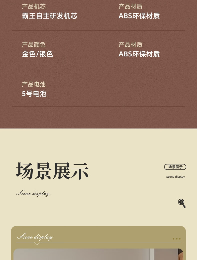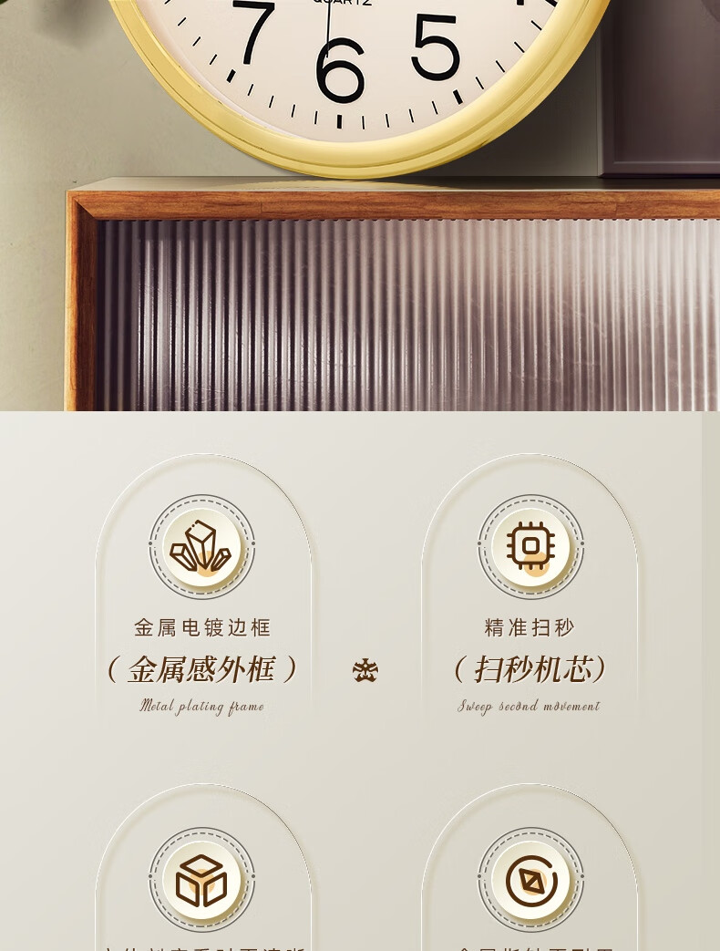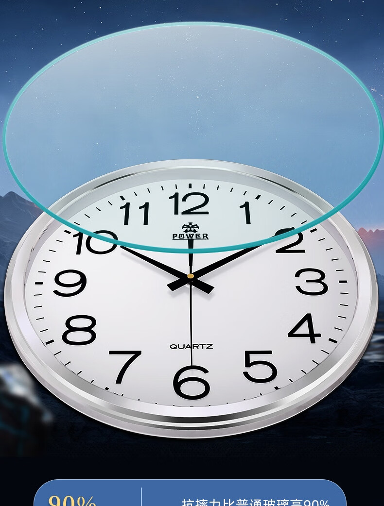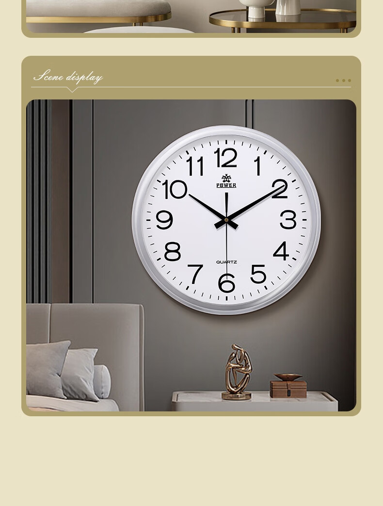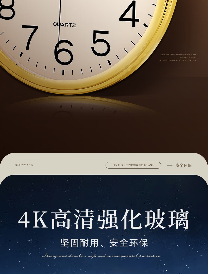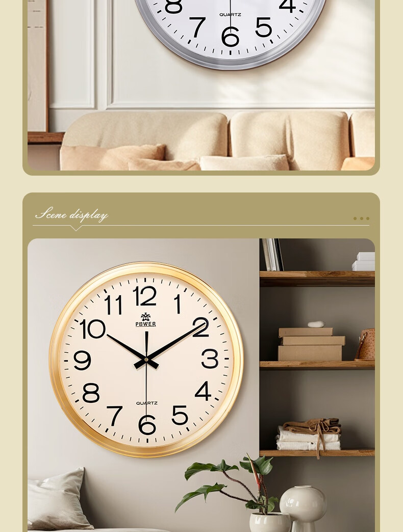 POWER钟表 客厅挂钟家用简约创意石英钟时尚挂墙电镀15英寸金8253AKS