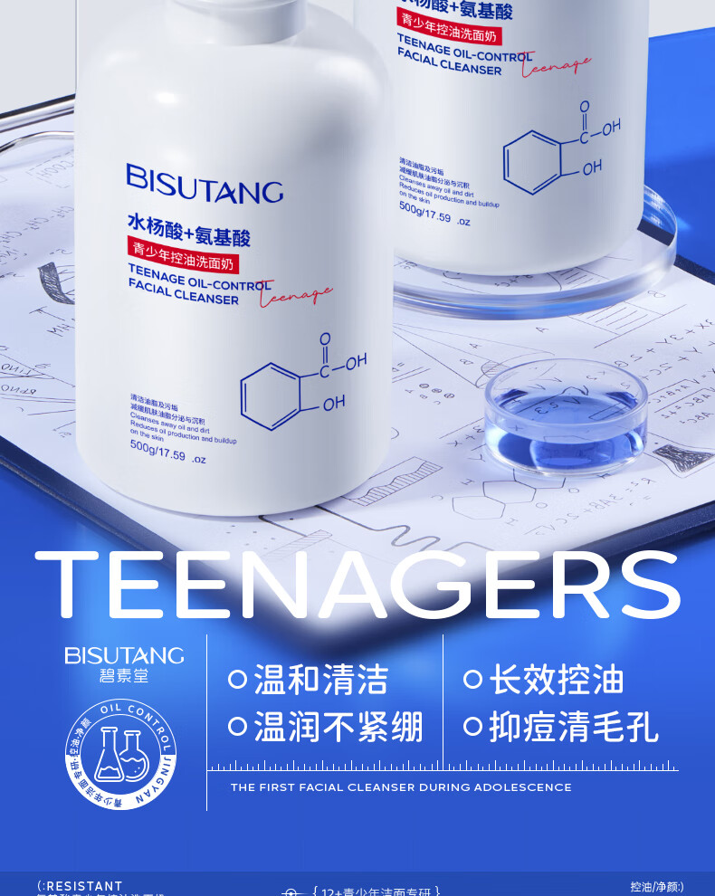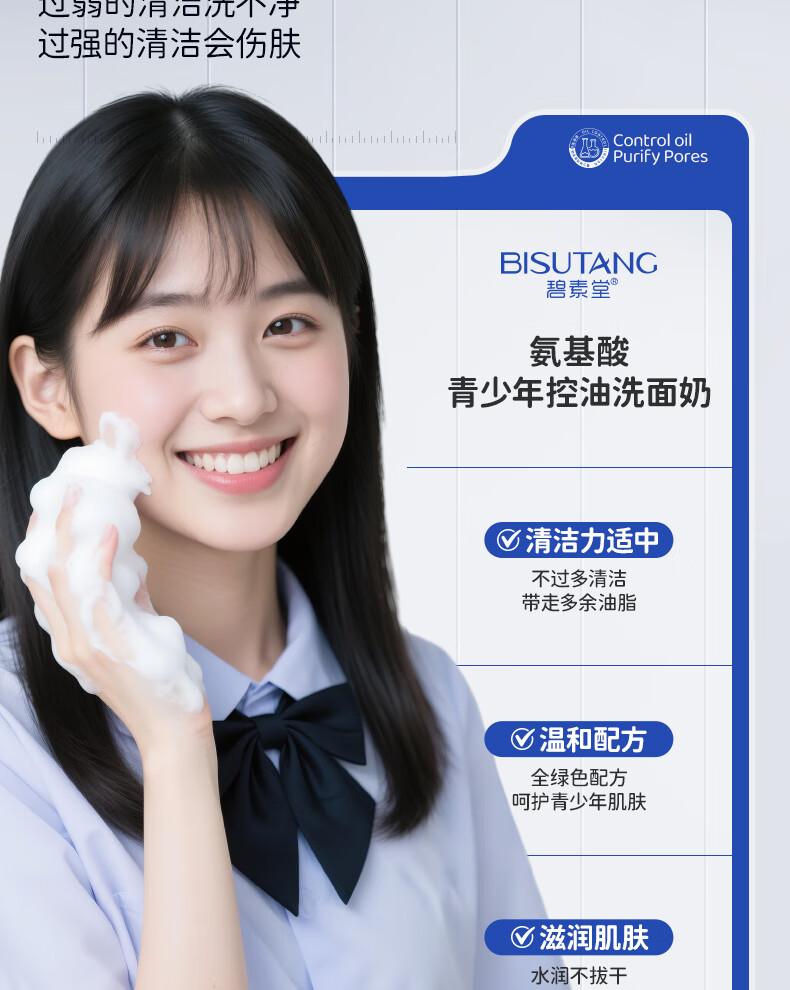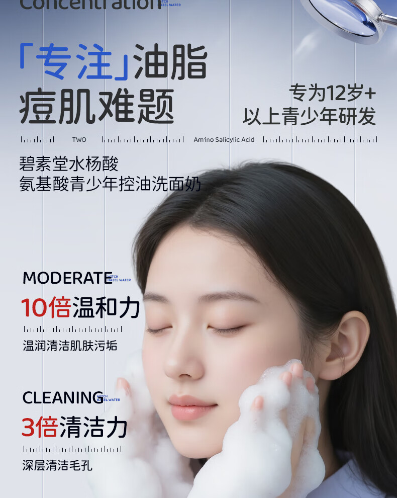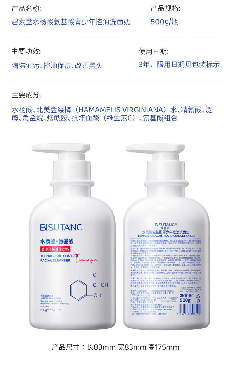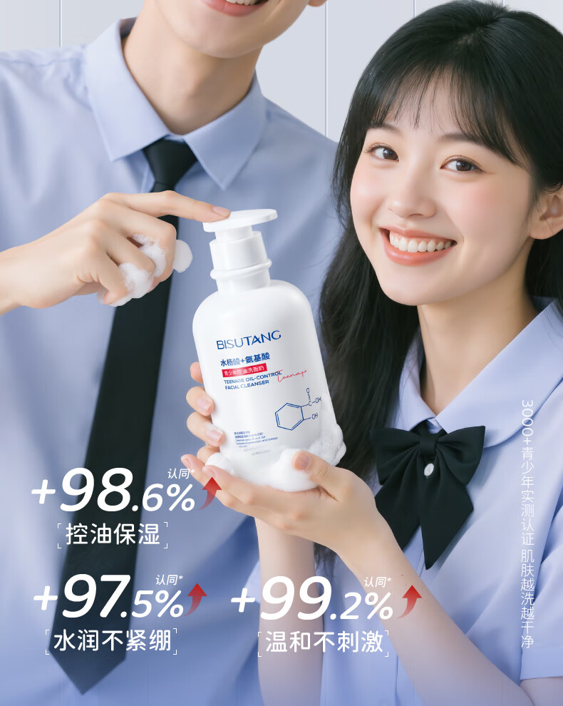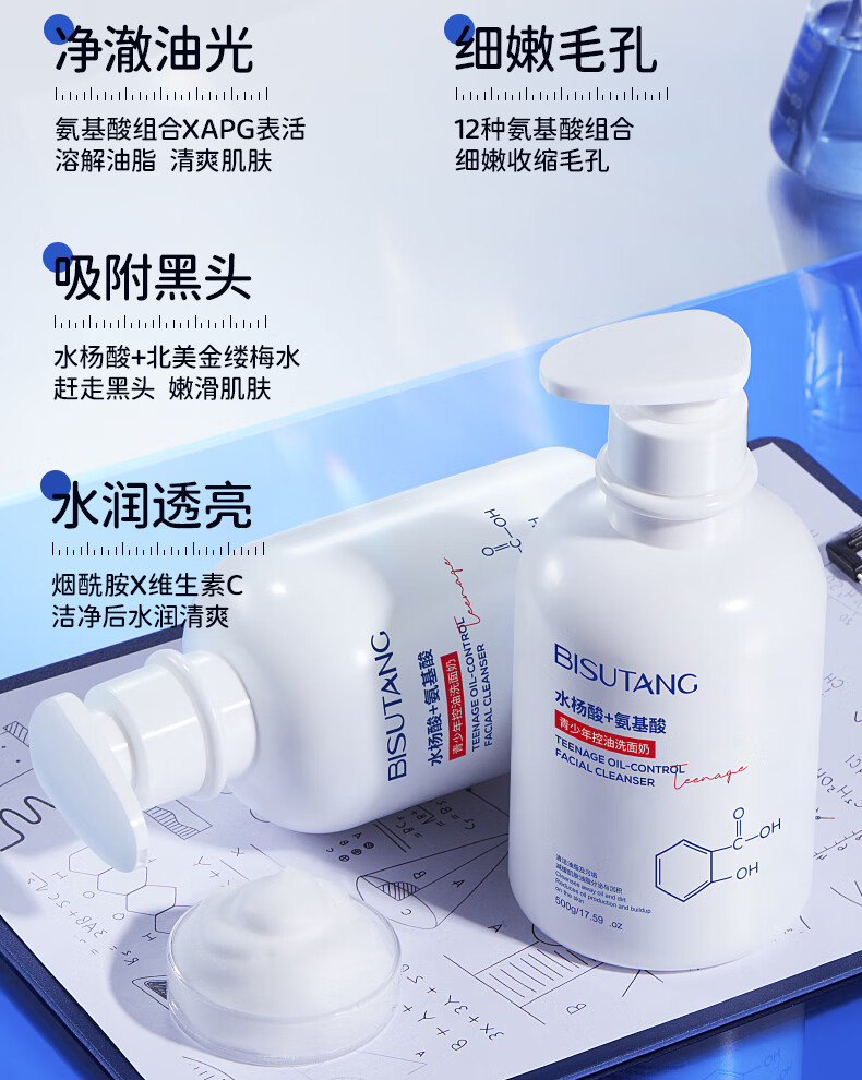 碧素堂氨基酸青少年洗面奶控油祛痘淡化痘印青春期少女男洁面乳学生专用 500g 【1瓶青少年洁面】控油净痘
