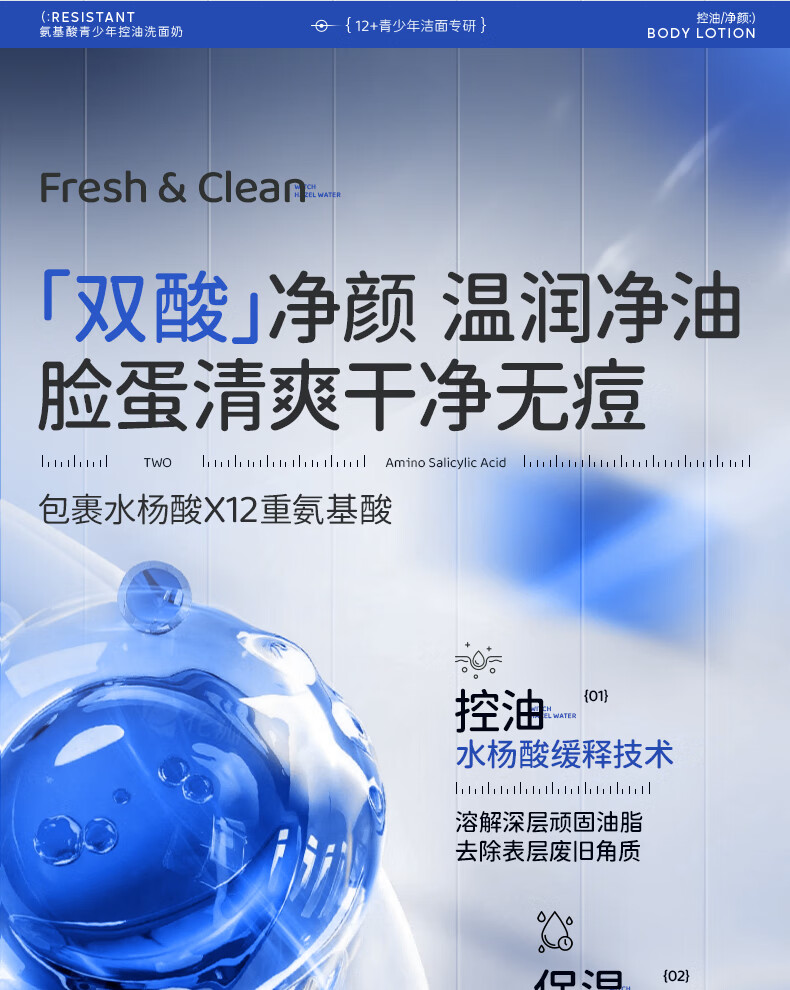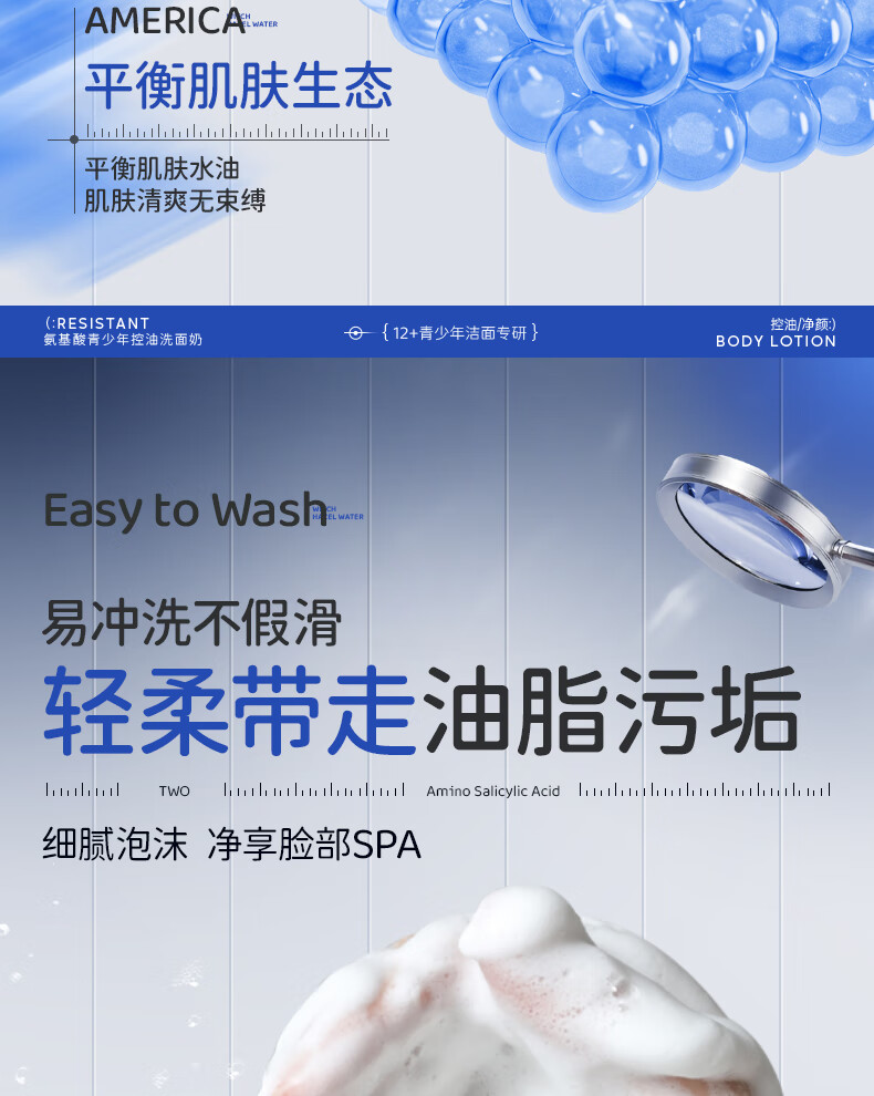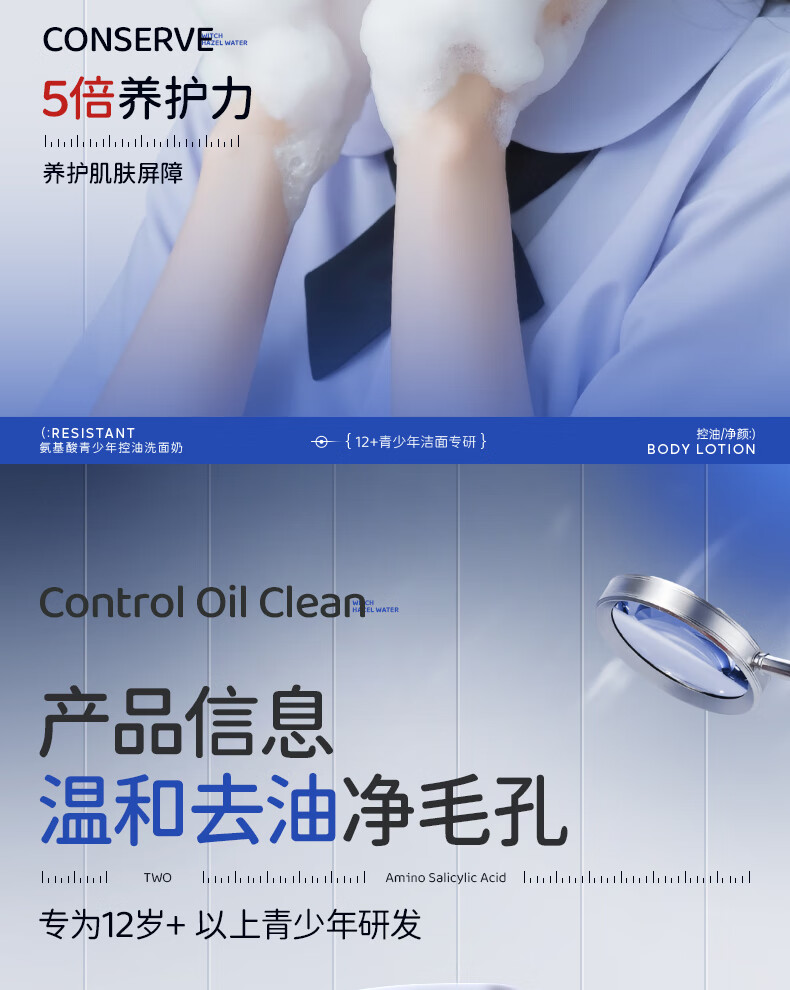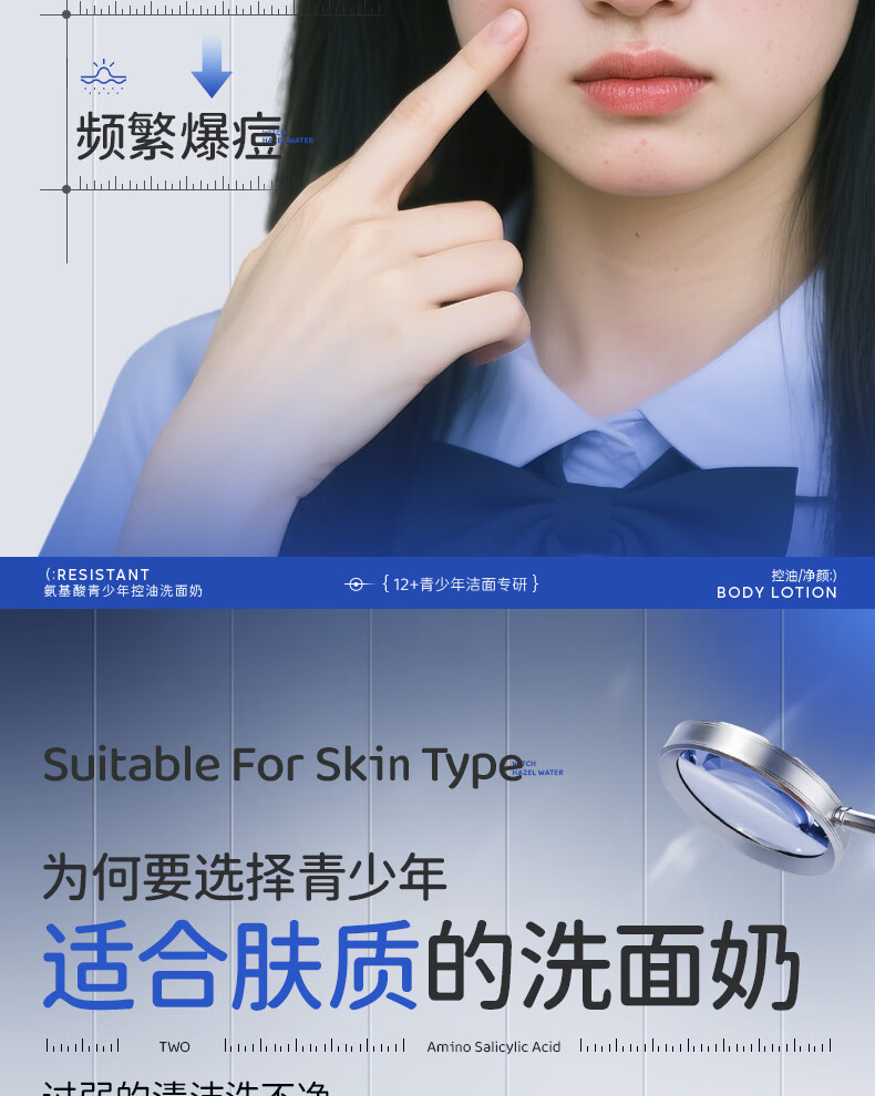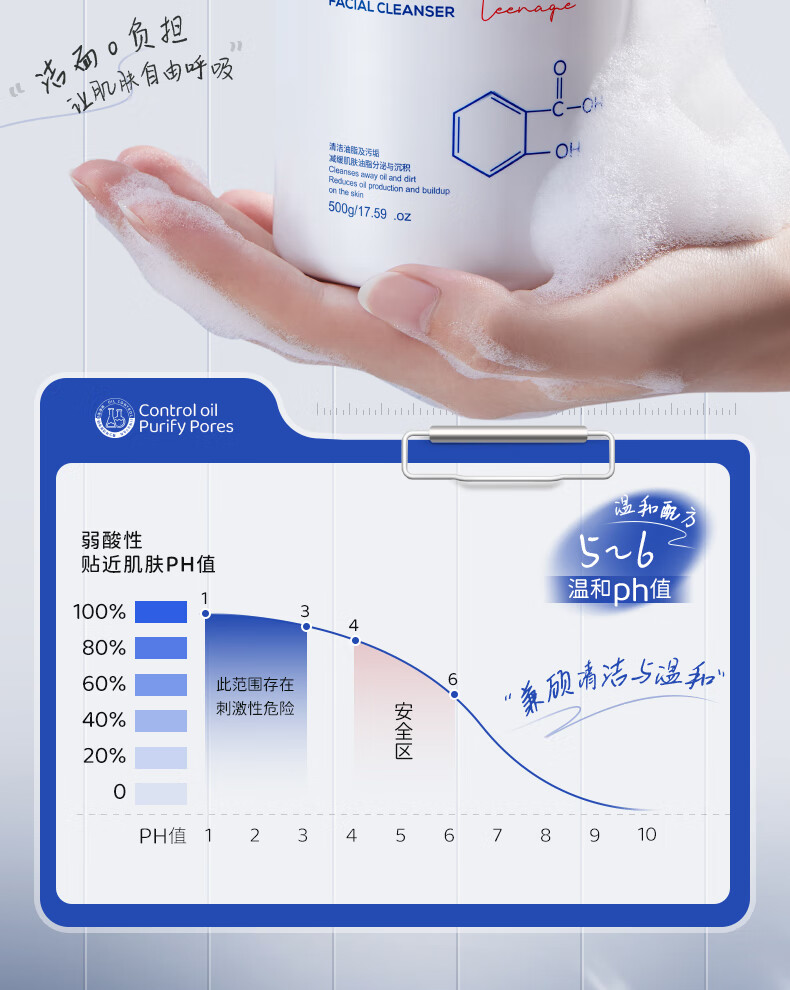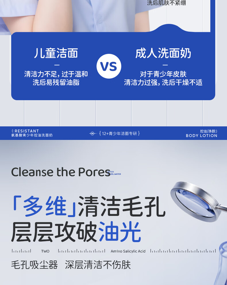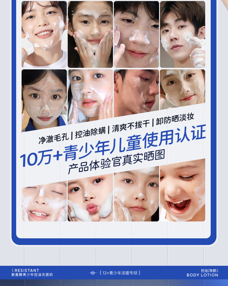碧素堂氨基酸青少年洗面奶控油祛痘淡化痘印青春期少女男洁面乳学生专用 500g 【1瓶青少年洁面】控油净痘