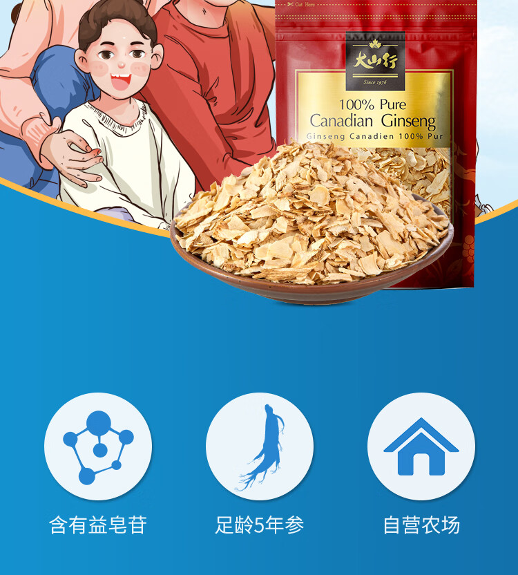 大山行西洋参小片 加拿大进口花旗参碎 泡茶水日常滋补实惠自用长辈老人 Canavida西洋参100克 【一个月调理装】