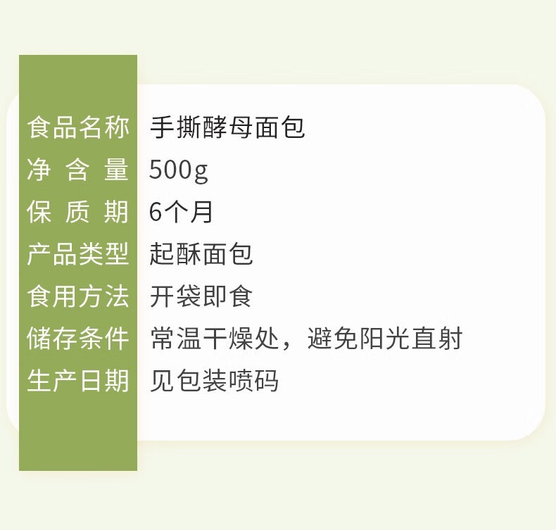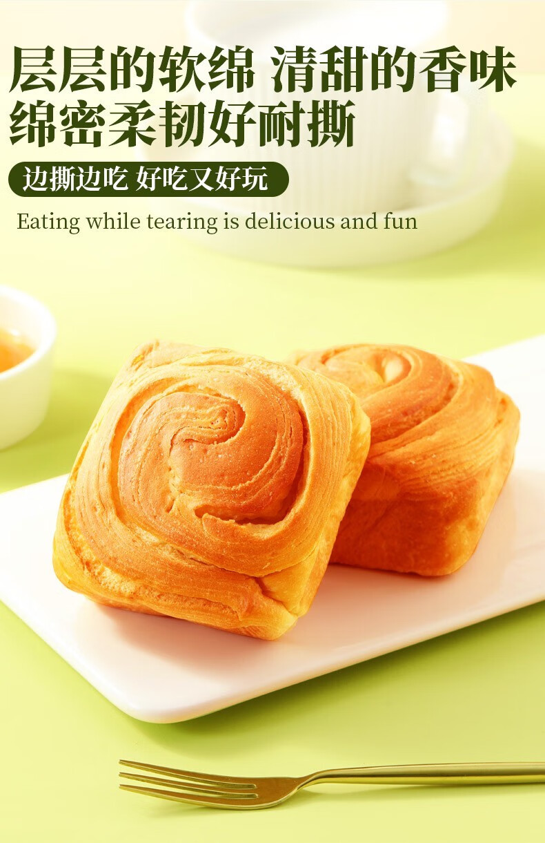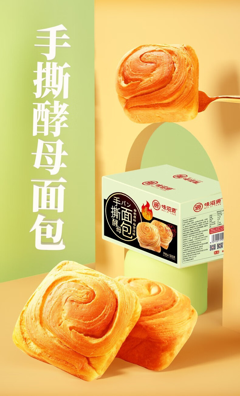 味滋源休闲零食宅家追剧出游饱腹代餐懒人速食小零食 手撕酵母面包 500g 1箱