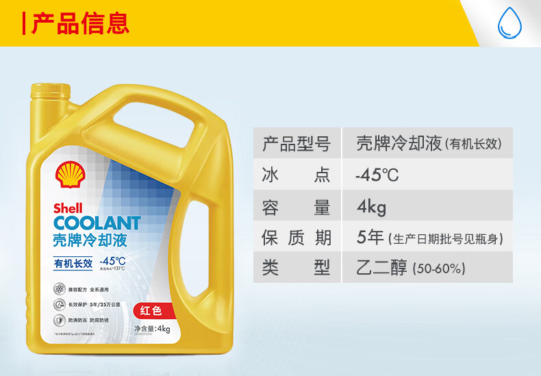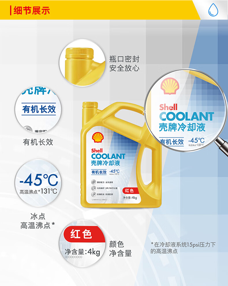 壳牌(Shell)长效冷却防冻液水箱宝 -45℃ 4kg 养车保养