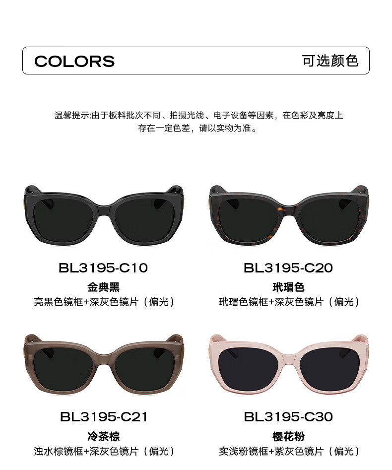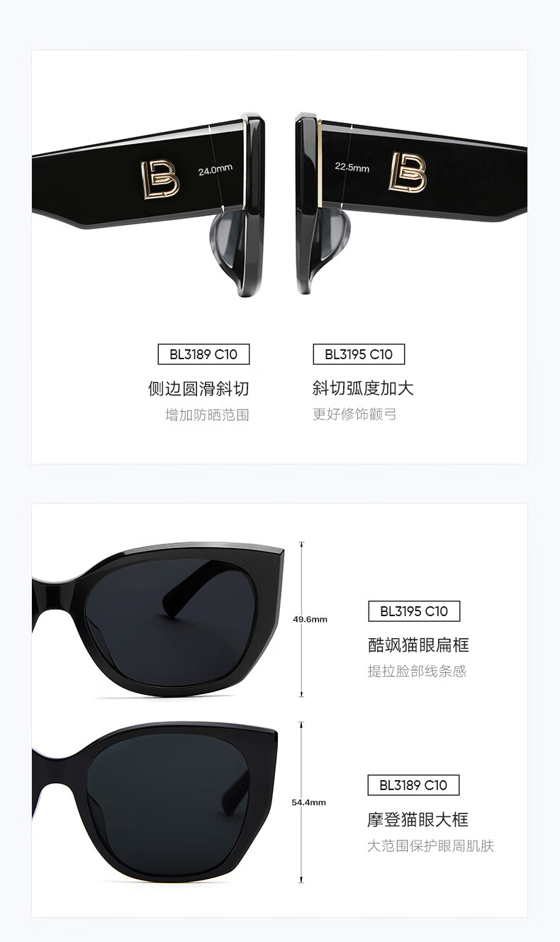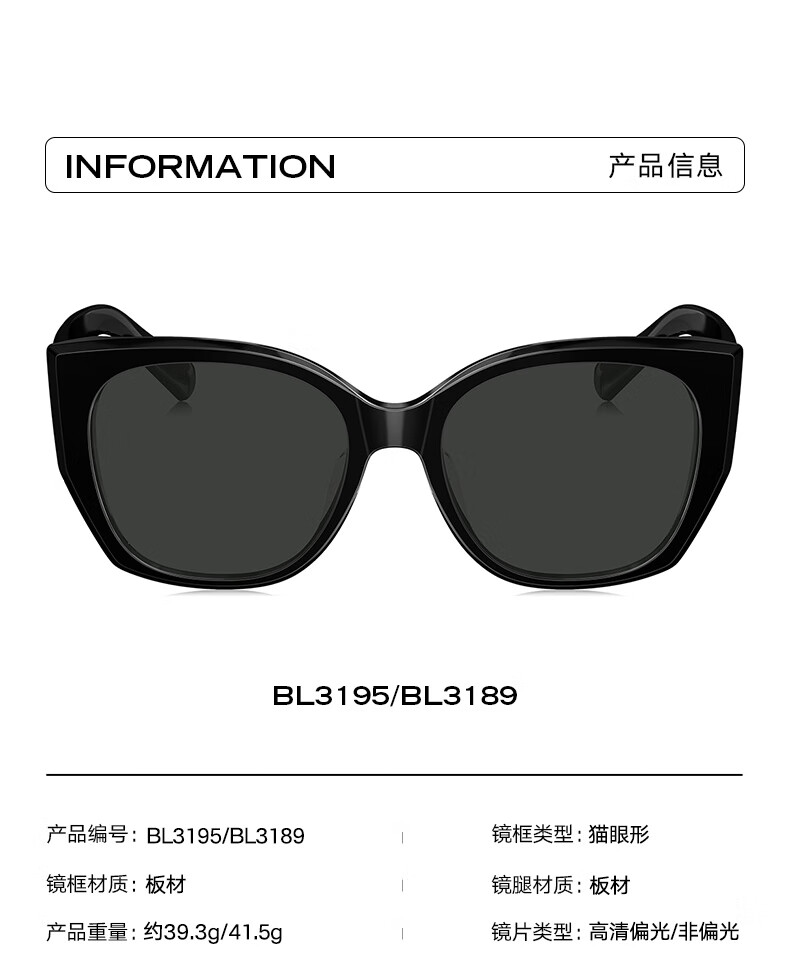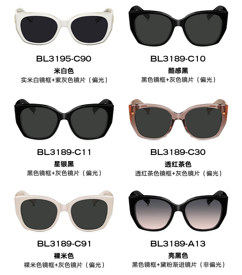 BOLON暴龙眼镜猫眼偏光杨紫同款太阳镜开车防晒墨镜男女潮BL3195C10
