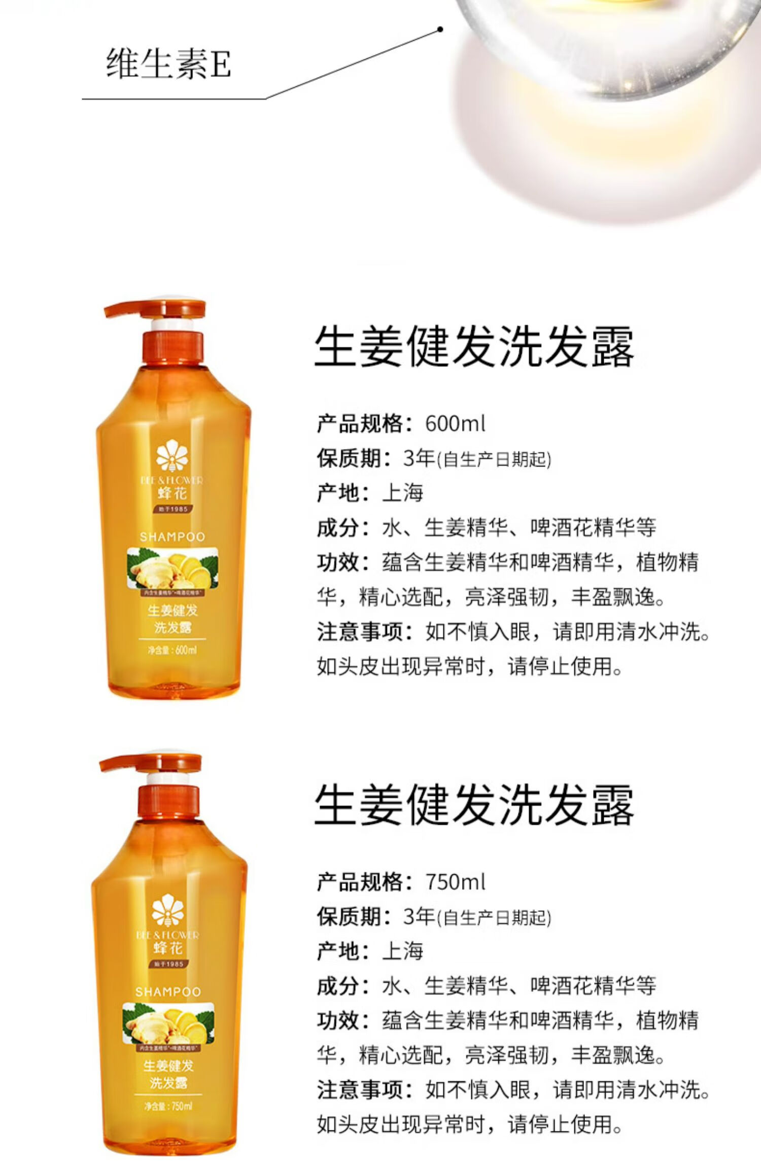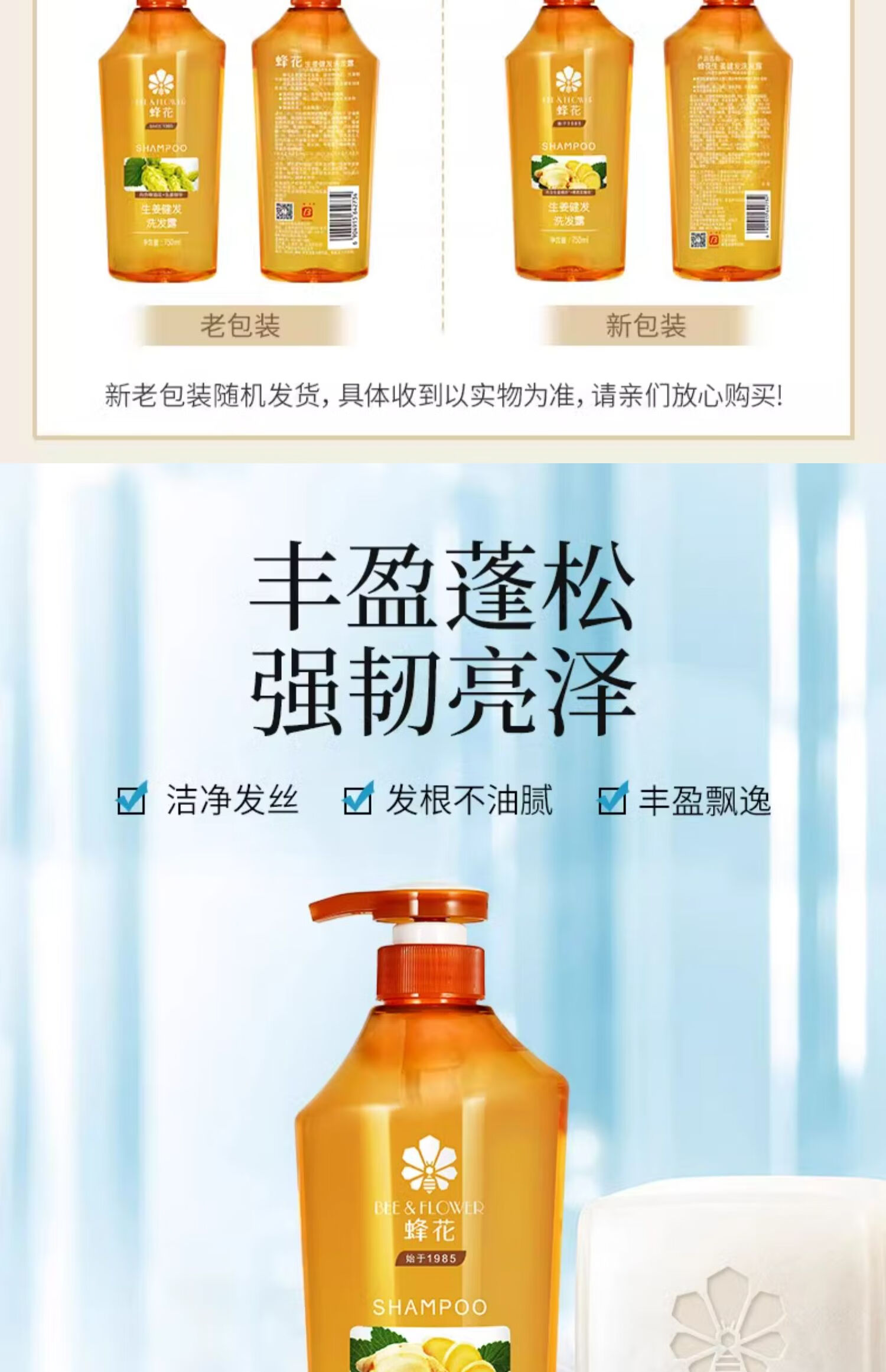 蜂花生姜洗发水滋润无硅油健发丰盈蓬松洗发露强韧发丝保湿 生姜健发洗发露750ml 单瓶装