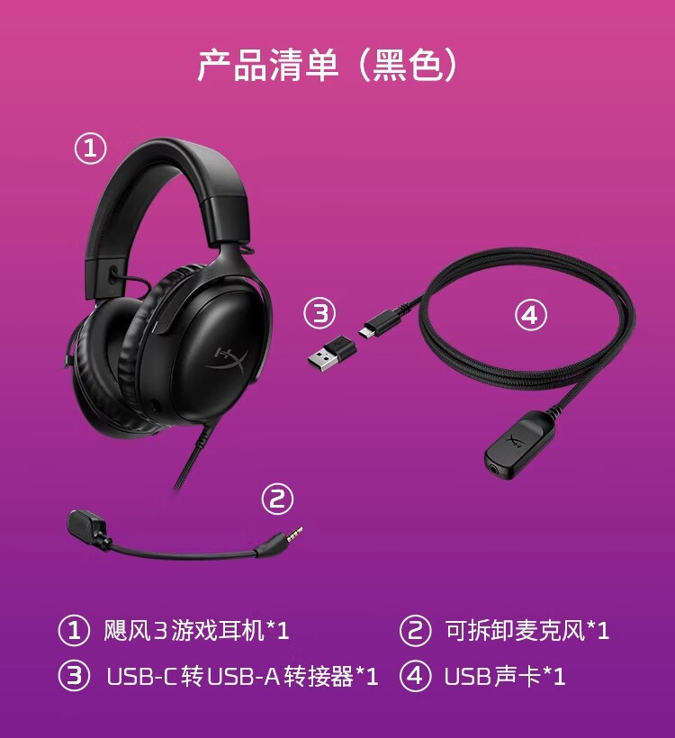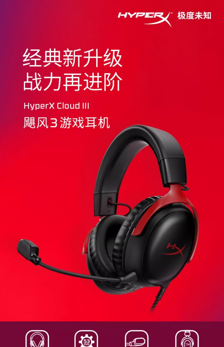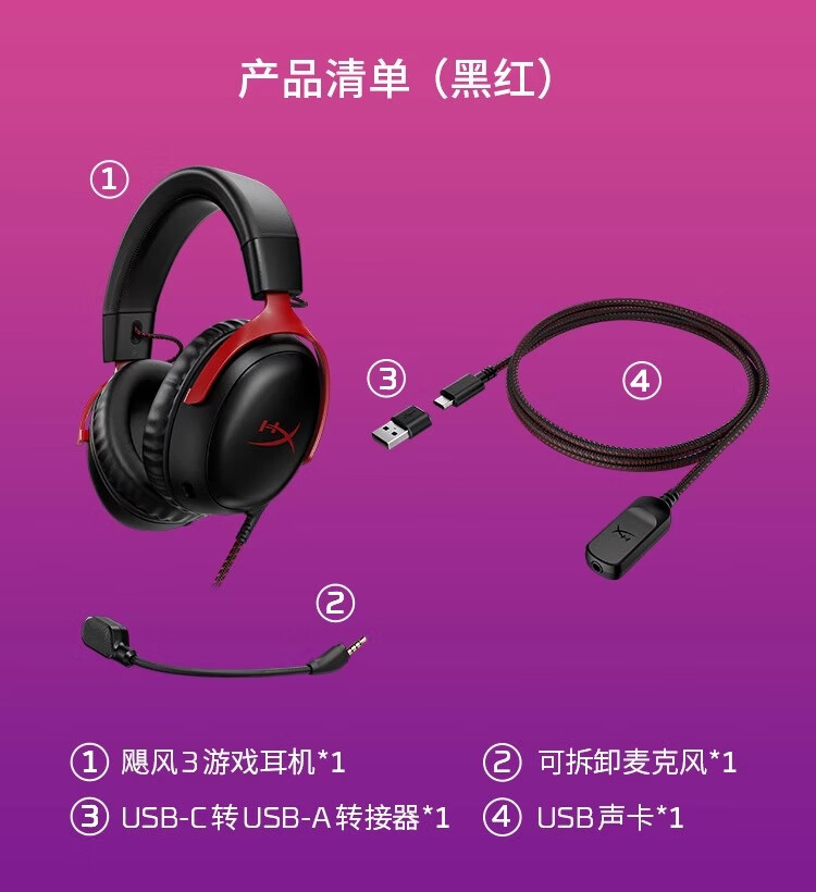 极度未知(HYPERX)国庆好礼极度未知飓风2飓风3有线游戏耳机礼物麦克风带声卡头戴式CSGO电竞DTS音效 飓风3-黑红+DTS空间音效声卡+送铝合金耳机支架
