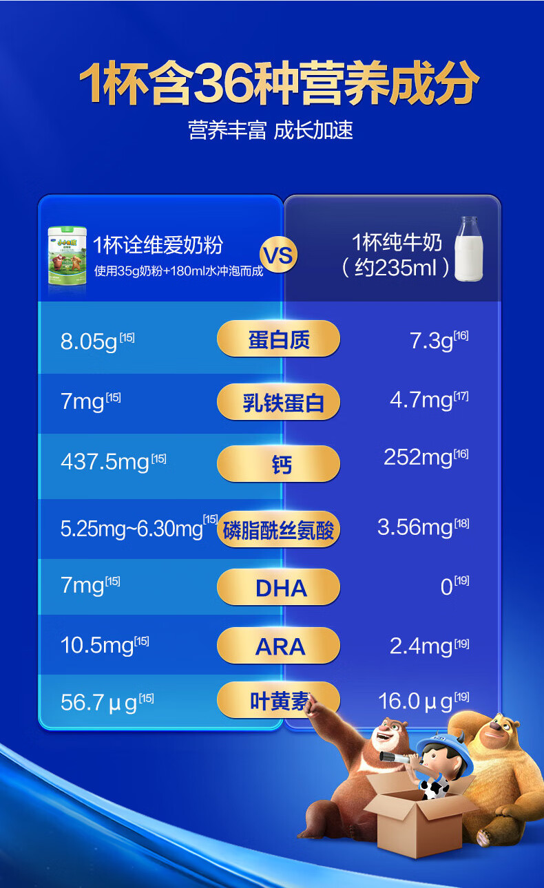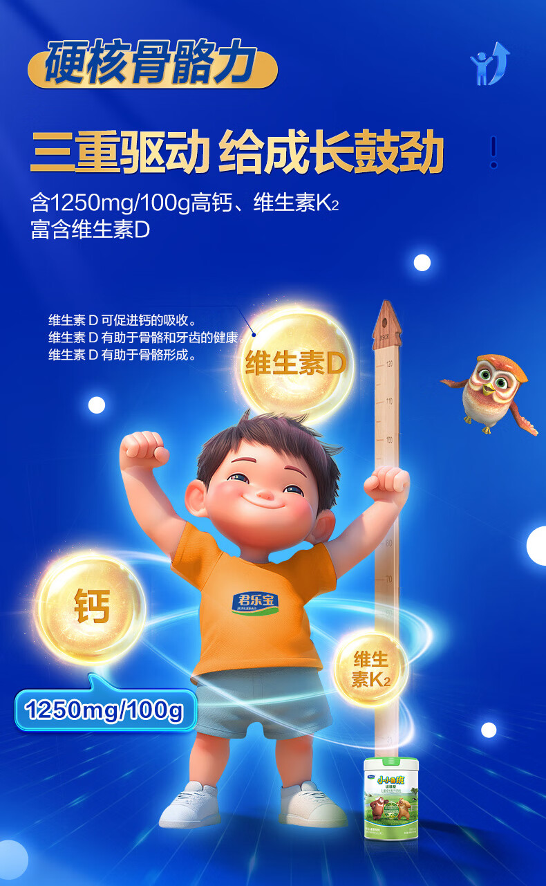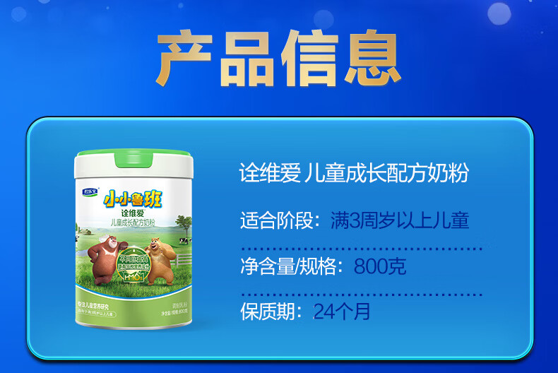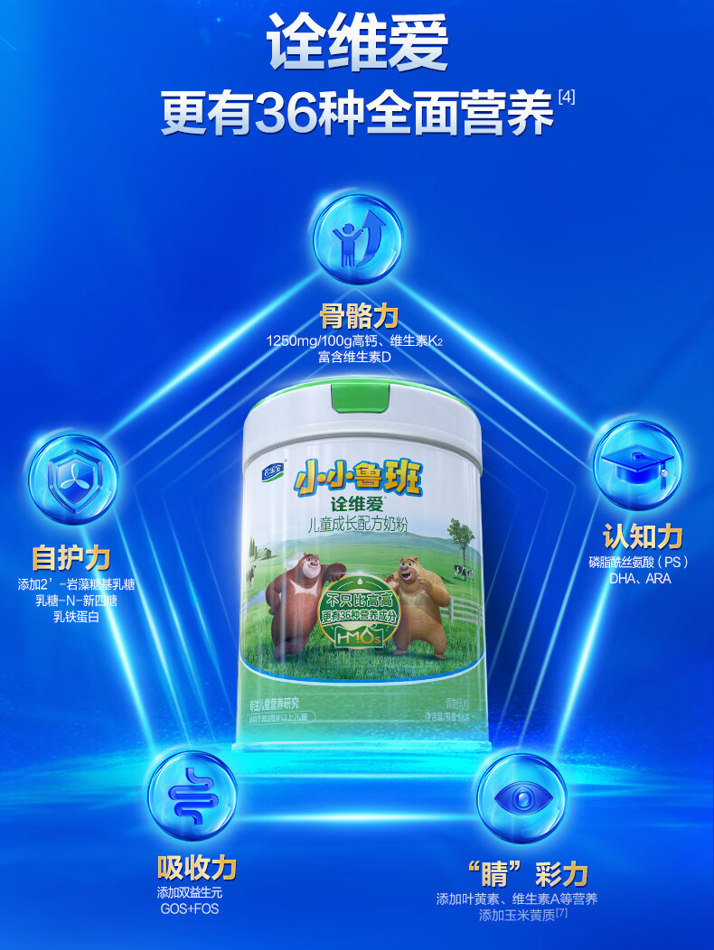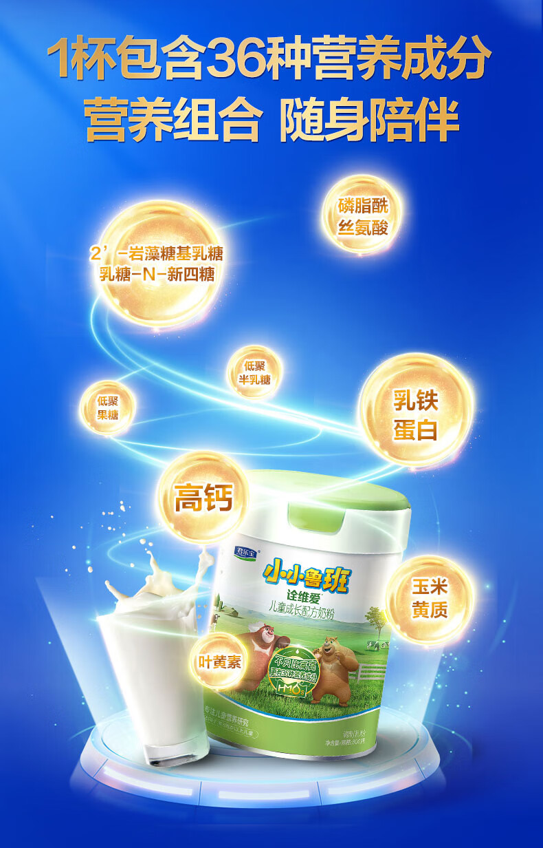 君乐宝小小鲁班诠维爱儿童配方奶粉4段(3周岁以上)800g听装 全面营养