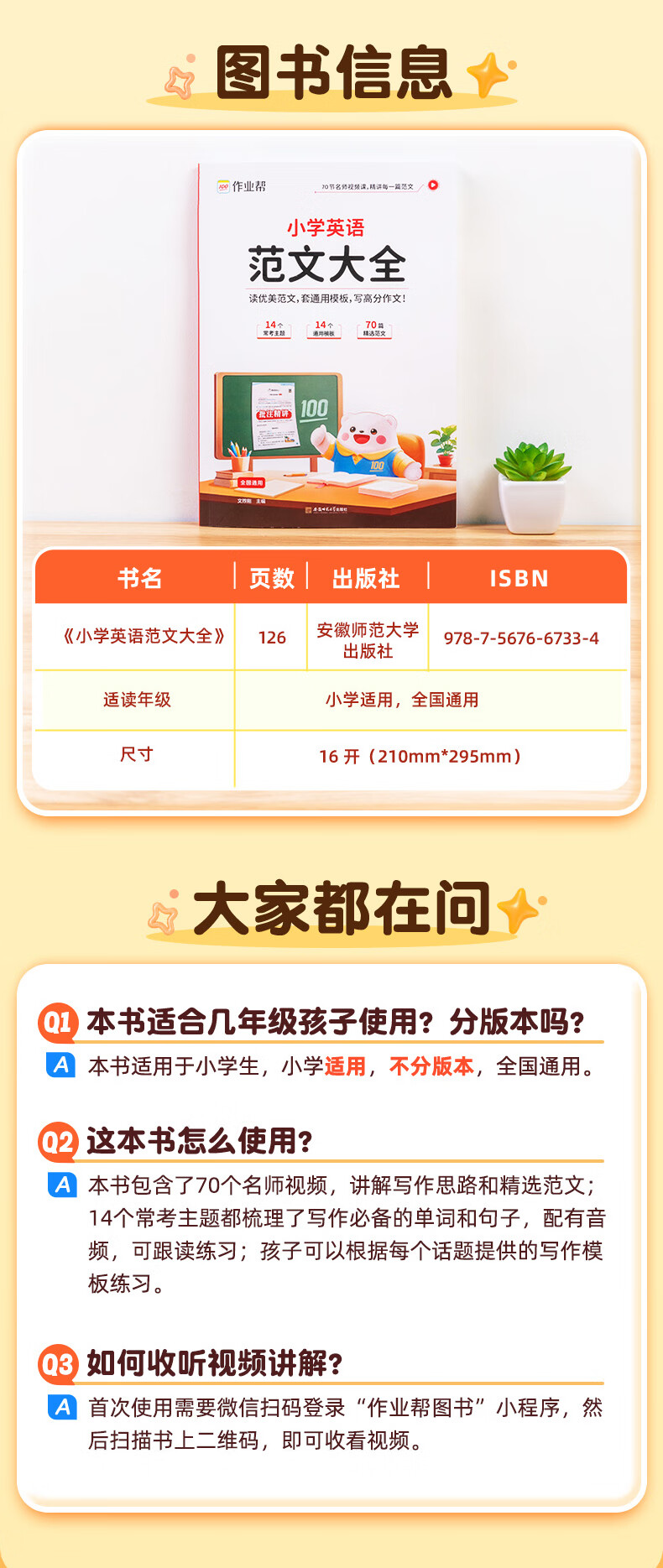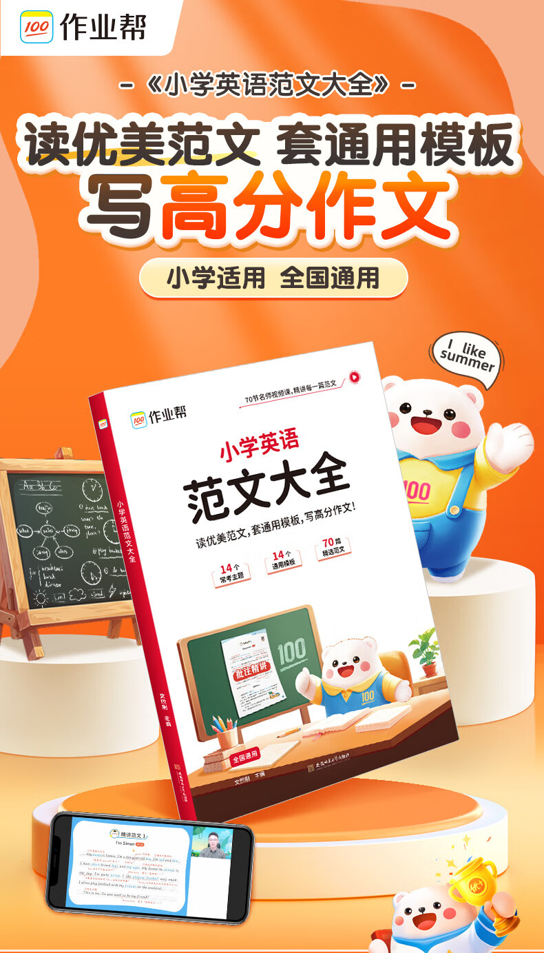 作业帮小学英语范文大全零基础自学小学生优秀作文示范大全人教版通用版小学教材拓展阅读 小学英语范文大全