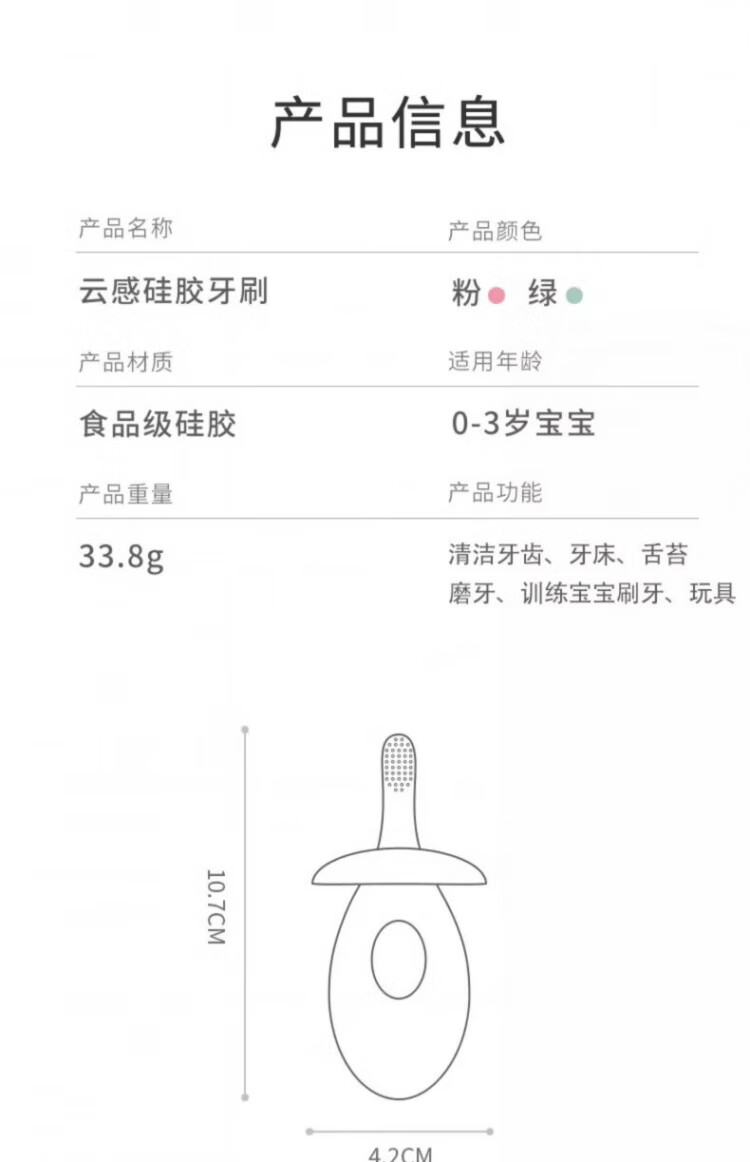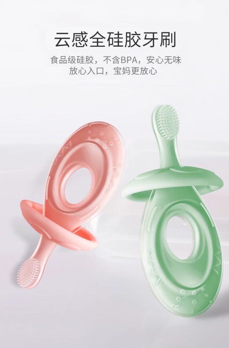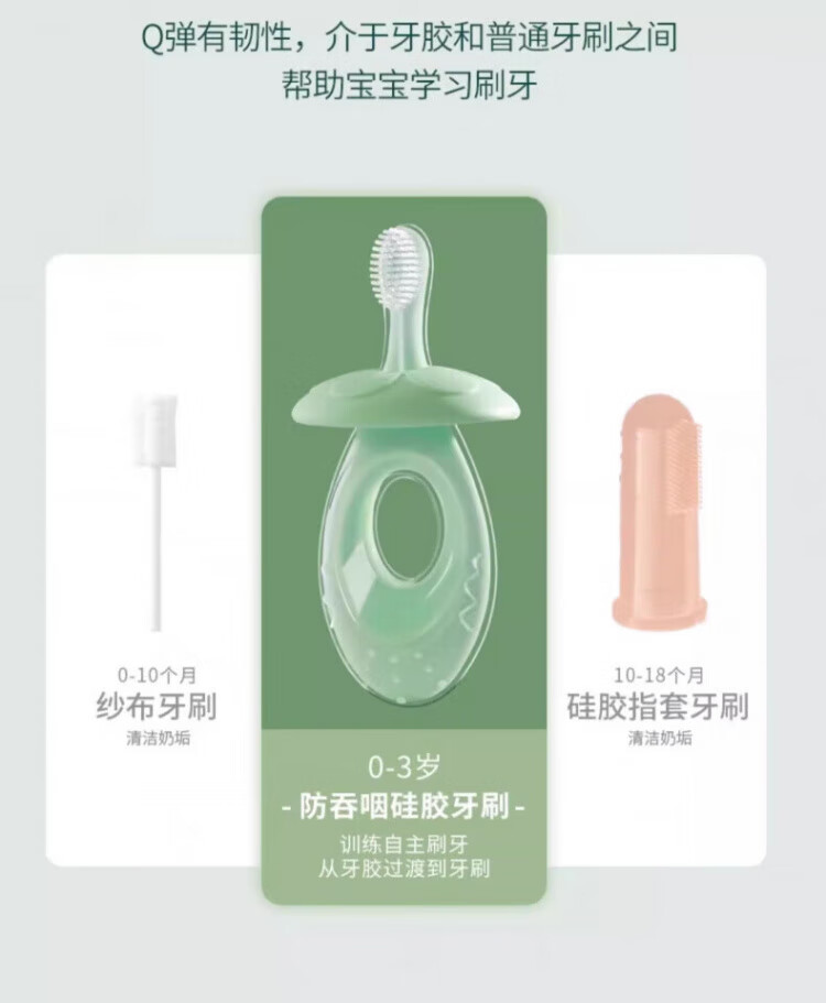 DEATKN德国儿童牙刷0到3岁宝宝牙刷1一2岁半婴幼儿硅胶训练软毛刷乳牙刷 【绿色】适用于0-3岁的宝宝(无须牙膏) 1支