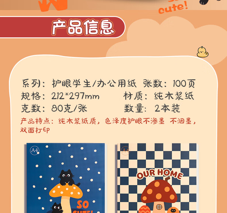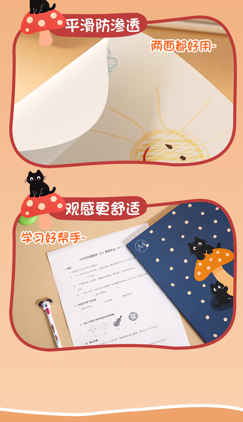 少年伴打印纸作业复印双面草稿纸400页学生文具小初中高开学80gA4加厚护眼草稿纸记错题验算深蓝+浅蓝2本