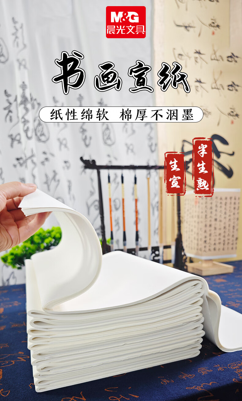 晨光(M&G)晨光半生半熟宣纸生宣国画专用美术生工笔画毛笔练字书法专用纸 四开无格【30张】(约52*36cm) 生宣【国画、山水泼墨画、书法】