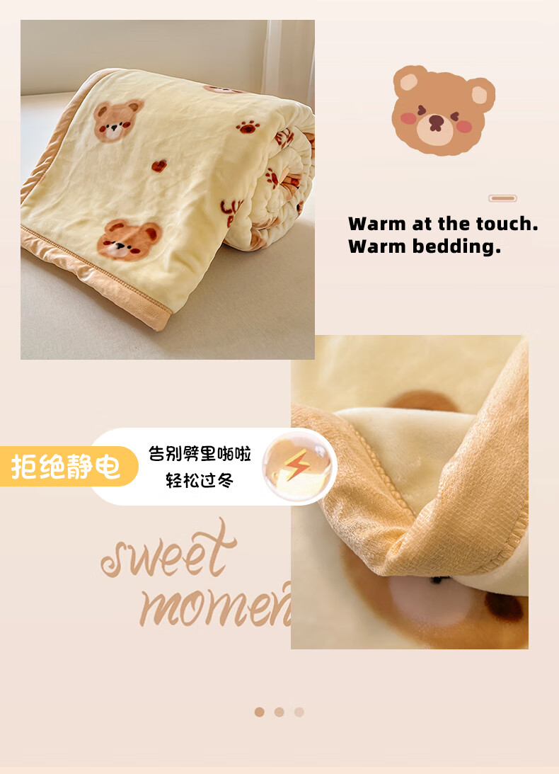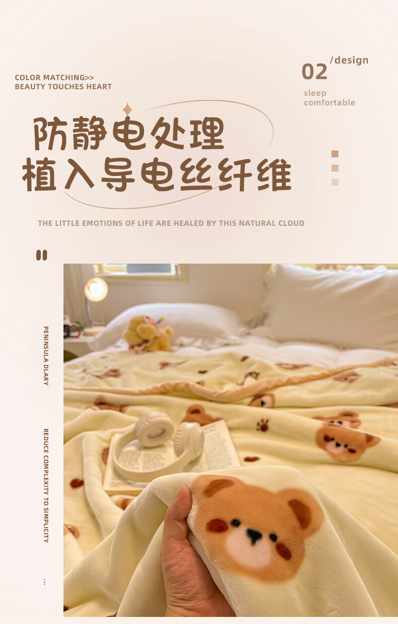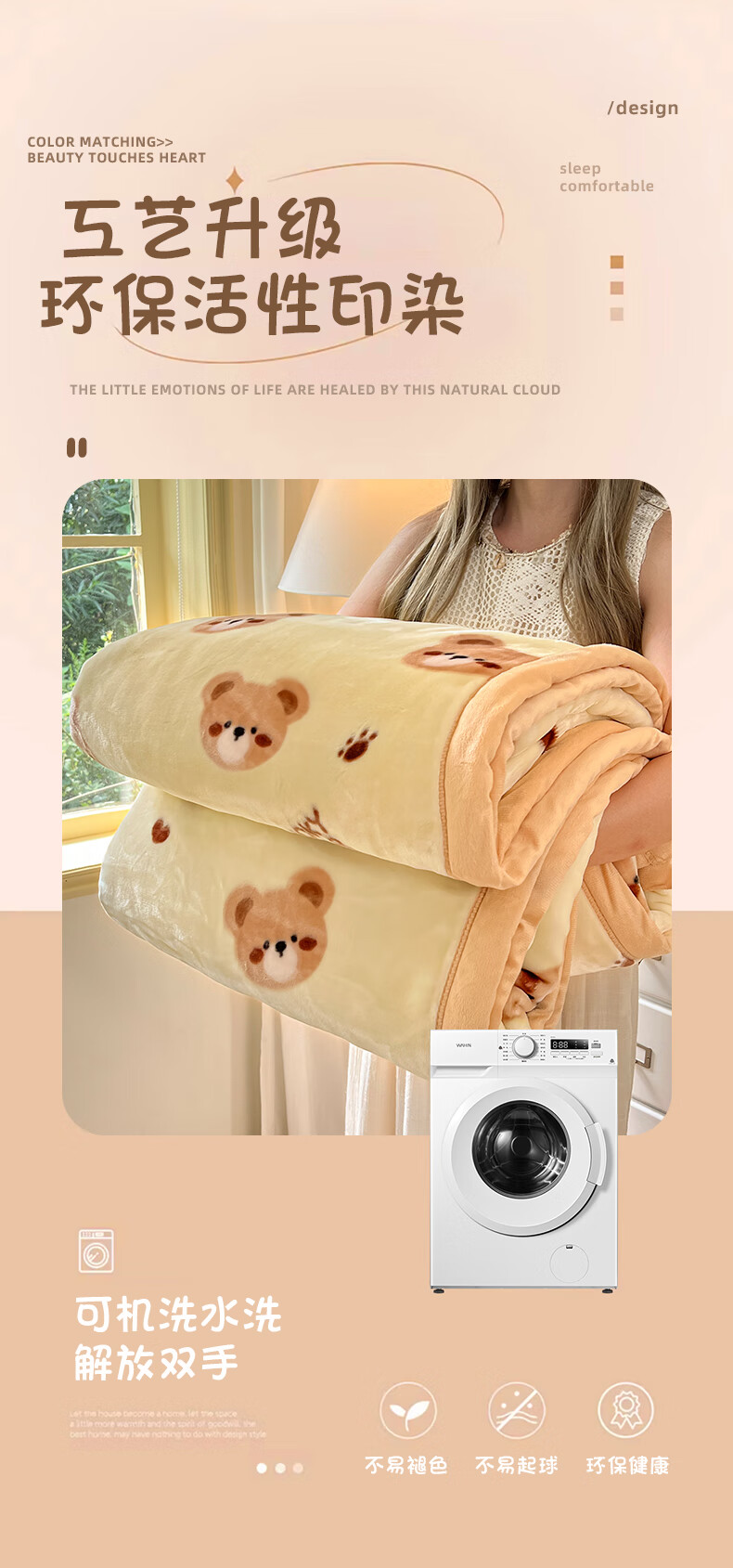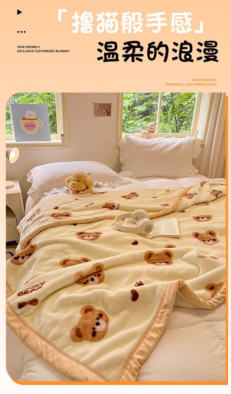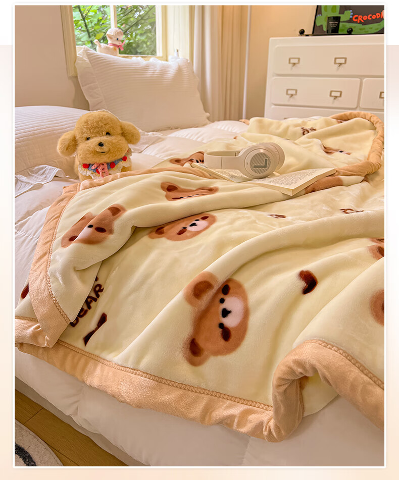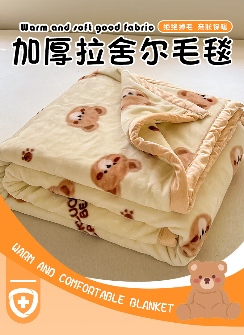苏萱加厚拉舍尔毛毯床上用小毯子办公室午睡毯冬季加绒珊瑚绒沙发盖毯 可爱小熊 儿童毯:100x150cm【约2斤】