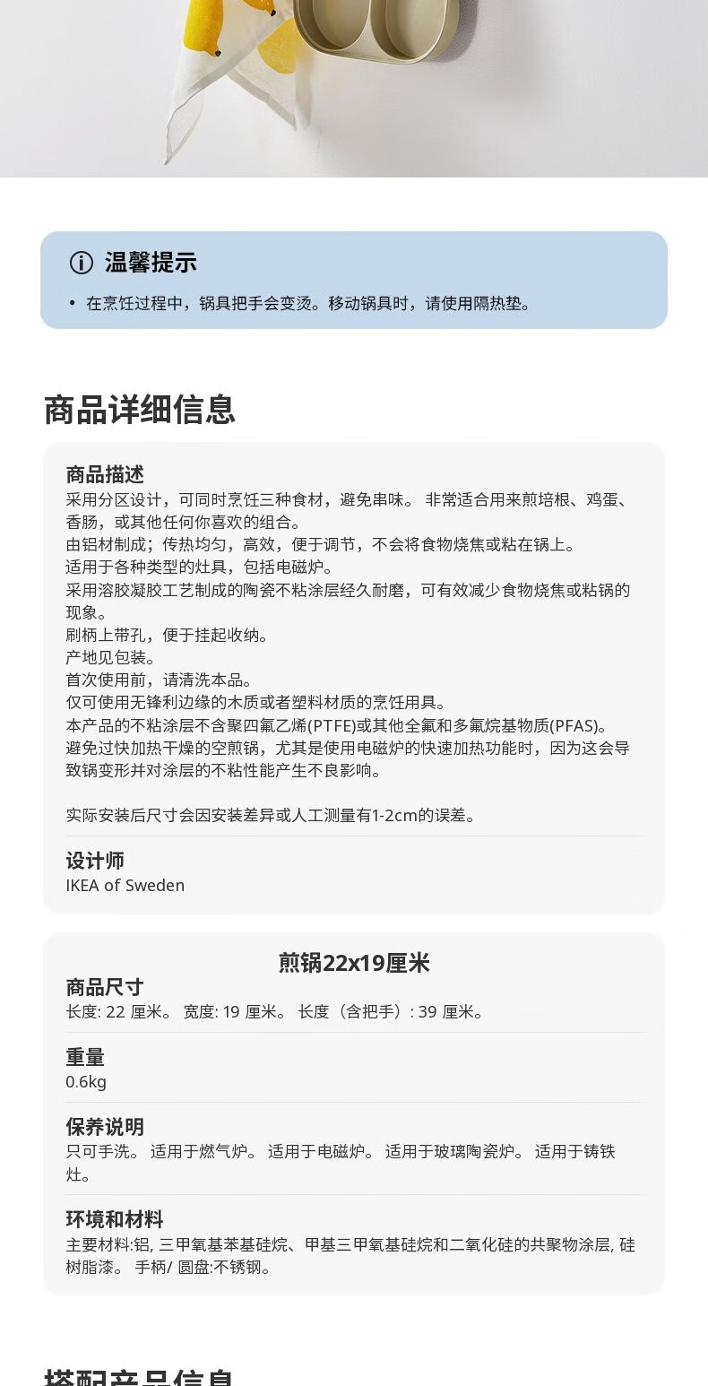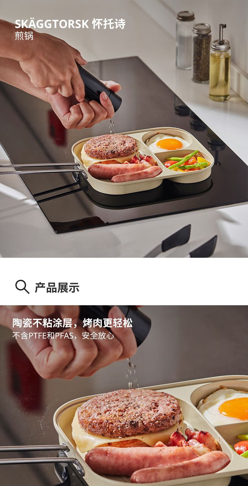 宜家(IKEA)【新品】SKAGGTORSK怀托诗煎锅平底煎锅不粘锅鸡蛋汉堡锅 浅米绿色煎锅22x19cm