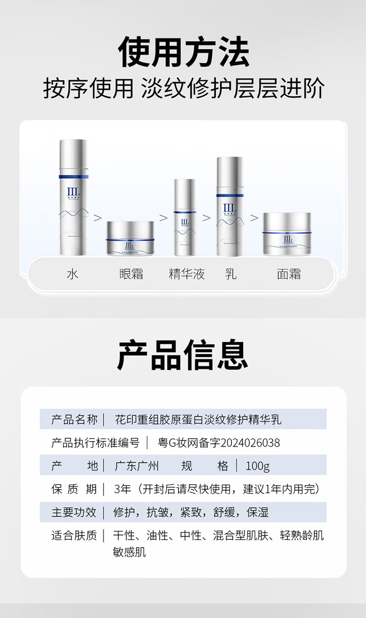花印屈臣氏重组胶原蛋白淡纹修护 精华水乳 精华液 精华霜 精华眼霜 精华水 150ml