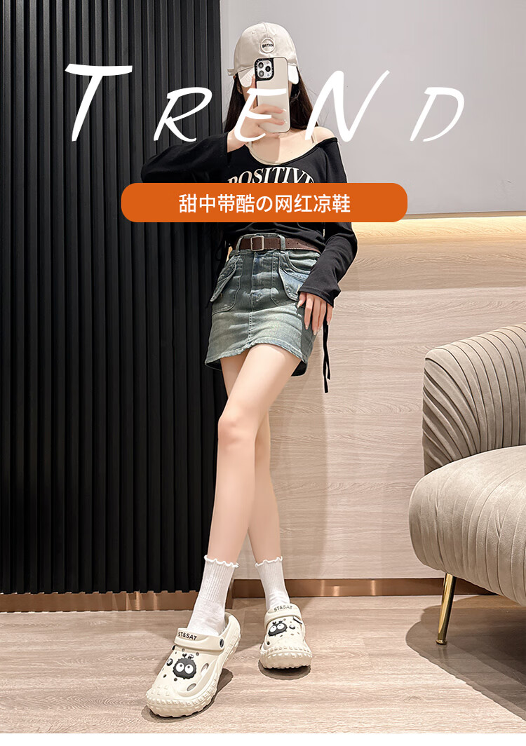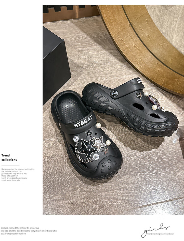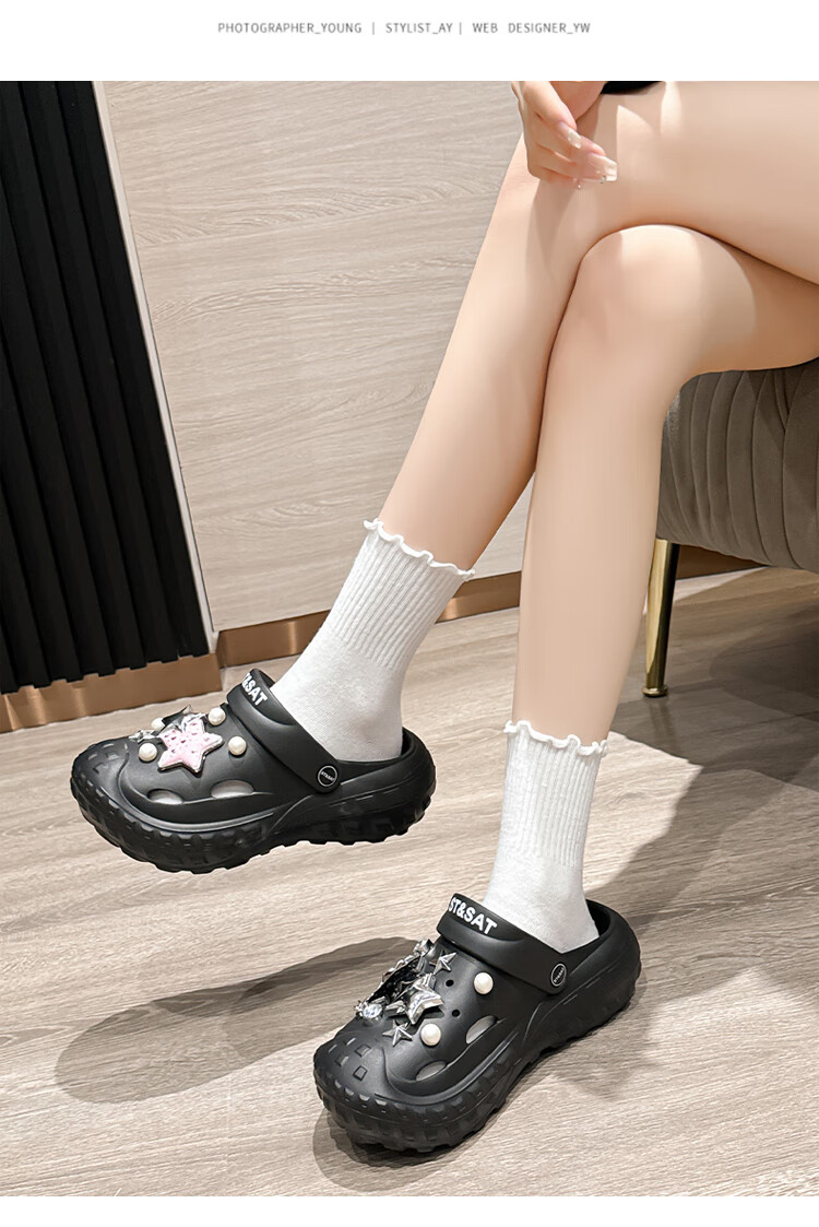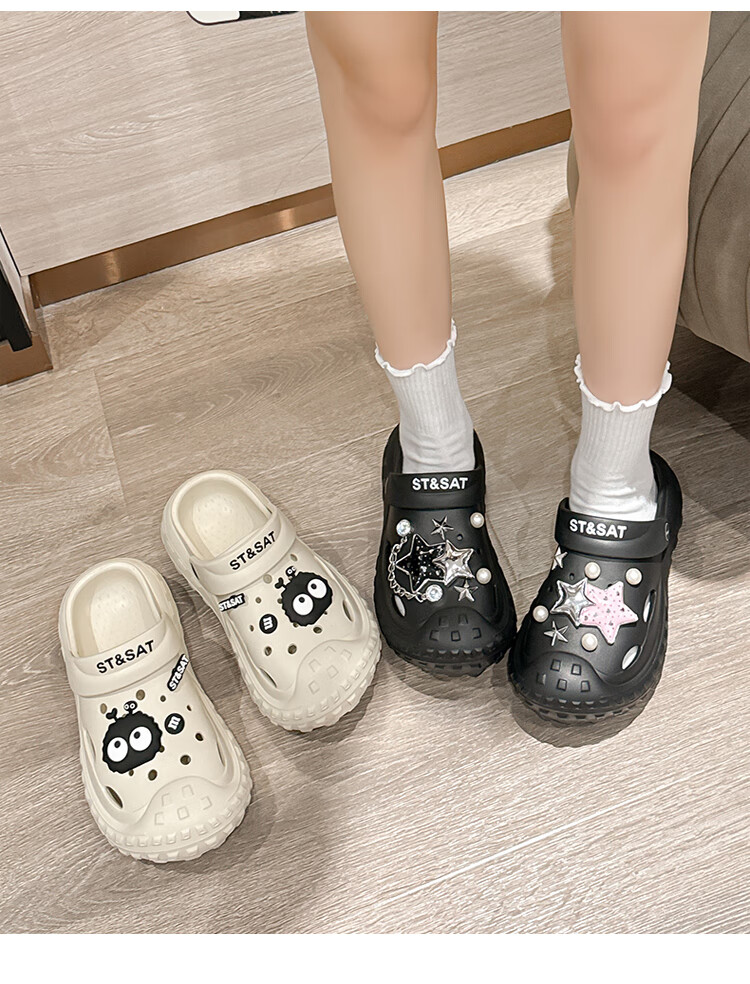 星期六(St&Sat)夏季多巴胺厚底洞洞鞋通勤百搭凉拖鞋潮流时尚女凉鞋WKSSC21100YR 黑色 38-39