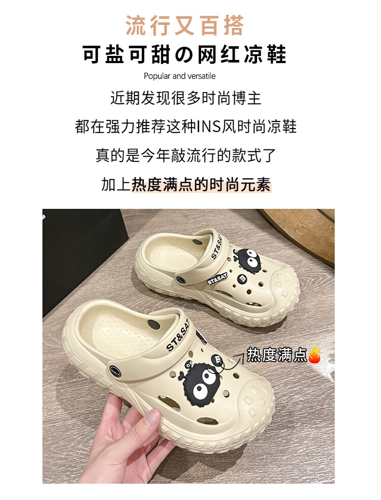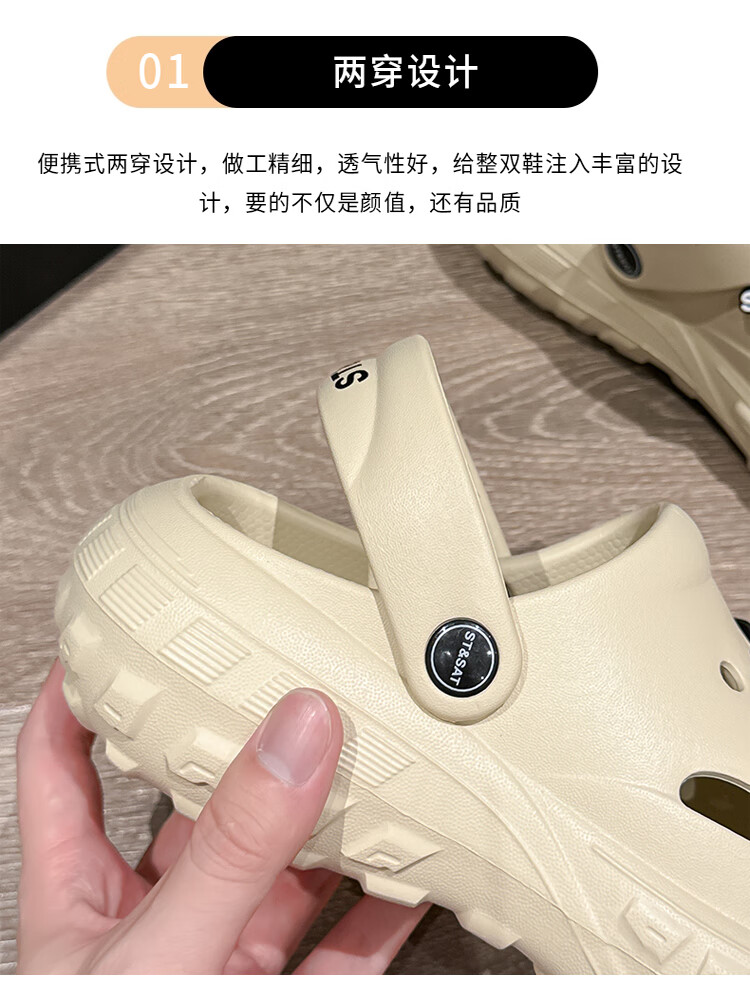 星期六(St&Sat)夏季休闲百搭洞洞鞋海边防水沙滩鞋通勤舒适女凉拖鞋WKSSC21101AD 咖啡色 39-40