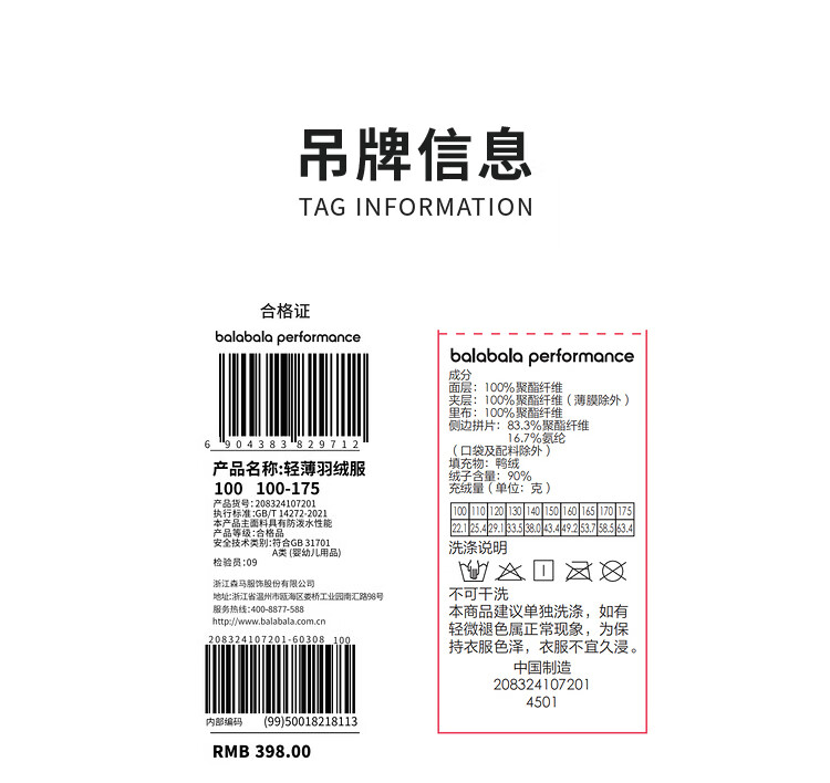 巴拉巴拉balaOne儿童羽绒服男童女童童装2025年冬季户外防护208425107233