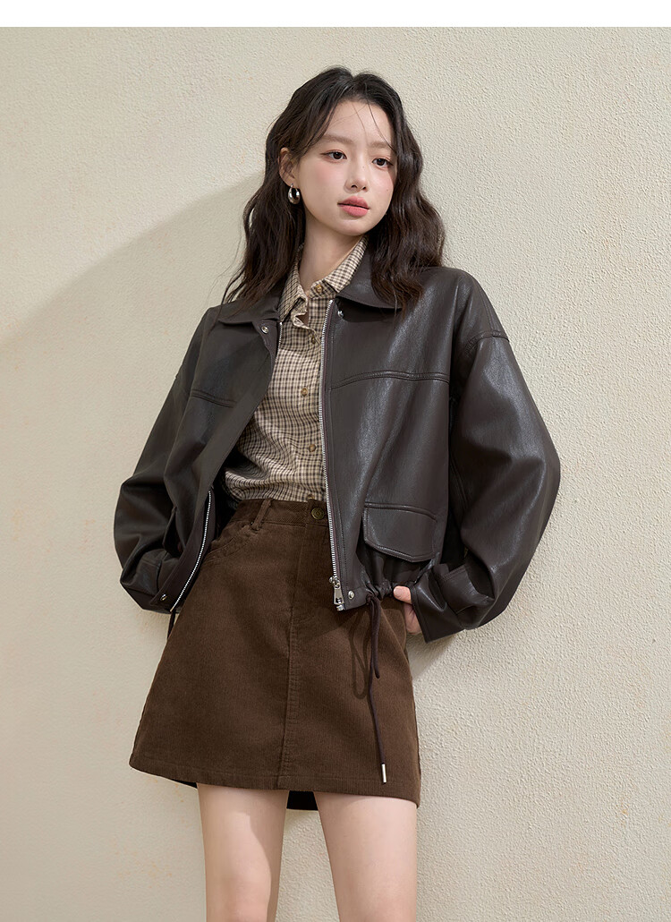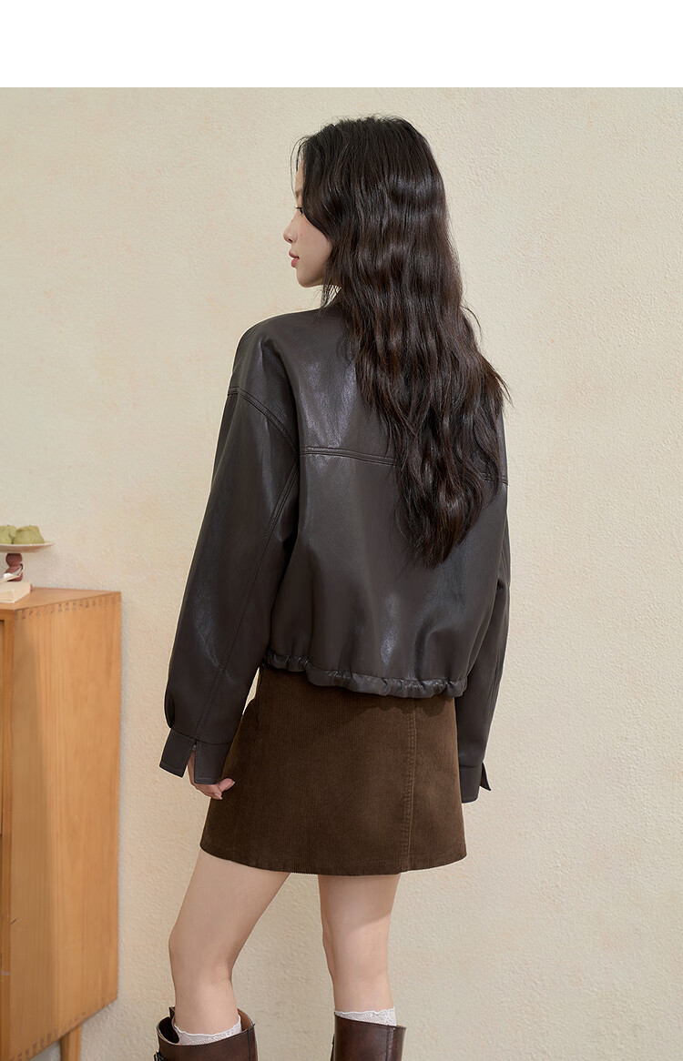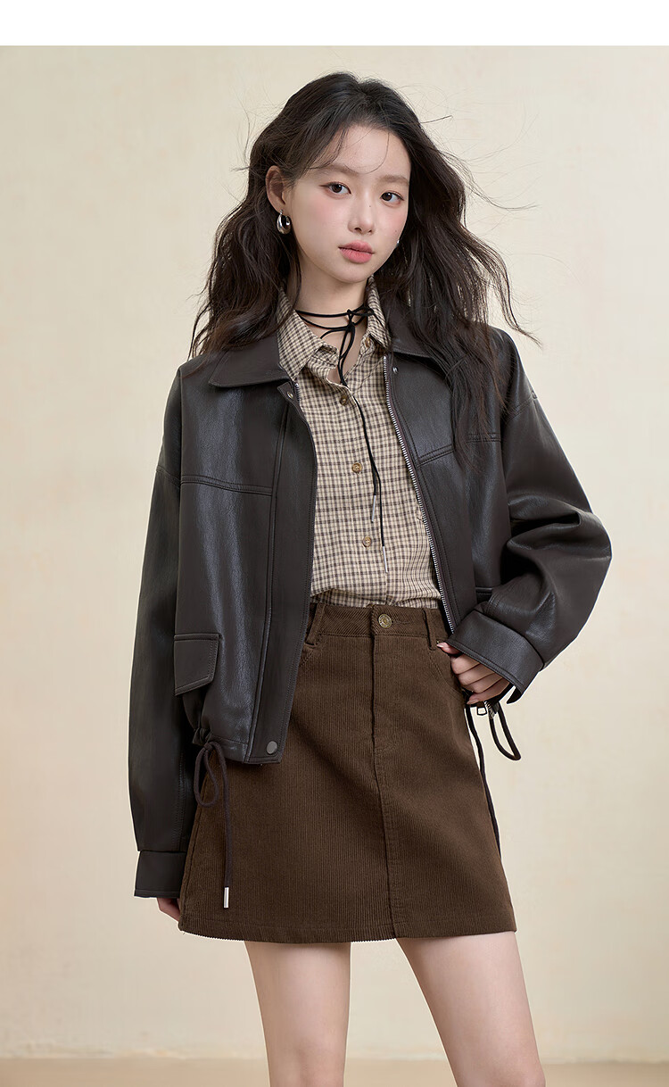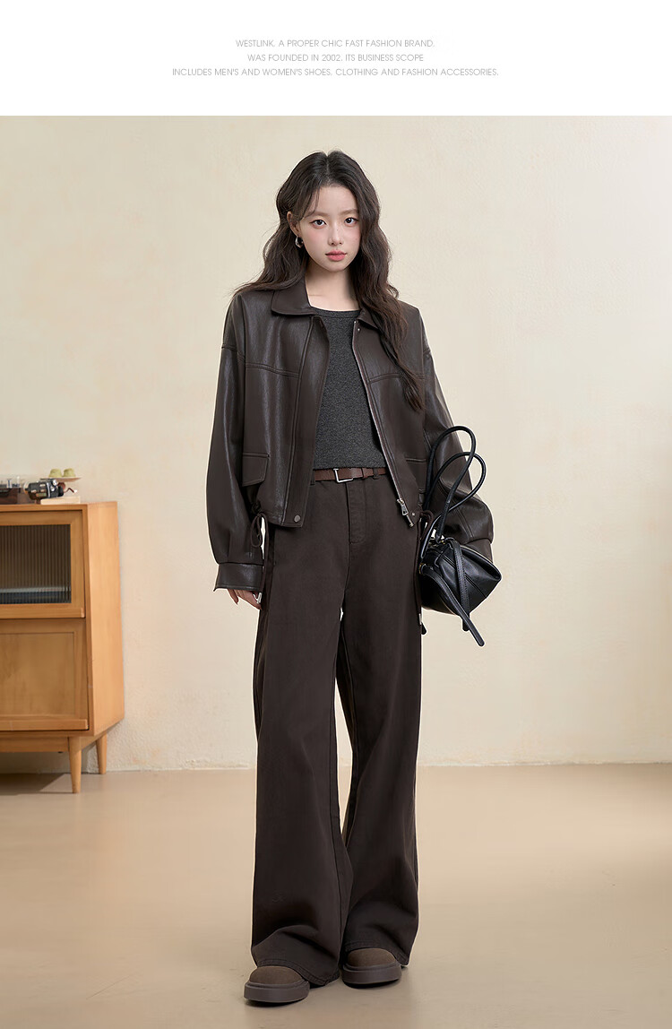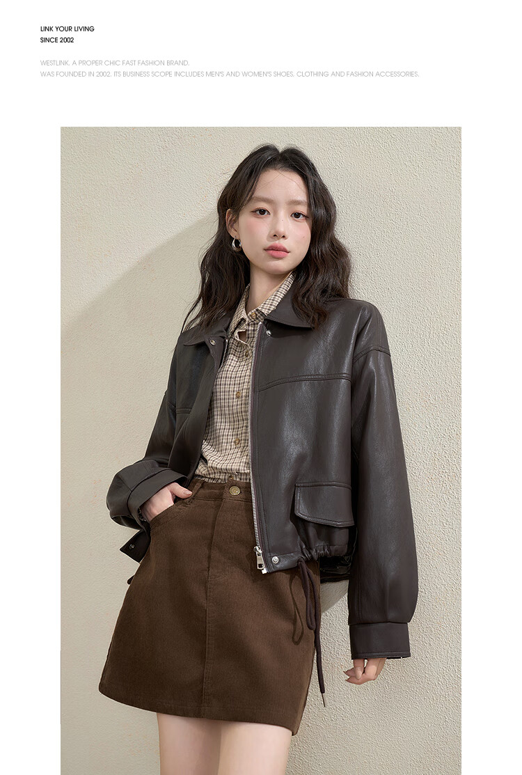 西遇(Westlink)翻领夹克外套女2025年秋季新款酷飒风宽松显瘦短款PU皮衣 咖色 (预售15天) M (160)