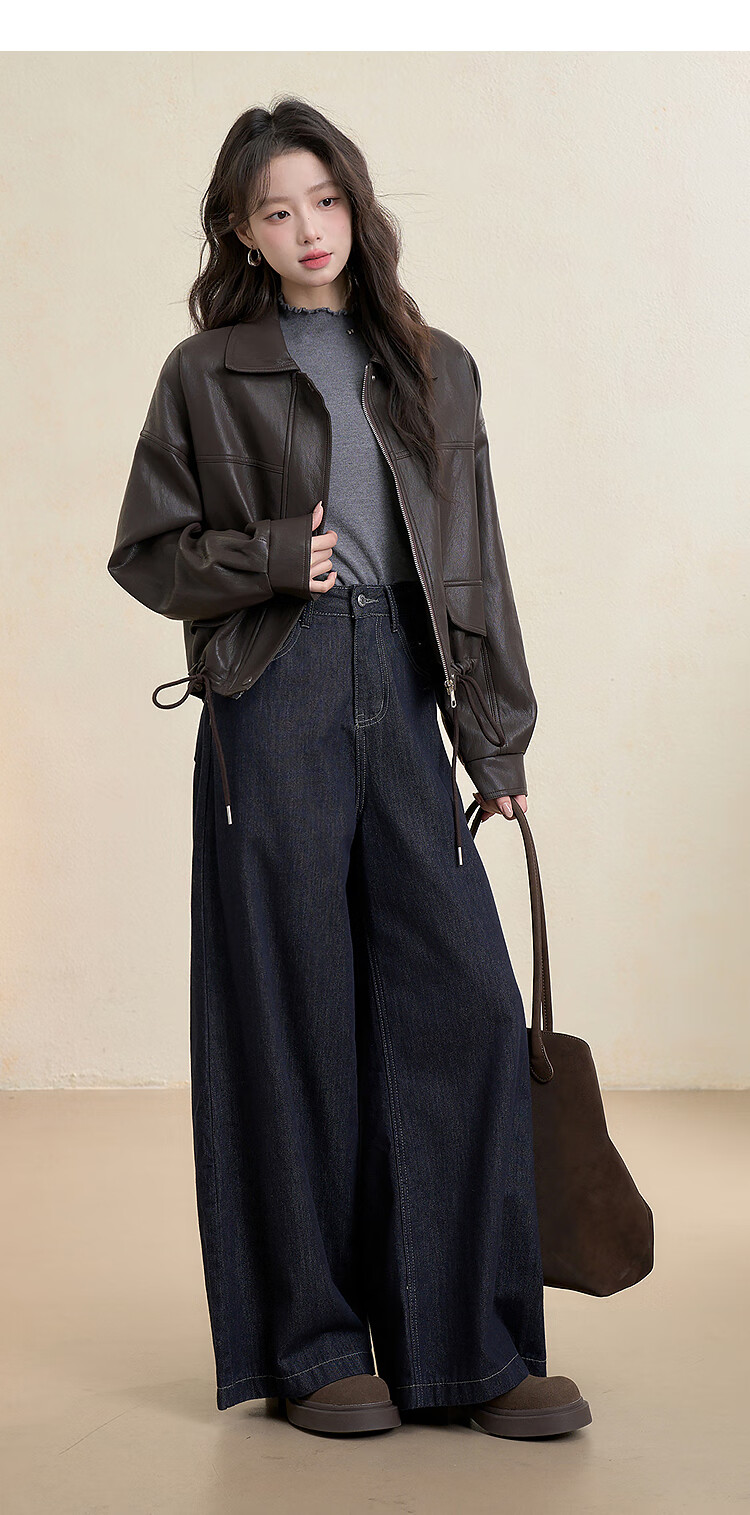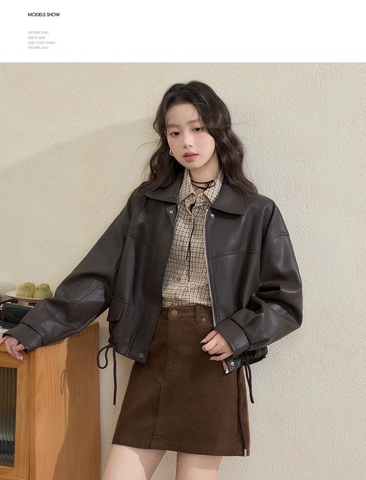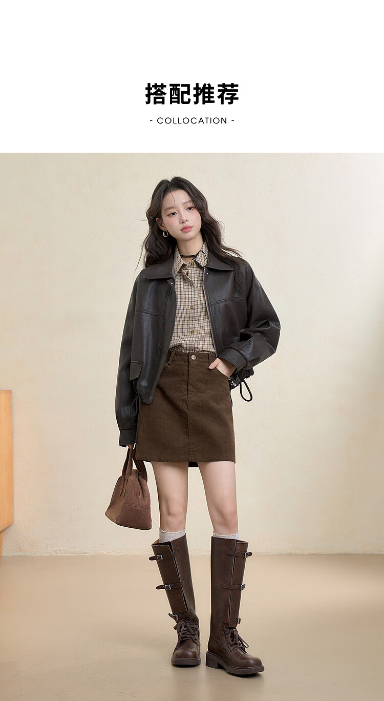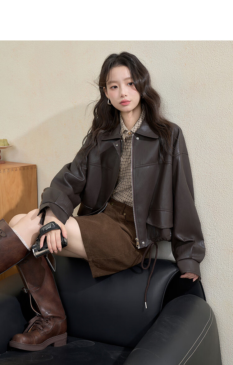 西遇(Westlink)翻领夹克外套女2025年秋季新款酷飒风宽松显瘦短款PU皮衣 咖色 (预售15天) M (160)